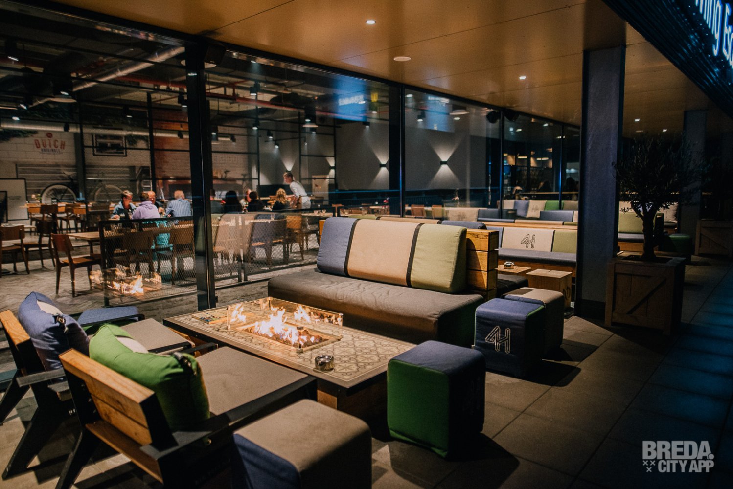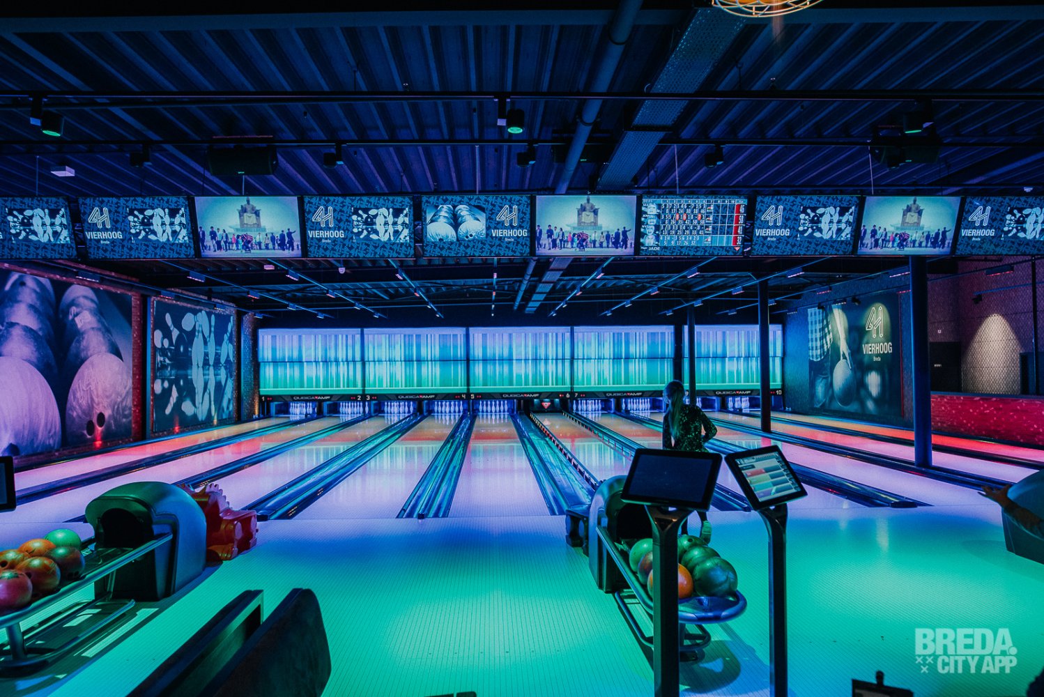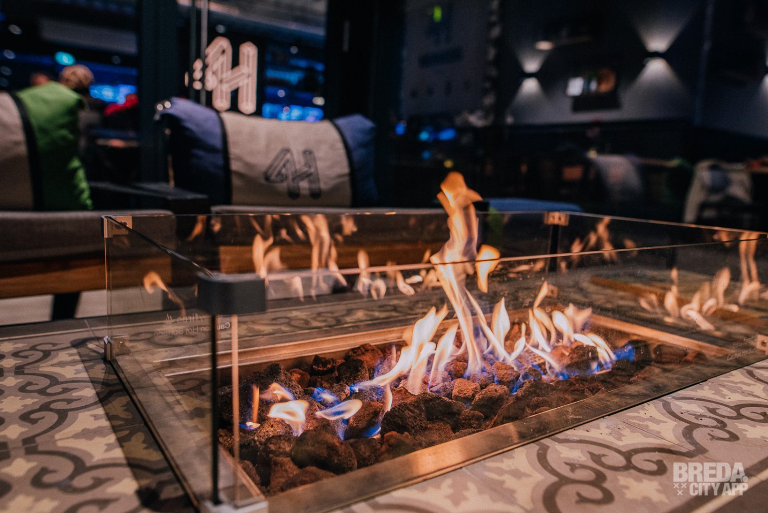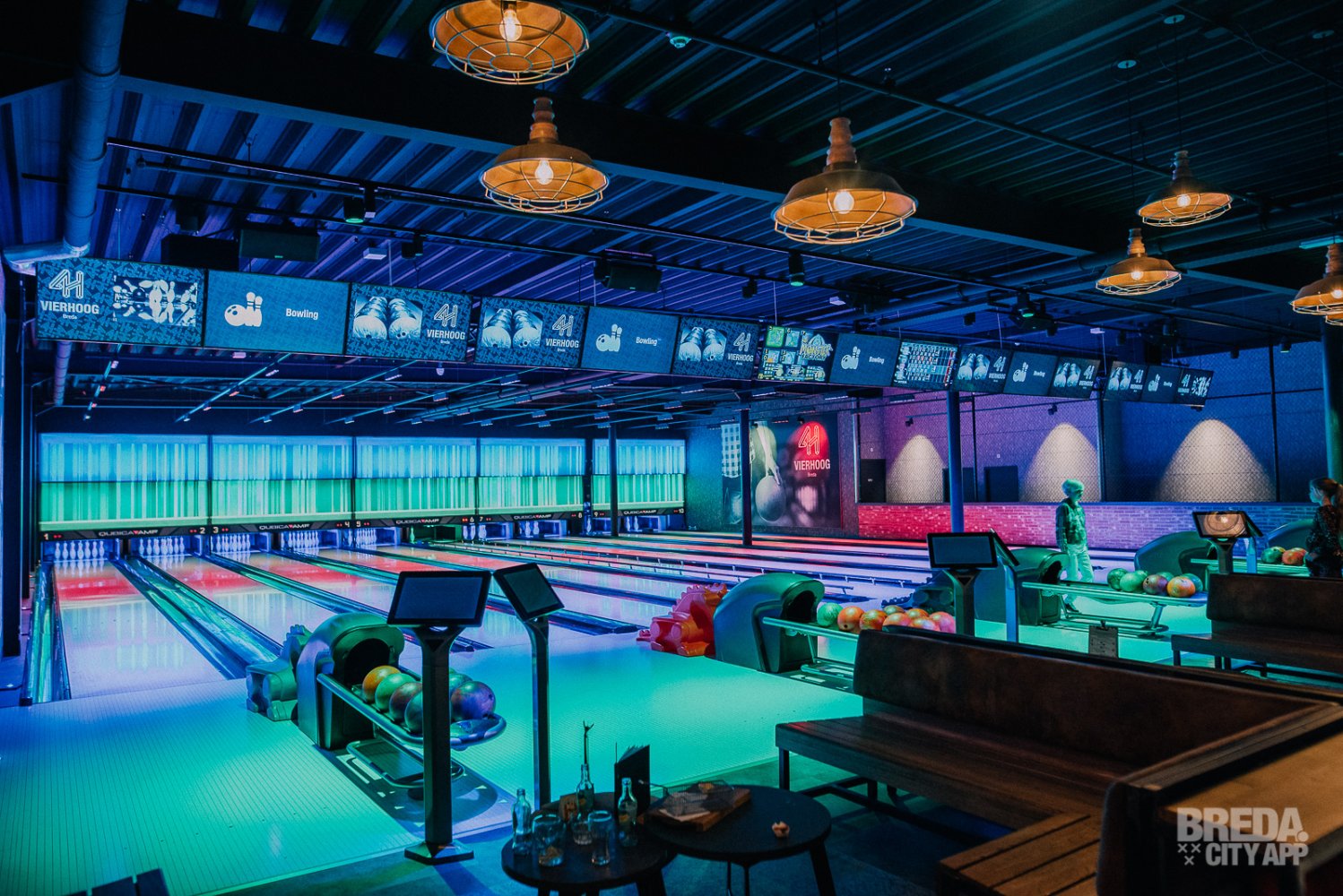 Nu onze buikjes gevuld zijn met al het lekkers dat Vier Hoog Breda te bieden heeft nemen wij nog snel een kijkje bij de bowlingbanen en buiten op het balkon waar de vuurhaarden staan te knapperen. Na nog een snelle sneak peek door een openstaande deur van de lasergameruimte, lopen wij met een voldaan gevoel naar de lift. Wij komen hier snel nog een keer terug!