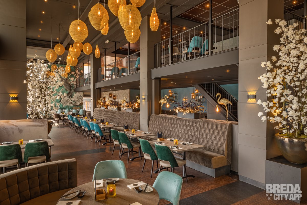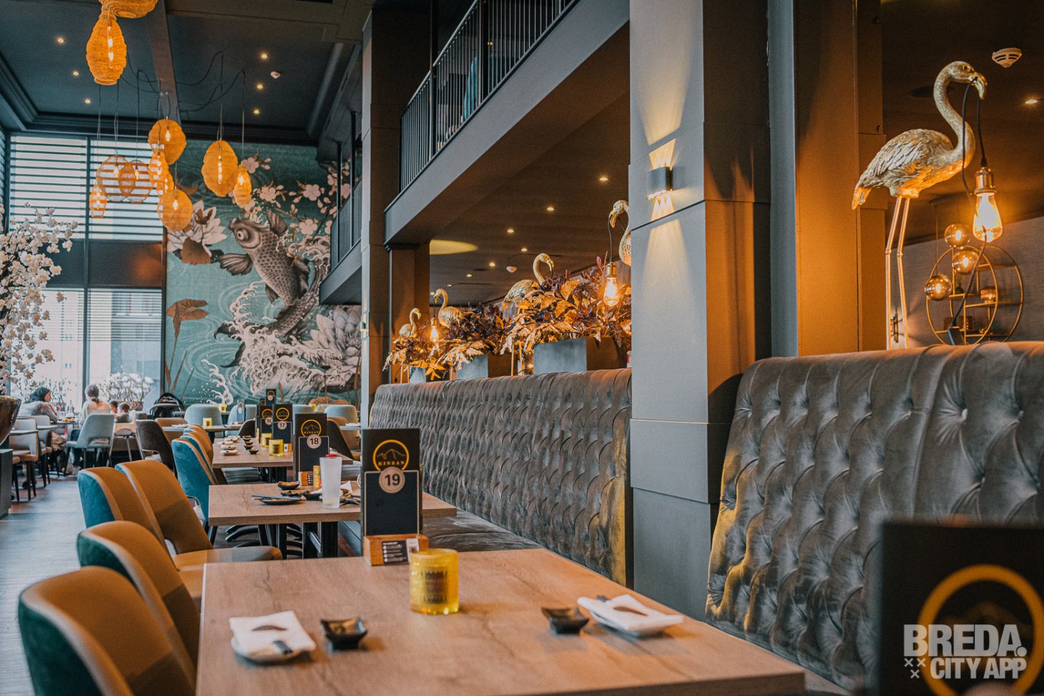 We lopen het Chasséveld op en wanneer we restaurant Kinzan naderen, naderen we ook steeds meer gezelligheid. Waar eerst Wereldrestaurant Chasséhof zat, zit nu een Fine Dining Aziatisch restaurant genaamd Kinzan. Als wij op weg naar de ingang naar binnen kijken bij het restaurant, zien we gelijk een sfeervol restaurant met gouden details en mooie kleuren in het enorm gave interieur.