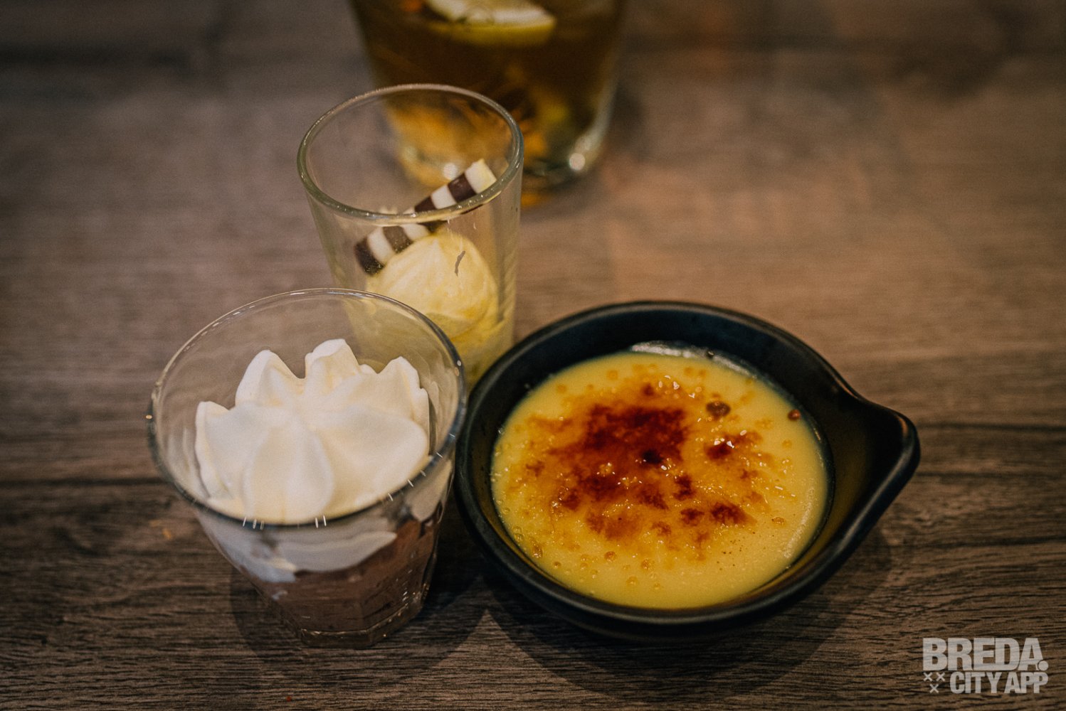 Nu we wat langer in het restaurant zitten, maken we de sfeer steeds beter mee. Het is, zoals we al dachten bij binnenkomst, een enorm sfeervol restaurant met een chique uitstraling en -wat we nogmaals even willen benoemen- een super mooi interieur. Als we bijna helemaal vol zitten van de super lekkere gerechtjes van Kinzan, zien we op de kaart staan dat ze ook desserts hebben.