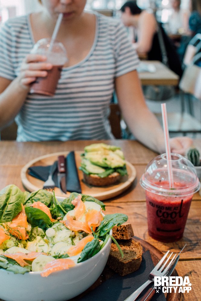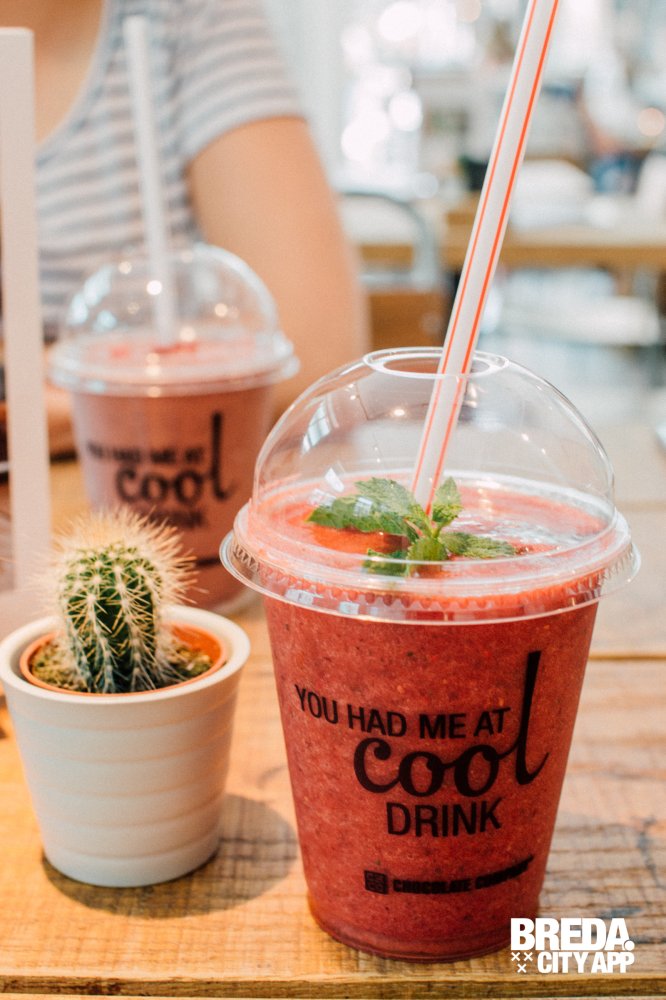 Smoothies! Die passen goed bij een lunch. Wij gaan voor de zomerse smoothie “Very Berry”, gemixt van rood fruit, appel, gember en munt. Heerlijk fris en zoet! Ook zijn wij benieuwd naar de “Chocolate Energy”. Een smoothie met een chocolade twist. Gemaakt van cacao, mango, aardbeien, kokosmelk én een spicy ingrediënt. Een verrassende combinatie en zeker het proberen waard!