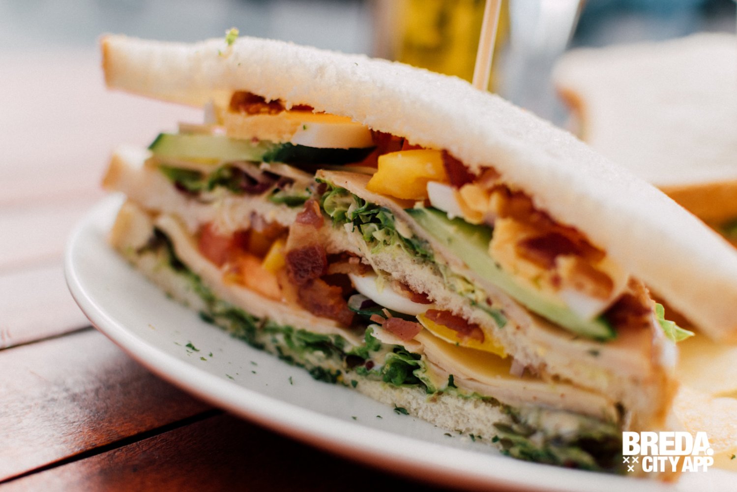 Hierna krijgen we clubsandwich, zeer royaal belegd met bacon, ei, kaas, kipfilet komkommer, sla, tomaat, paprika, een lekkere dressing en uiteraard mogen de crunchy naturelchips niet ontbreken.