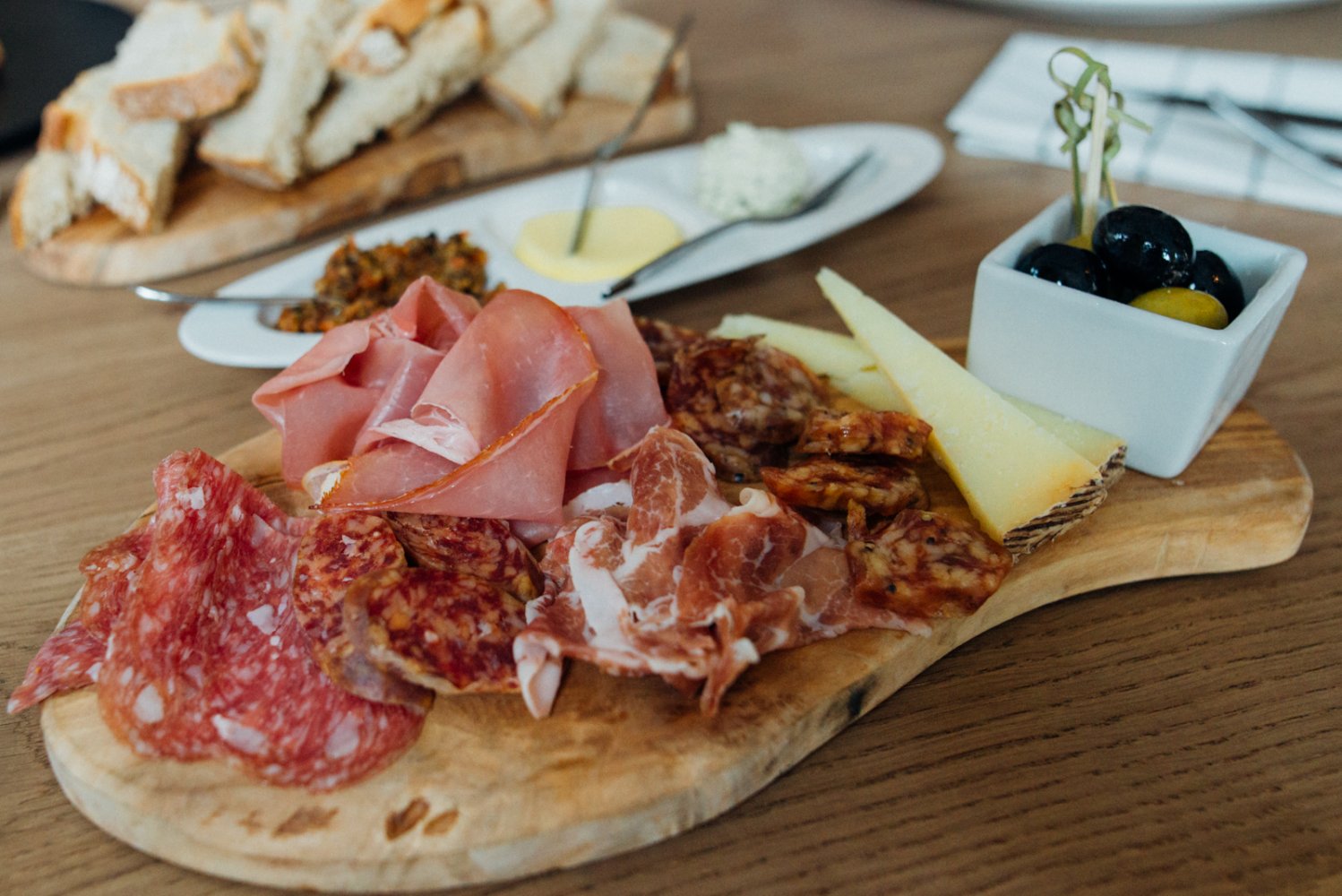 Bij een lunch bij Vincents mag het Vincents plateau natuurlijk niet ontbreken! Deze prachtige plank is gevuld met eigen gedroogde hammen en worsten uit de dry age kast. Iedere keer dat je deze overheerlijke plank besteld veranderen de worsten dus het is een verrassing wat er nou daadwerkelijk op je plank komt te liggen. Wij kregen peperworst, truffelworst, venkelworst, coburger ham, coppa di parma en spinata romana. Naast deze heerlijke worsten en hammen krijg je ook olijven en brood met tapanade geserveerd. Heerlijk voor bij de borrel, maar ook zeker geschikt als volledig lunchgerecht.