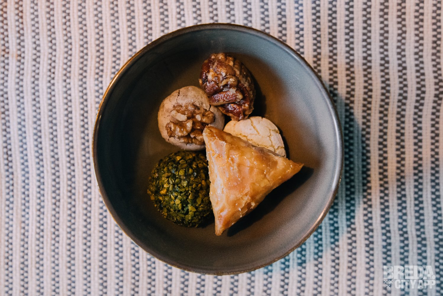 We sluiten af met de Marokkaanse koekjes. Elk koekje is gemaakt met amandelmeel en dat proef je natuurlijk. De koekjes smaken ook allemaal vers en zijn super lekker! De koekjes zijn gemaakt met verschillende noten. Zo proeven we een koekje met amandel, één met walnoot, één met pecannoten en één met pistache. Ieder een eigen unieke smaak en een goede afsluiter wat ons betreft.