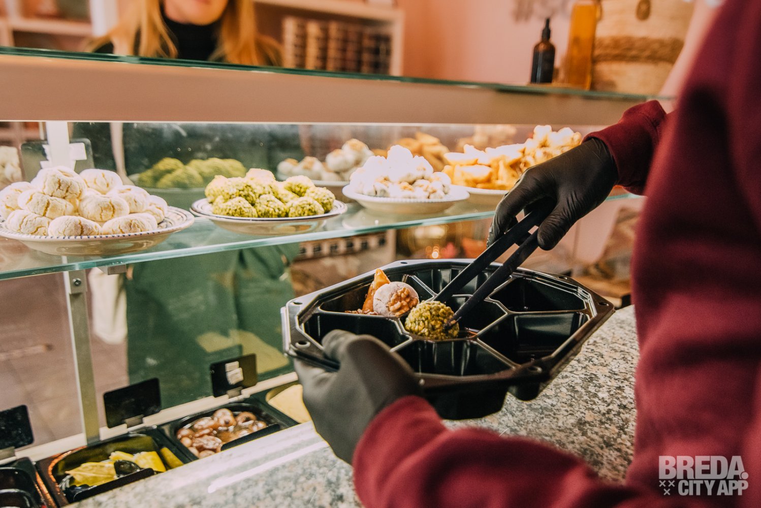 Ons oog valt al snel op de prachtig gevulde toonbank. Aioli met saffraan, olijven in alle smaken en kleuren, gevulde peppadews, verschillende soorten humus, sardientjes, tapenades en ga zo maar door. Naast de hartige Marokkaanse lekkernijen verkopen ze ook heerlijke Marokkaanse koekjes, allemaal gemaakt van amandelmeel. Met een goed gevulde borrelschaal én Marokkaanse koekjes wandelen we naar huis. Wij zijn zeer benieuwd en kunnen dan ook niet wachten om al dit lekkers thuis te proeven!