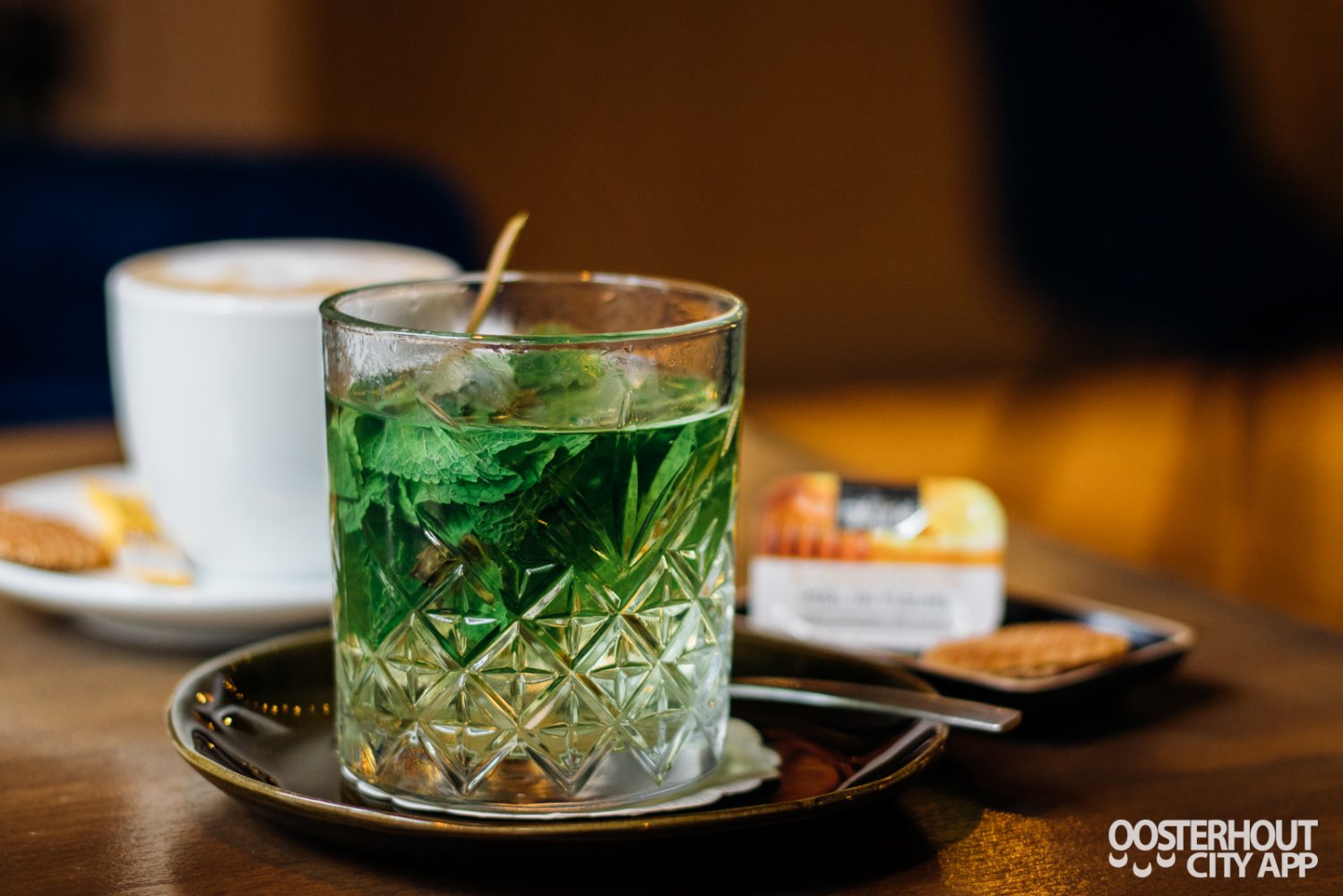 Tom, de eigenaar is net bezig om de haard op te stoken. De aangename warmte komt je gelijk tegemoet en zorgt voor een prettig ontvangst.   De gezellige kerstmuziek draagt daar natuurlijk ook aan bij. De altijd vriendelijke Sandra, partner van Tom, ontvangt ons hartelijk en wijst ons de tafel aan het raam met uitzicht op het Binnenhofje. Een leuk weerzien en fijn om bij te kletsen. We krijgen alvast een voorproefje van de nieuwe kaart. Voordat we daar mee starten krijgen we een verse munt thee en cappuccino om verder op te warmen.