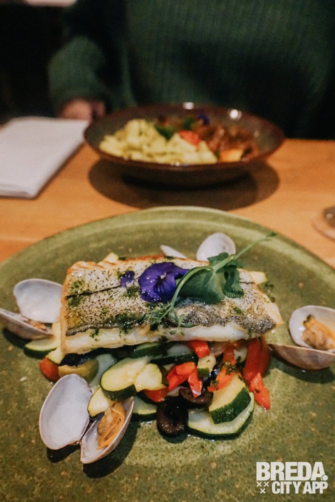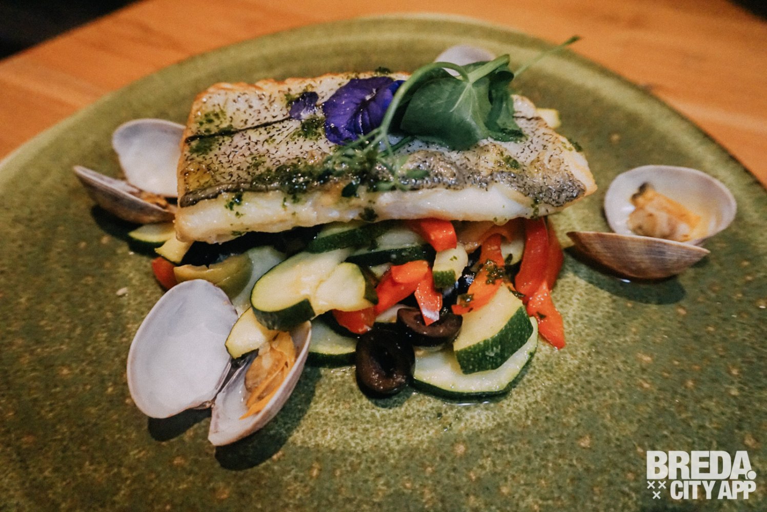 Het andere hoofdgerecht is een mooie Schelvis met vongole. De perfect gegaarde vis wordt geserveerd met knapperige courgette, paprika en olijven. Hierbij wordt een bijpassende chardonnay geserveerd die de smaken van dit gerecht ten goede versterkt.
