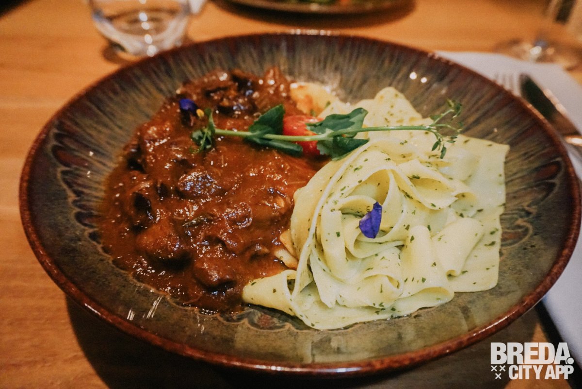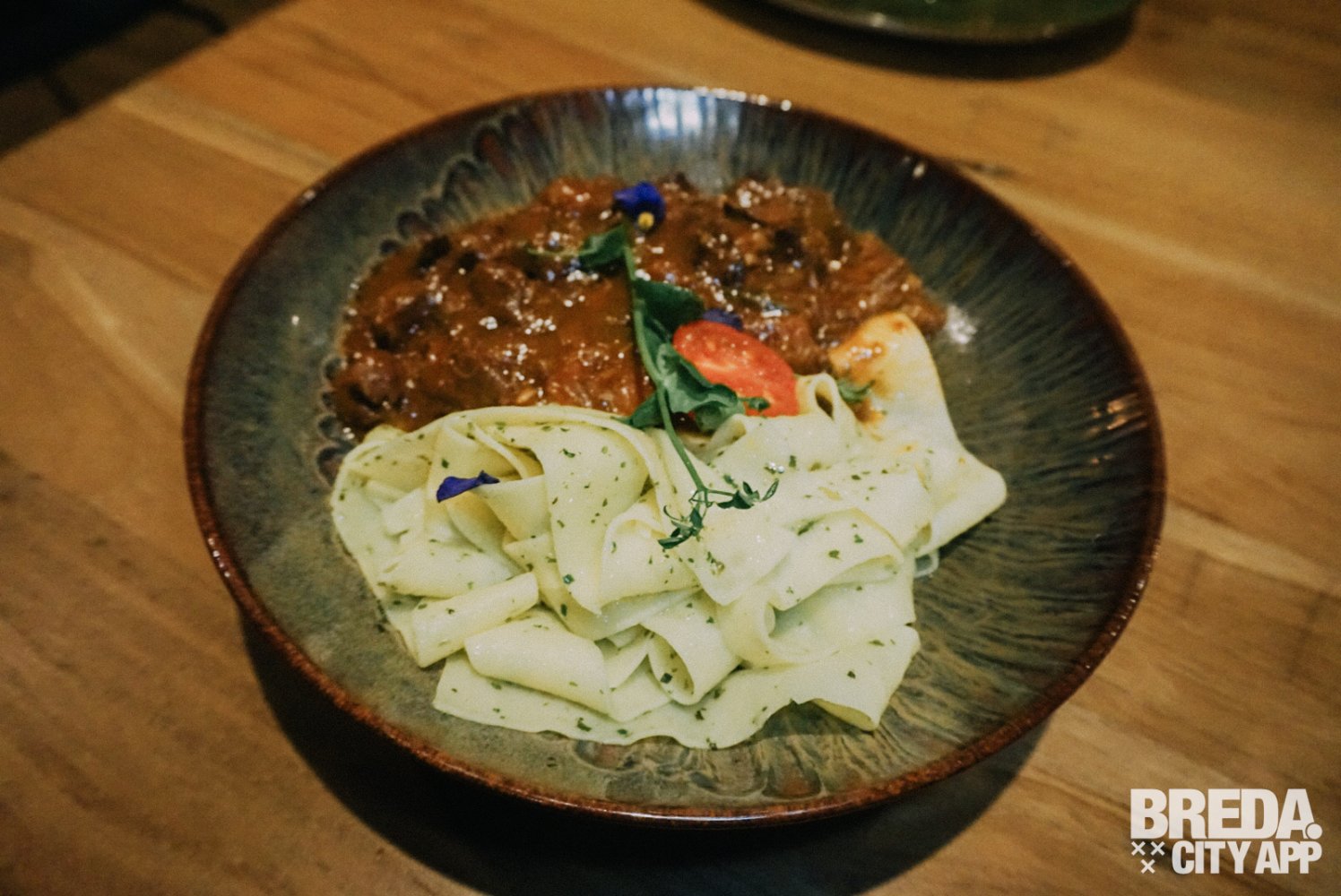 De culinaire ontdekkingsreis vervolgt met de magische Pappardelle met Toscaanse runderstoof op aanraden van onze gastvrouw Myrthe. In dit hoofdgerecht ontmoet huisgemaakte, brede lintpasta een rijke en kruidige runderstoof vergezeld door grove groenten, tomaten en de geur van rozemarijn. Een betoverend gerecht dat niet alleen de honger stilt, maar ook de zintuigen streelt met zijn harmonie van smaken en aroma's!
