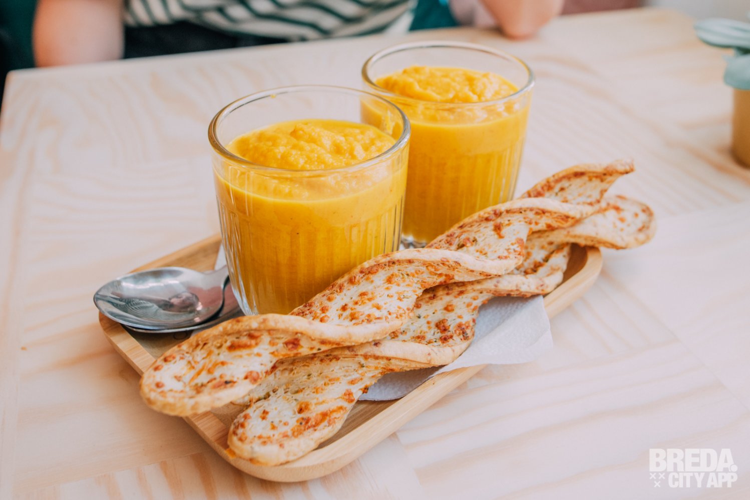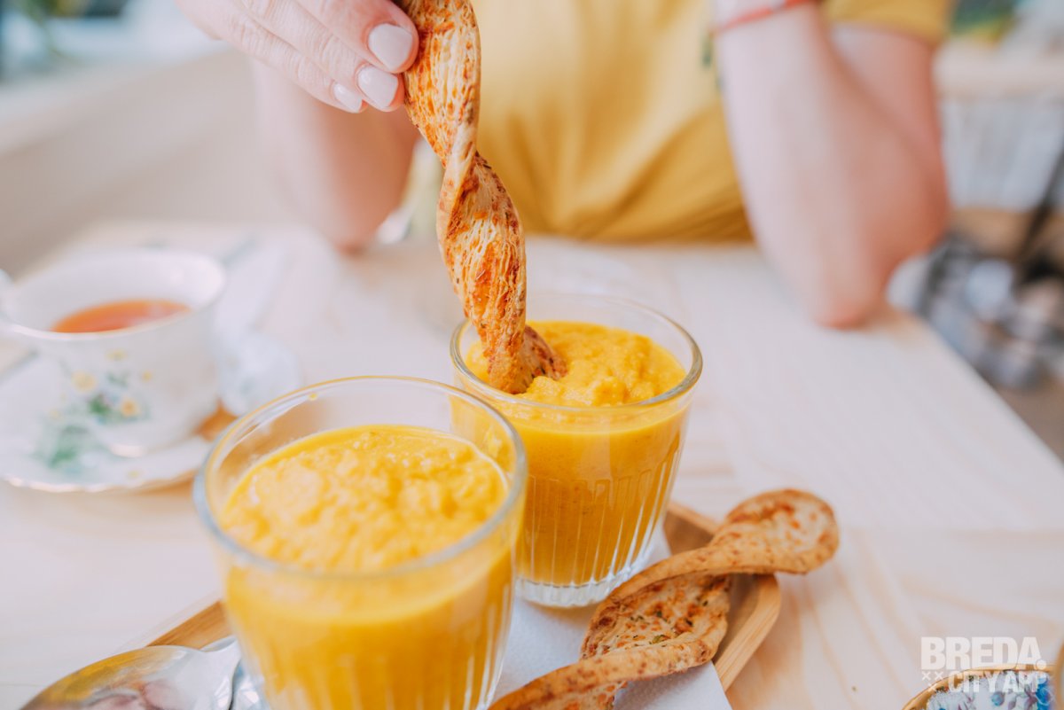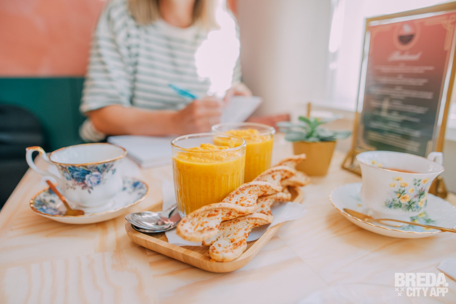 De eerste ronde van de high tea is hartig. In samenwerking met Soepbar Piek in de Boschstraat krijgen wij een heerlijke verse soep van het seizoen, een kruidige mix van wortel, gember en een vleugje kokos. Perfecte combi met de beste kaasstengel ooit, nog warm uit de oven. En leuke weetjes: Nettur serveert soep van Piek en Piek verkoopt quiches van Nettur. De soepen worden mede gemaakt door dames met een afstand tot de arbeidsmarkt, hoe tof!