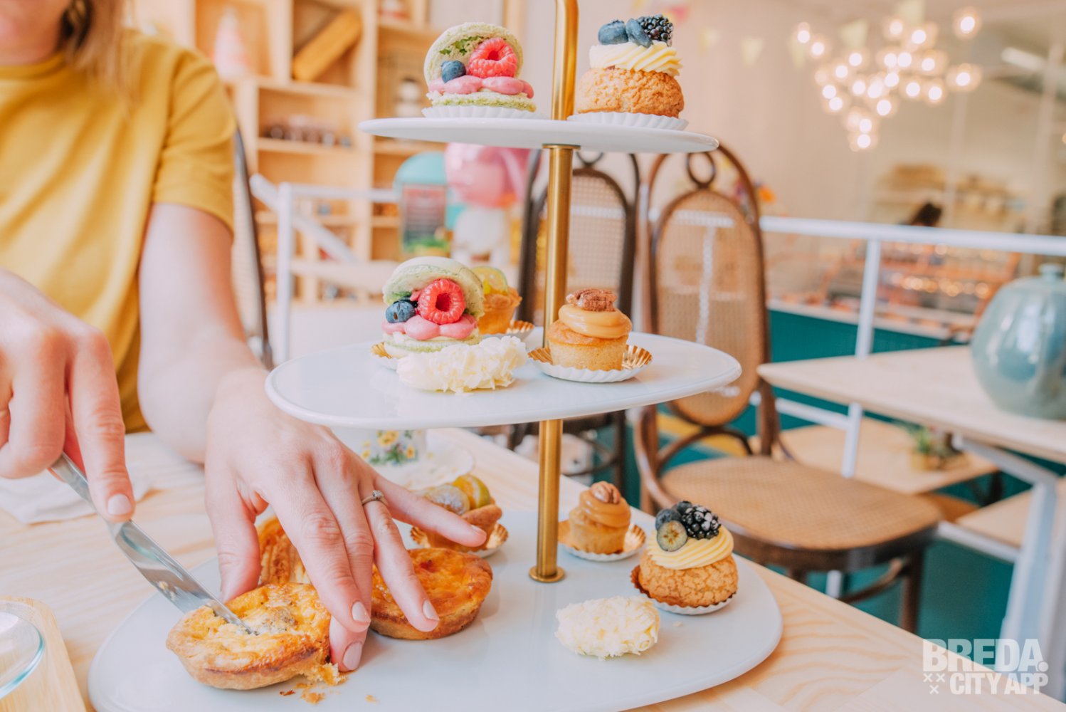 Er wordt naast de zoete, ook aan de hartige trek gedacht door middel van kaasvlinders en twee mini quiches. Eén met chorizo en paprika en de ander met vier kazen. Om dit geheel af te maken krijgen we nog een kaasbroodje en, het blijft Brabant, een worstenbroodje geserveerd.