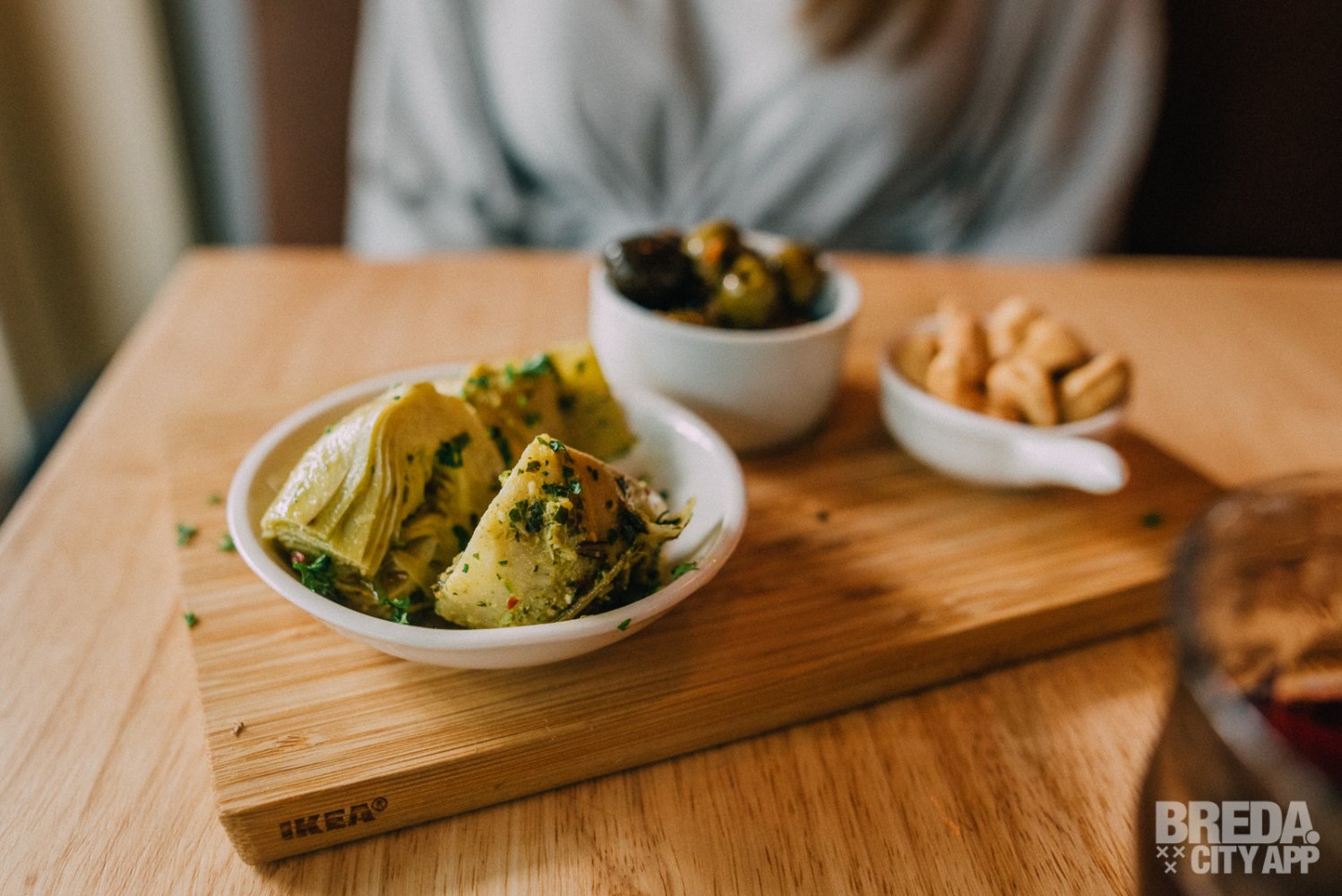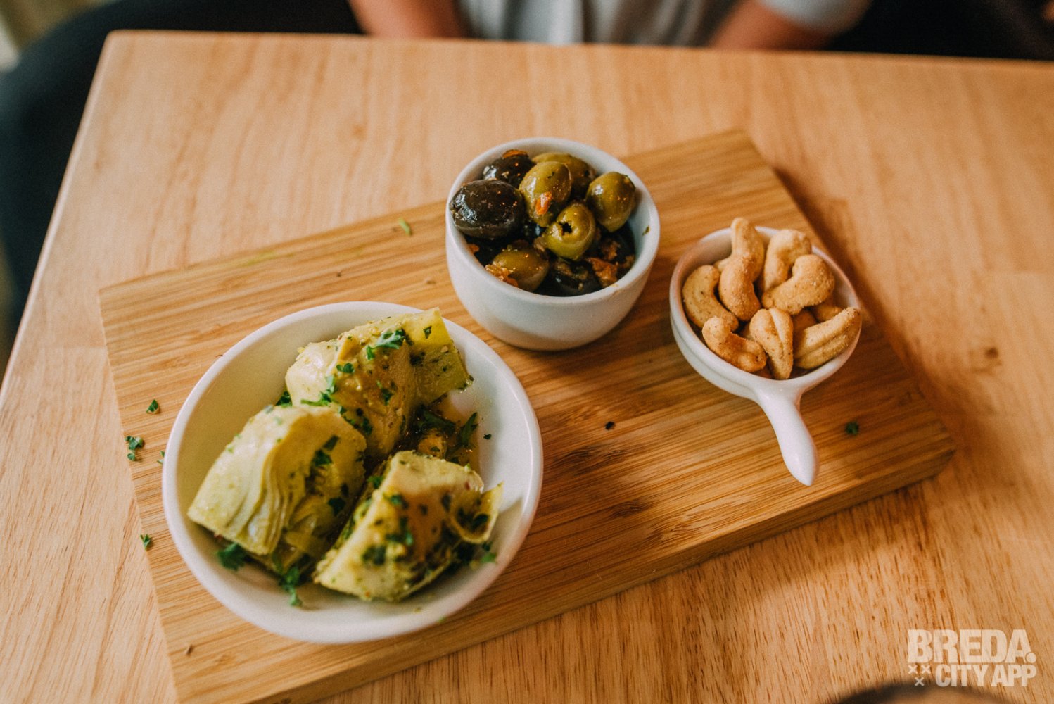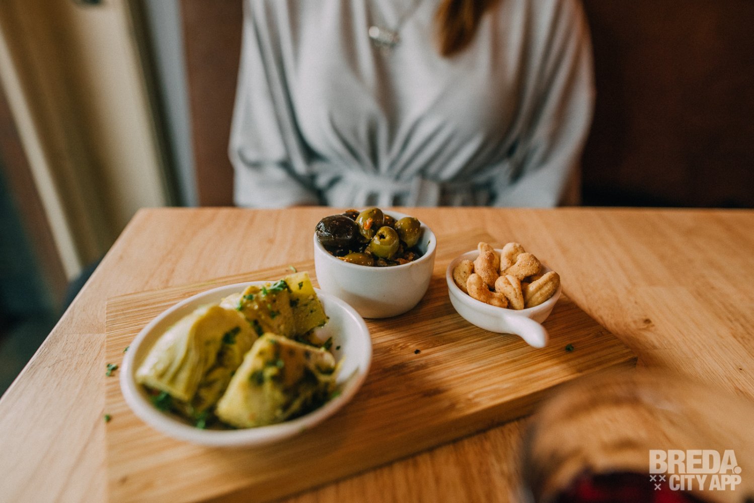Als eerste bestellen we een drankje en wordt ons vertelt hoe de avond zal gaan verlopen. We krijgen in totaal vier gangen met daarin verschillende gerechten van de nieuwe kaart van Plan B. De eerste drie gangen zijn de tapas en de vierde gang is het dessert.