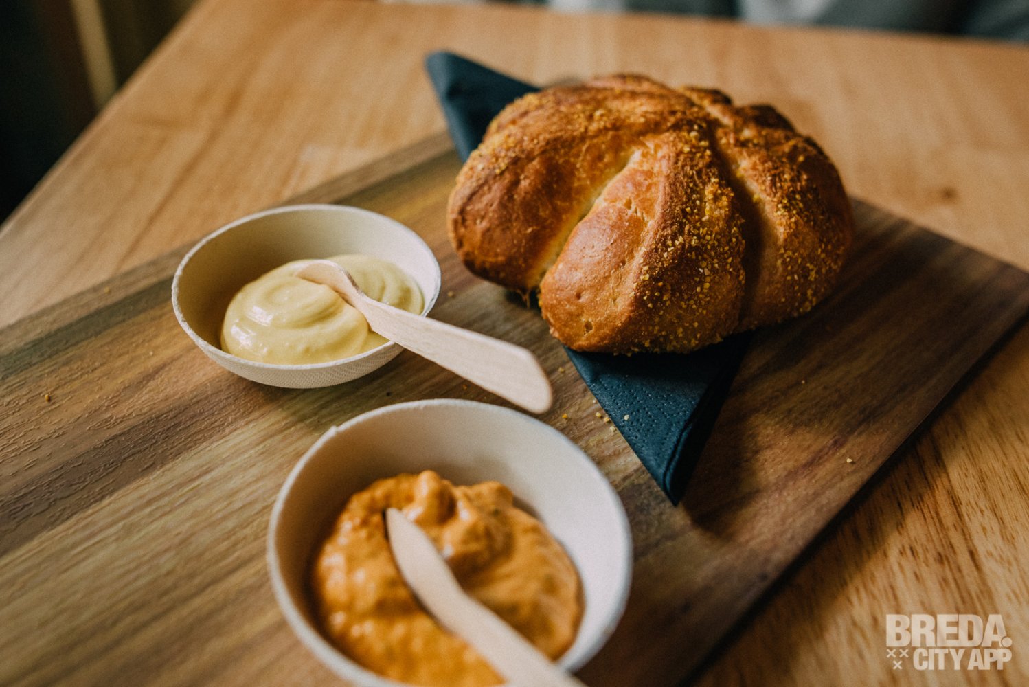 Al snel gaan we van start met de eerste gang. We krijgen Herman's Plan B. Dit is plukbrood met citroen-zeezout. Het brood wordt geserveerd met twee dipjes, namelijk aioli en paprika-roomdip.