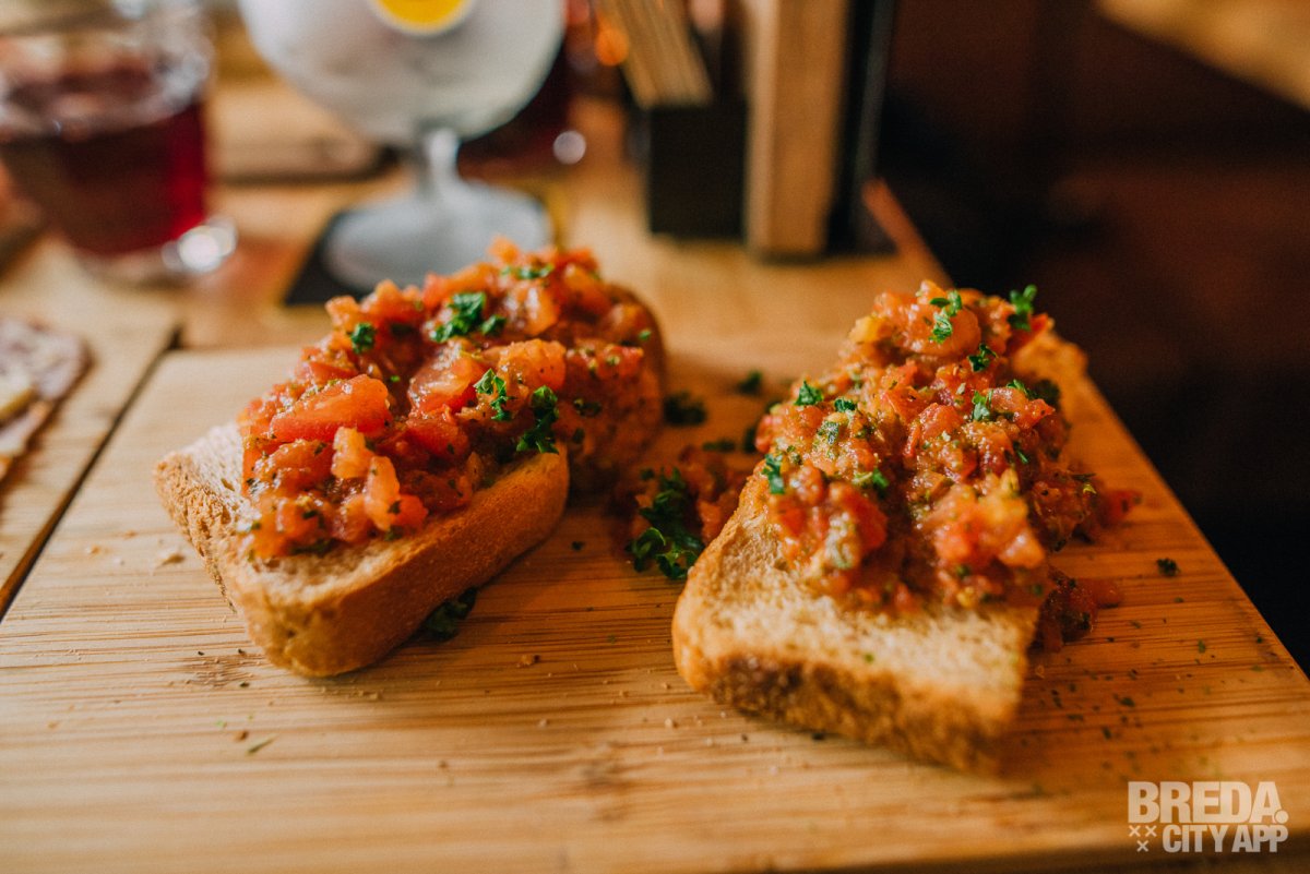 Het tweede gerecht dat geserveerd wordt is de Bruschette Tomate, geroosterd brood met tomaat, basilicum, munt en knoflook. De combinatie van de tomaat met de kruiden zorgt al voor een smaaksensatie. Deze wordt mooi aangevuld door de bite van het geroosterde brood.