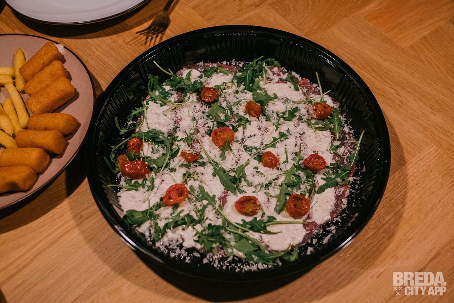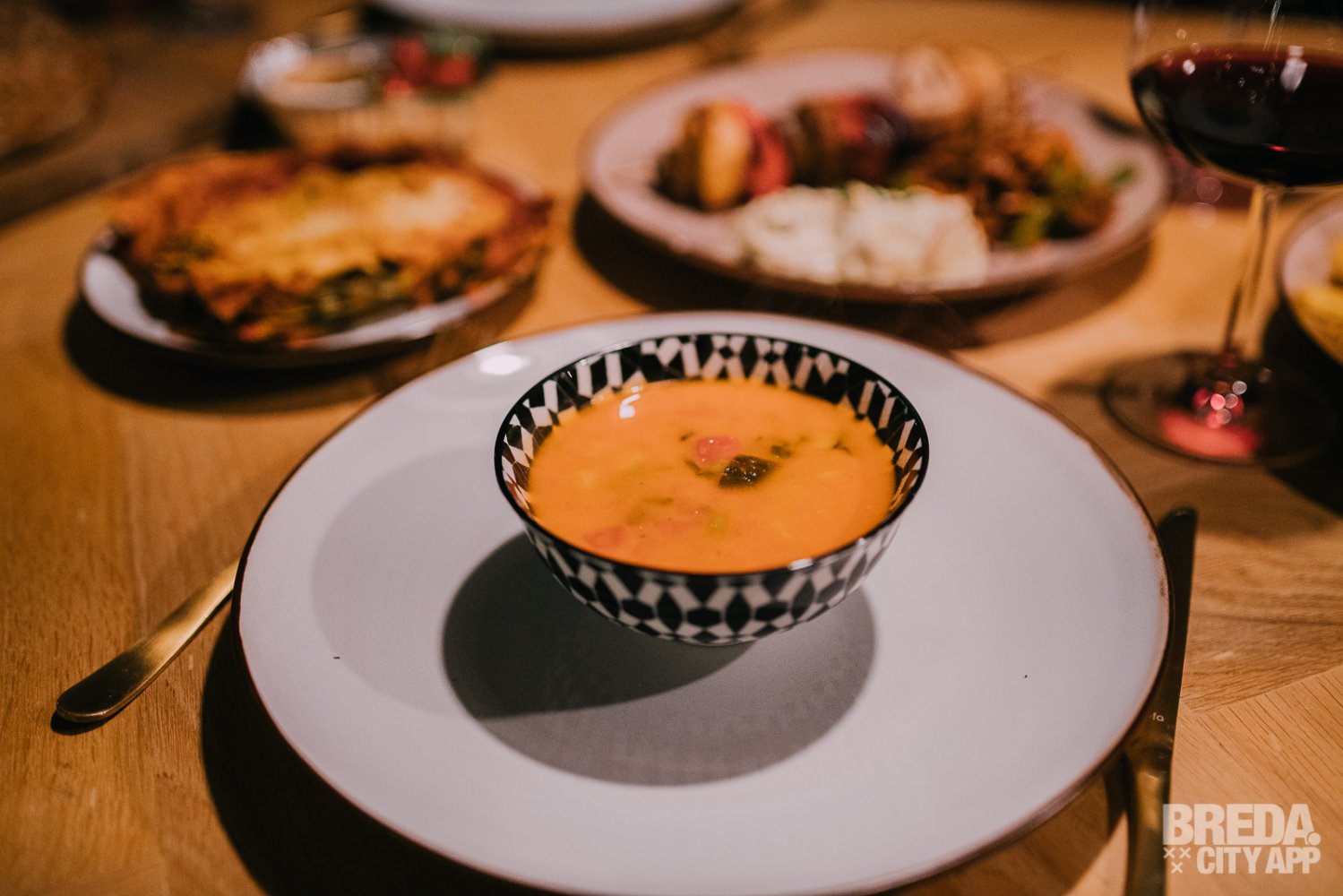 Als voorgerecht starten we met een heerlijke rundercarpaccio met rucola, Grana Padano, zongedroogde tomaatjes en truffelmayonaise. Een klassieker die nooit gaat vervelen! De tweede gang is een pittige paprikasoep met ratatouille en paddenstoelen (vega). De soep is rijkelijk gevuld en lekker romig. Daarbij genieten we van een heerlijk stukje brood, dat zelfs nog warm is. De Scampi op Mediterrane stijl met olijfolie, groentes en rode peper zijn een extra bijgerecht dat je ook zelf moet opwarmen. De scampi's zijn lekker mals en hoog op smaak, om je vingers bij af te likken.