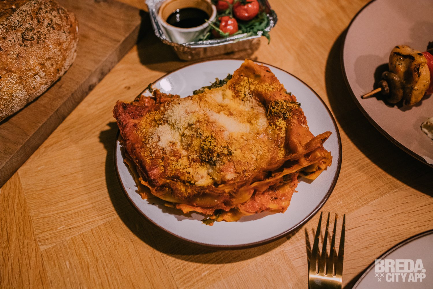 Het tweede hoofdgerecht is een vegetarische lasagne met spinazie, rode paprikasaus en Provençaalse kruiden. Een heerlijk gerecht op deze koude winteravond en perfect in combinatie met de wijn.
