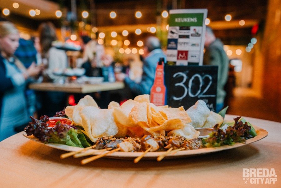 Minang Kabau is in Rotterdam eigenlijk al een begrip, maar ook hier in de Foodhall zijn ze niet de minste! We krijgen de kans te proeven van verschillende soorten saté (kip, lam en varken), overgoten met verse pindasaus. Daarnaast proeven we Pisang Goreng, gefrituurde tempura-garnalen en... spekkoek!