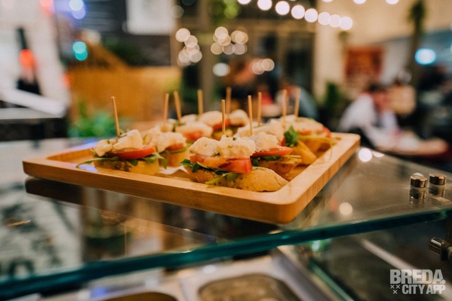 Na de bitterballen is het tijd voor een rijkelijk gevulde borrelplank van Plateau Cru. Hierop vinden we verschillende, vers bereide Pinchos met bijvoorbeeld buffermozzarella en brie de Meaux. Naast deze borrelplanken, kun je bij Plateau Cru ook terecht voor broodjes en salades.