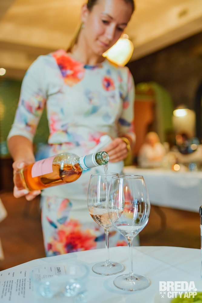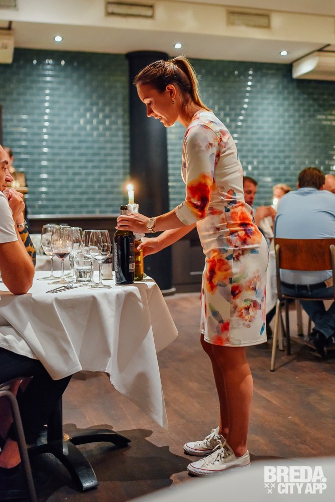 Het fijne aan de toelichting die Lisa ons deze avond geeft is dat ze ons vertelt wat de wijnen doen in combinatie met het eten. Dat is waar het uiteindelijk om gaat, de smaak! Alles wordt op een hele toegankelijke wijze uitgelegd en doordat ze steeds per tafel een uitleg geeft is het heel makkelijk om vragen te stellen en indien gewenst ook wat dieper op de wijnen in te gaan. Zo is deze avond dus heel toegankelijk voor iedereen. Of je nu fijnproever bent op het gebied van wijnen of er juist graag nog wat meer over wil weten.