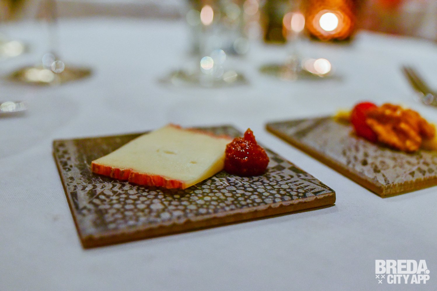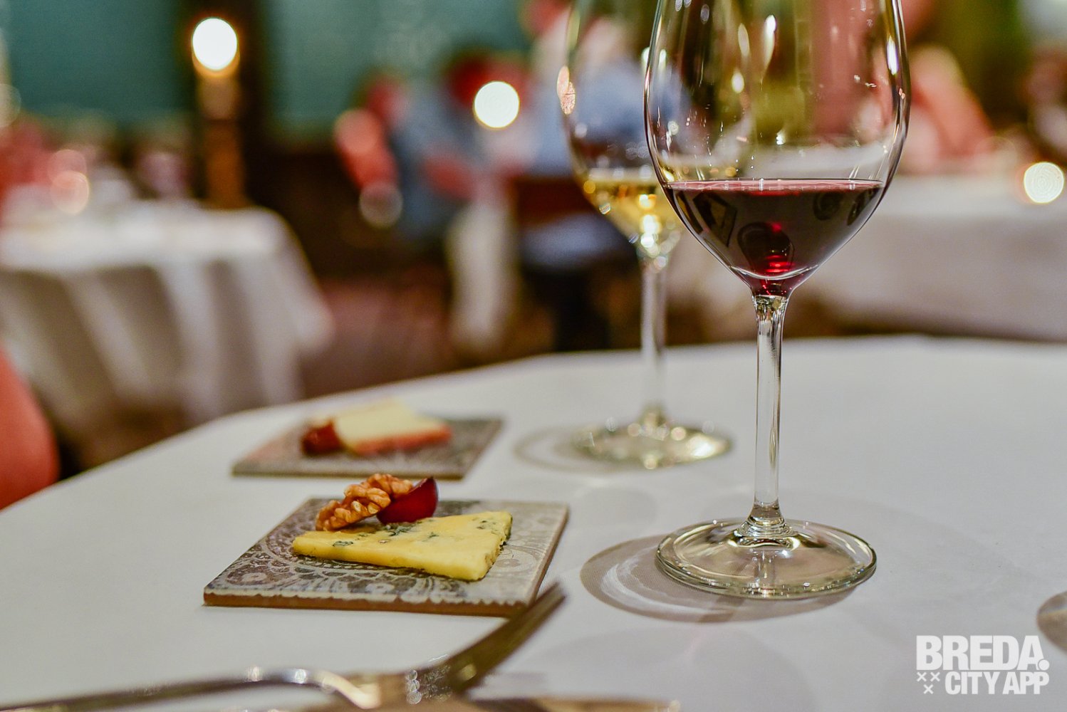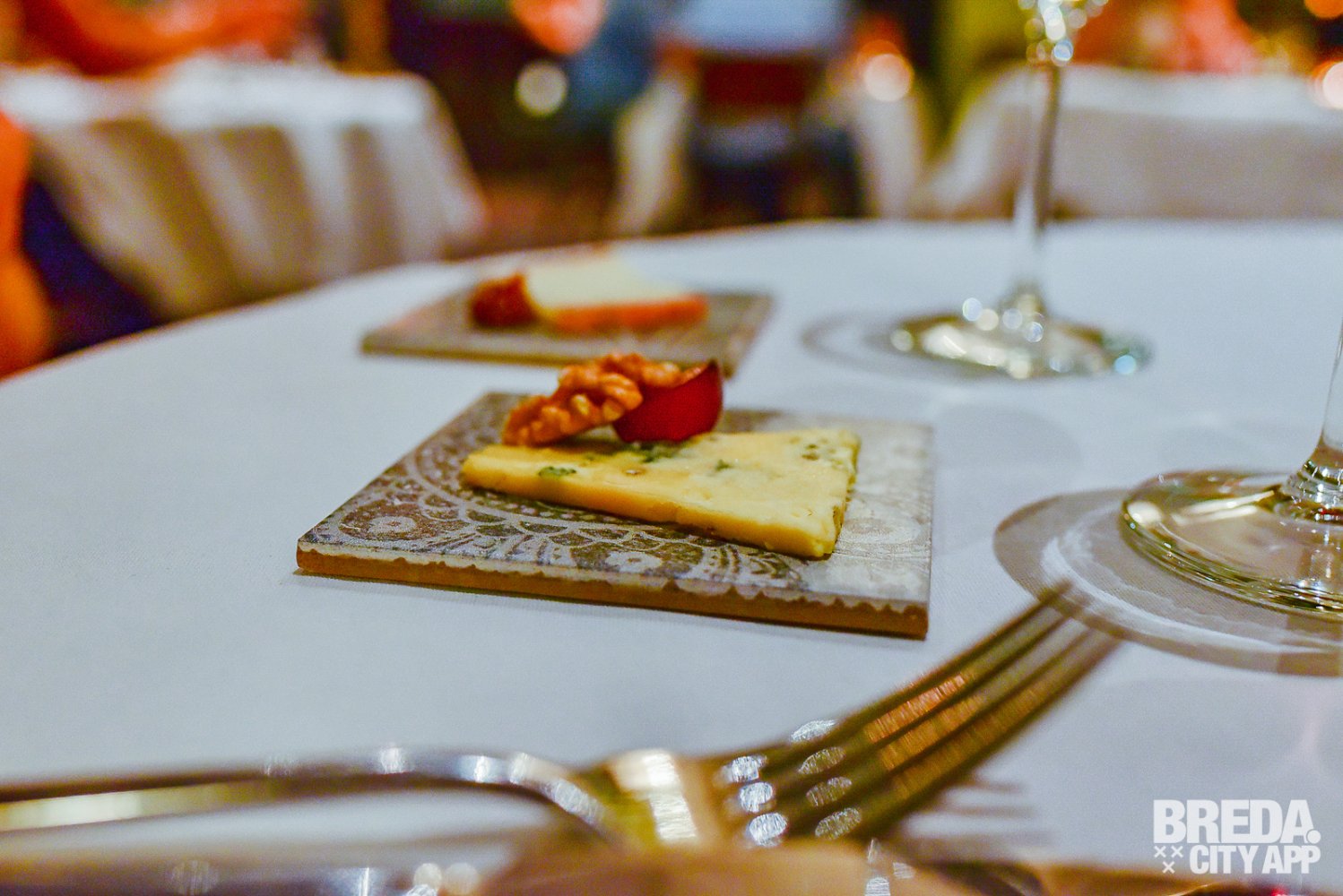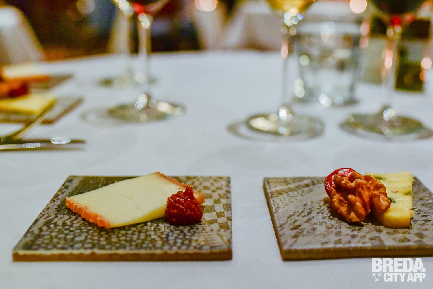 Terwijl we gezellig kletsen met Robin en Lisa verschijnen de kazen op ons gezellige tafeltje voor twee. Een Quadrello Di Bufala en een blauwschimmel genaamd Lazulli. We hebben het genoegen om nogmaals de Chardonnay te proeven. Dit keer in combinatie met de romige witschimmel kaas van de buffel. De Primitivo de Mandria uit de hak van de laars van Italië heeft zoete tonen van rood fruit die goed paart met de pittigheid van de blauwschimmel. De kaas is afkomstig van Nederlandse bodem, maar wordt gemaakt zoals Gorgonzola traditioneel gemaakt wordt.