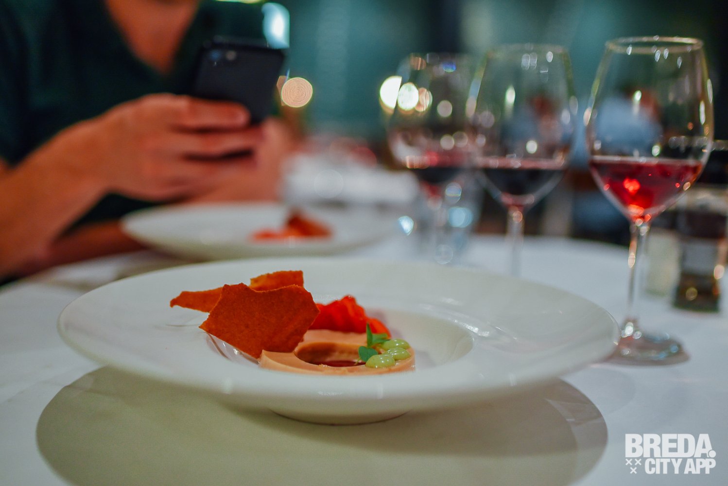 We beginnen deze avond met een bijzonder aperitief. Een mousserende wijn met eigen Barlucca label. Een heerlijke frisse bubbel met een klein zoetje. Terwijl we genieten van onze ‘Barlucca bubbels’ vertelt Lisa dat er vanavond per gang twee bijpassende wijnen geschonken worden. Alle wijnen zijn afkomstig uit Italië, waarbij zowel de bekende als de minder bekende druivensoorten de revue passeren.