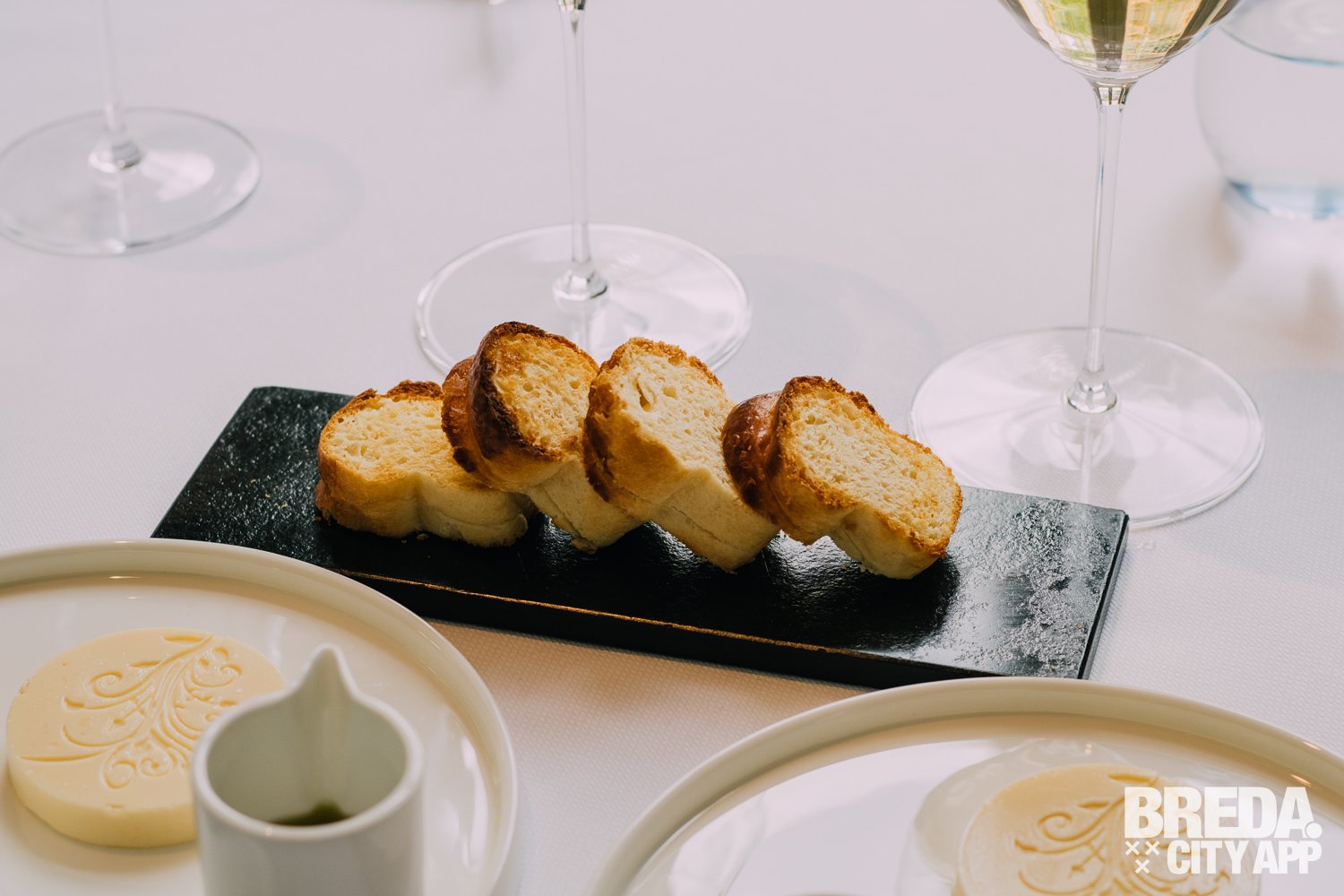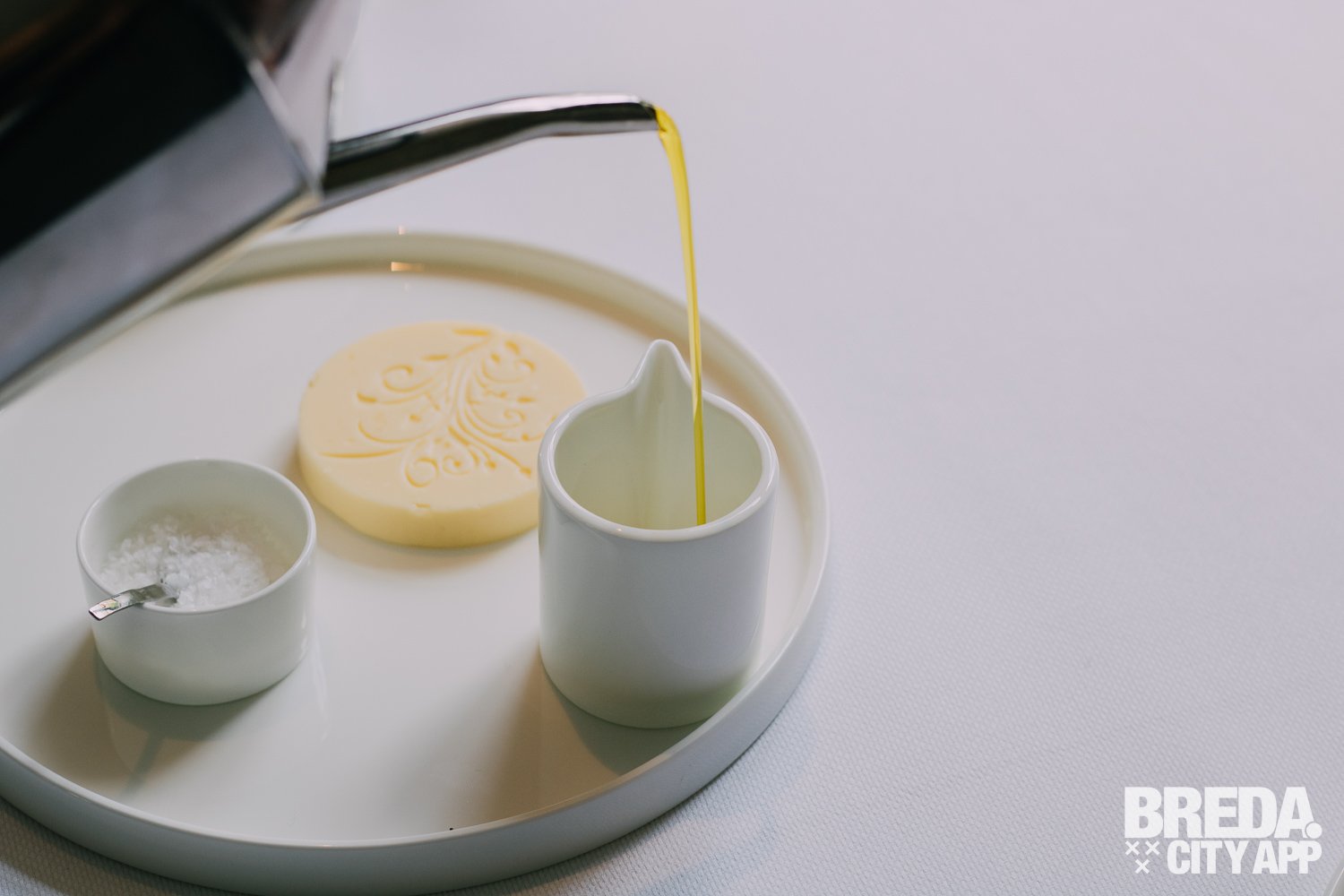 Rick stelt voor om het 5-gangen Signature Menu te proeven, waarbij hij met elke gang een verhaal vertelt over de bijpassende gekozen wijnen. Overigens is het ook mogelijk om uit de zeer uitgebreide wijnkaart een bijzondere fles te kiezen. De collectie wijn is een project waar ze nu al zo'n twee jaar met veel energie aan werken om deze uiteindelijk te mogen meten met de meest legendarische van het land. De amuse; een kunstwerkje van Iberico varken op Aziatische wijze, prikkelt onze zintuigen, terwijl we genieten van vers brood met smeerbare rauwmelkse boter uit Udenhout en Extra Vierge olijfolie uit Lazio (Italië) die zij zelf naar Nederland halen.