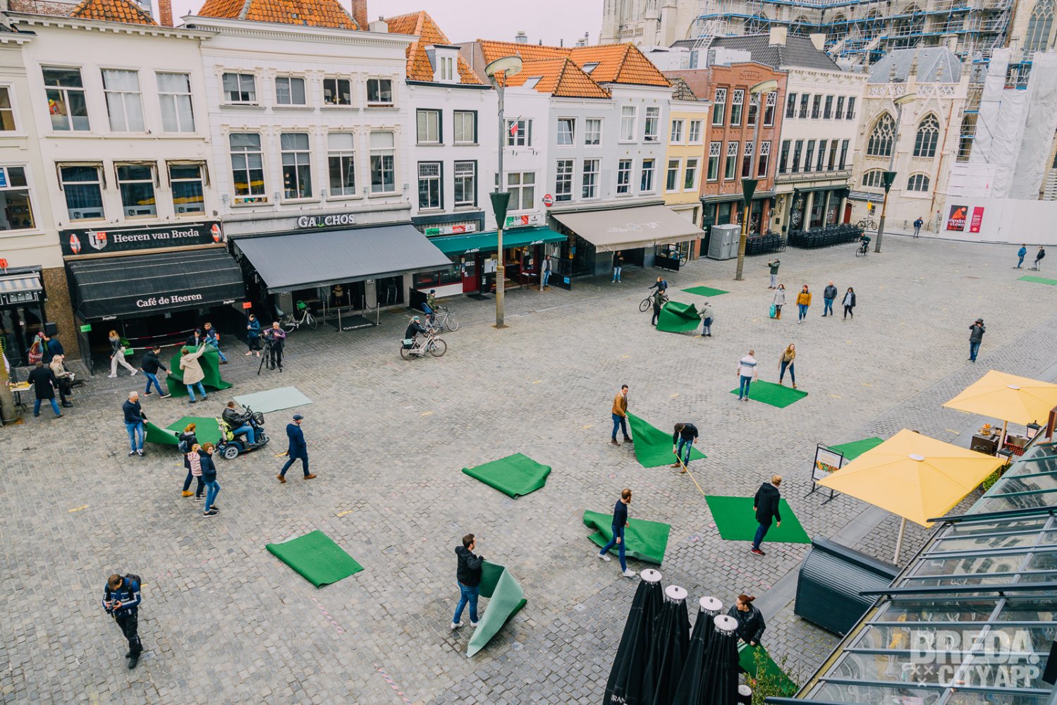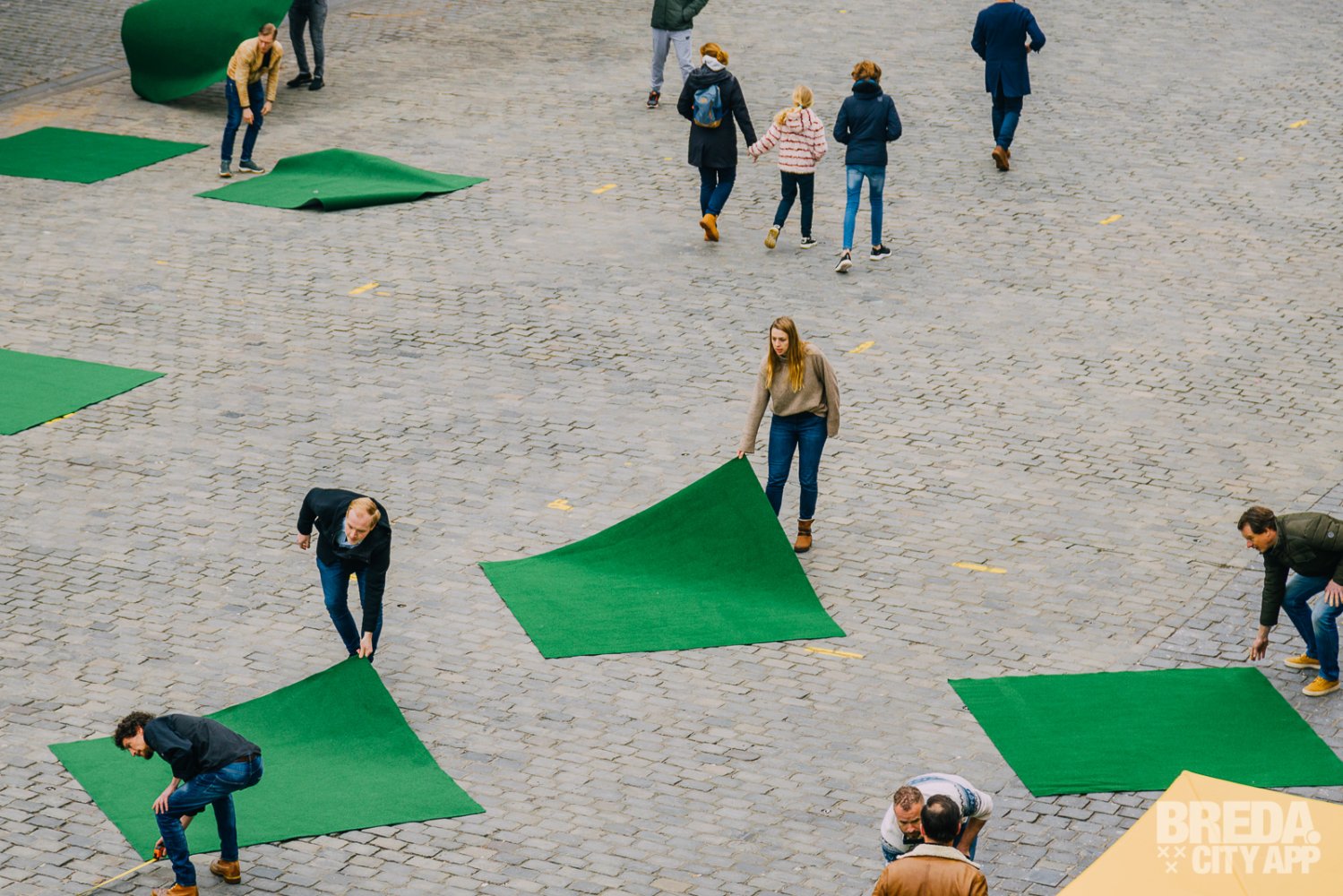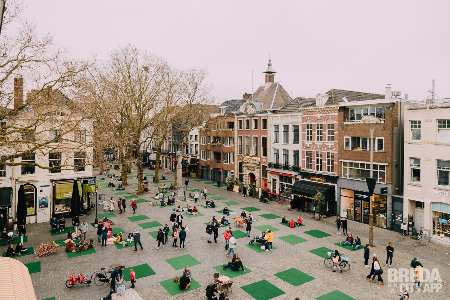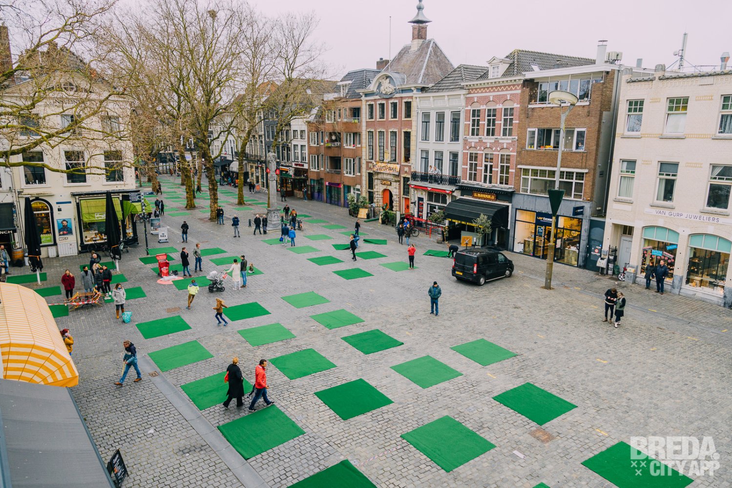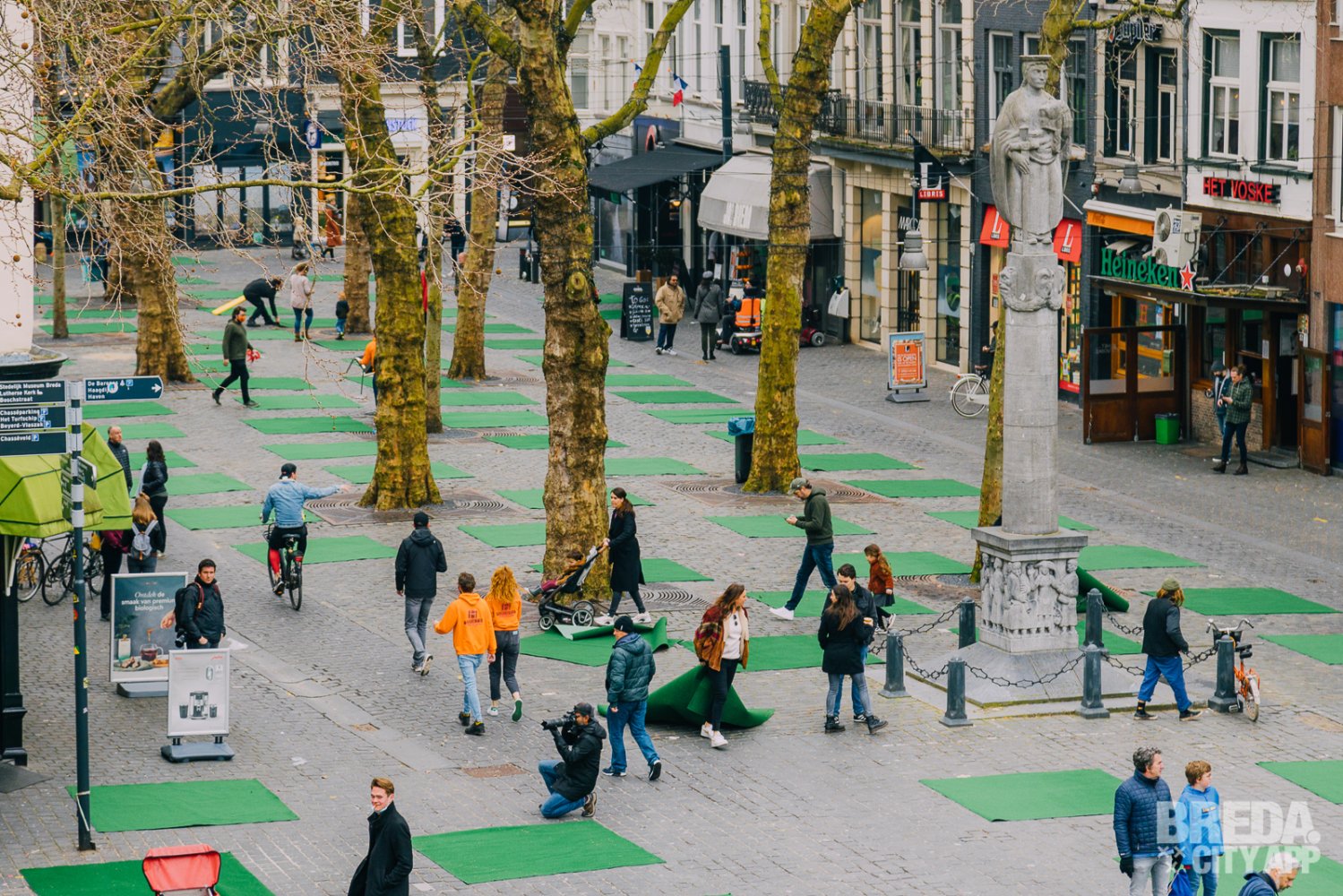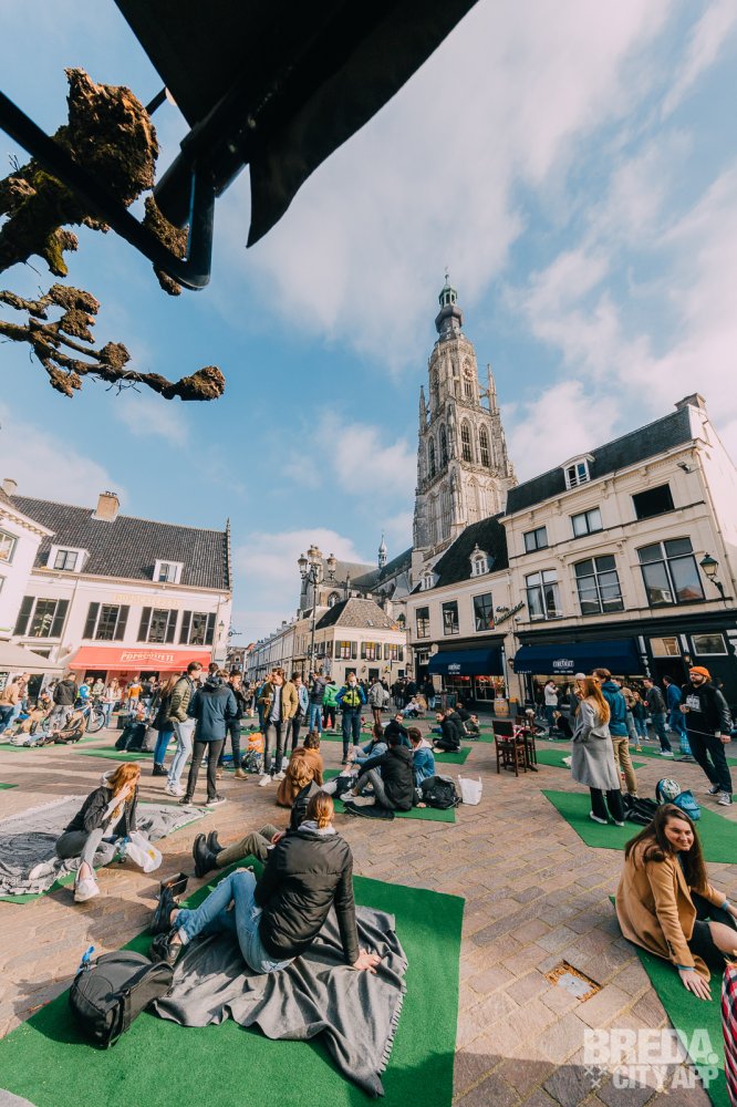 Ruim 2.000 vierkante meter kunstgras veranderden het centrum van Breda vandaag in het grootste stadspark van Nederland. Mensen konden gezellig op o.a. de Grote Markt, Havermarkt, Haven, het Ginneken en de Haagsemarkt gaan picknicken. Deze ludieke protestactie werd gedragen door ruim 60 horeca-ondernemers. Bekijk hier de lifestream, welke ruim een half miljoen mensen bereikte.