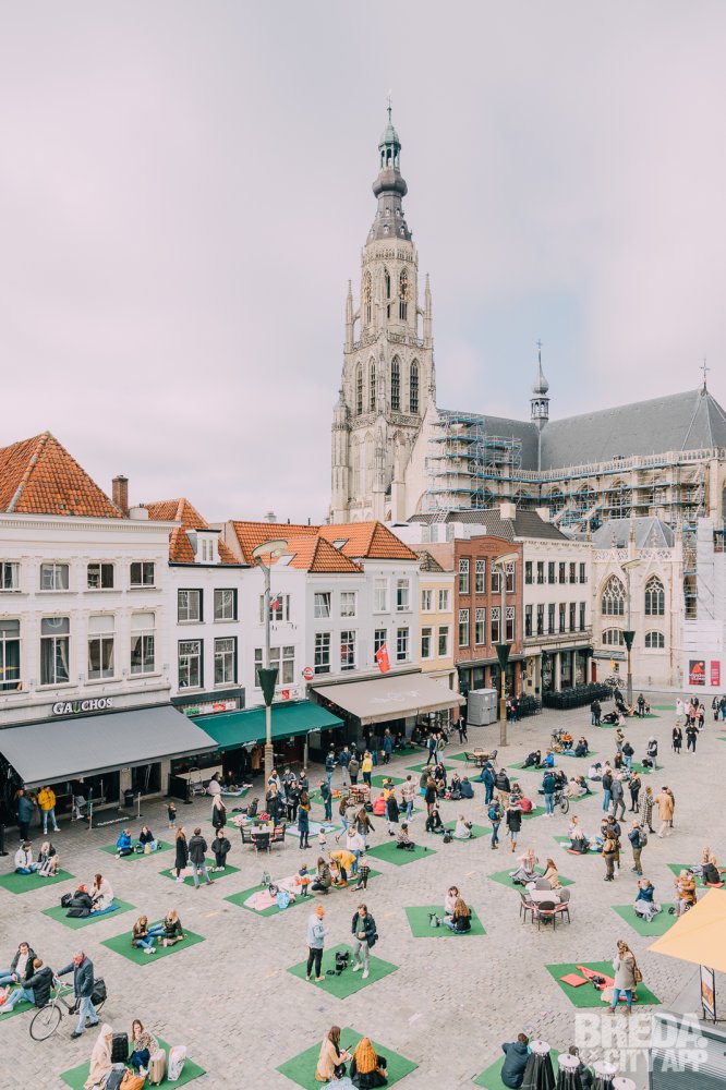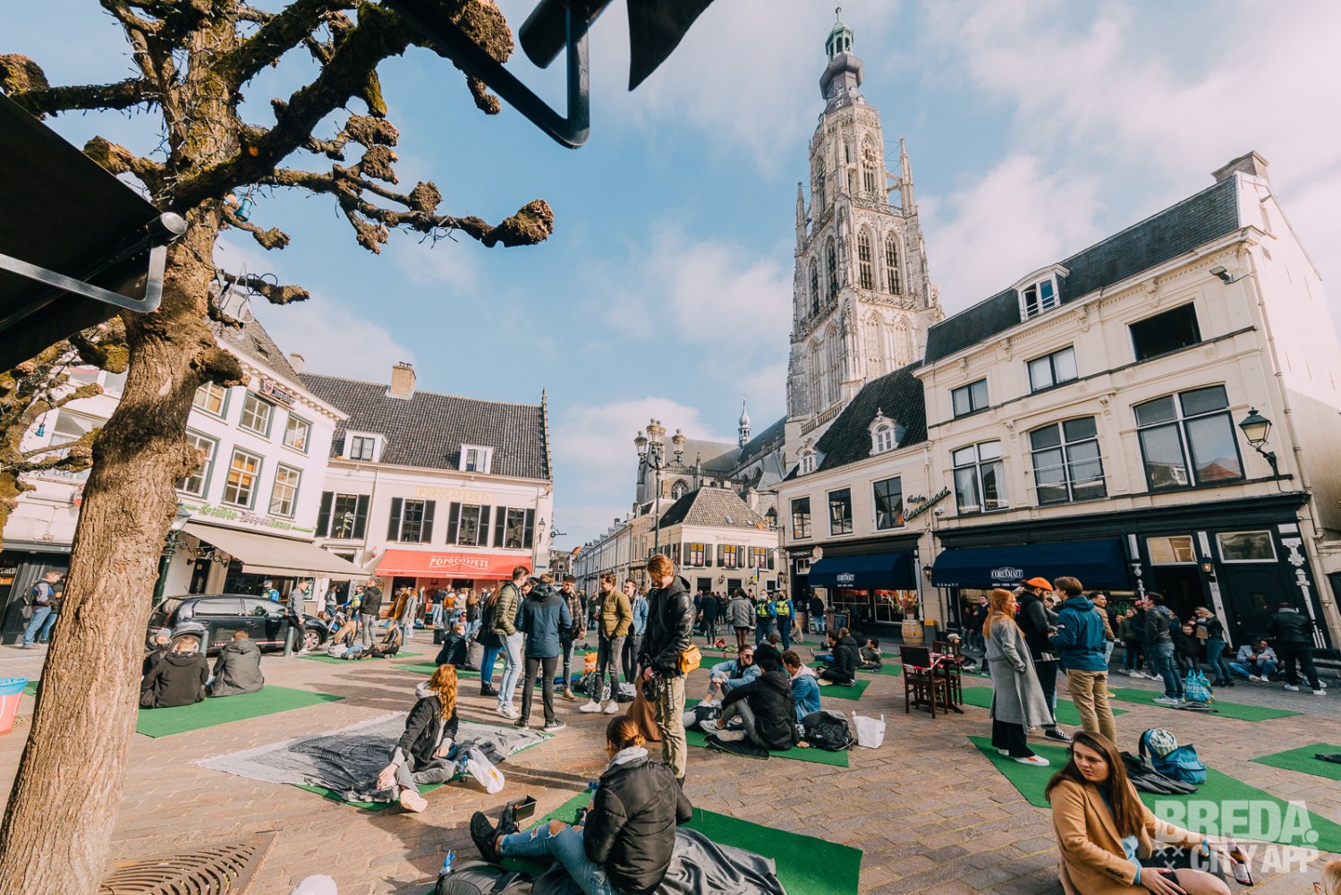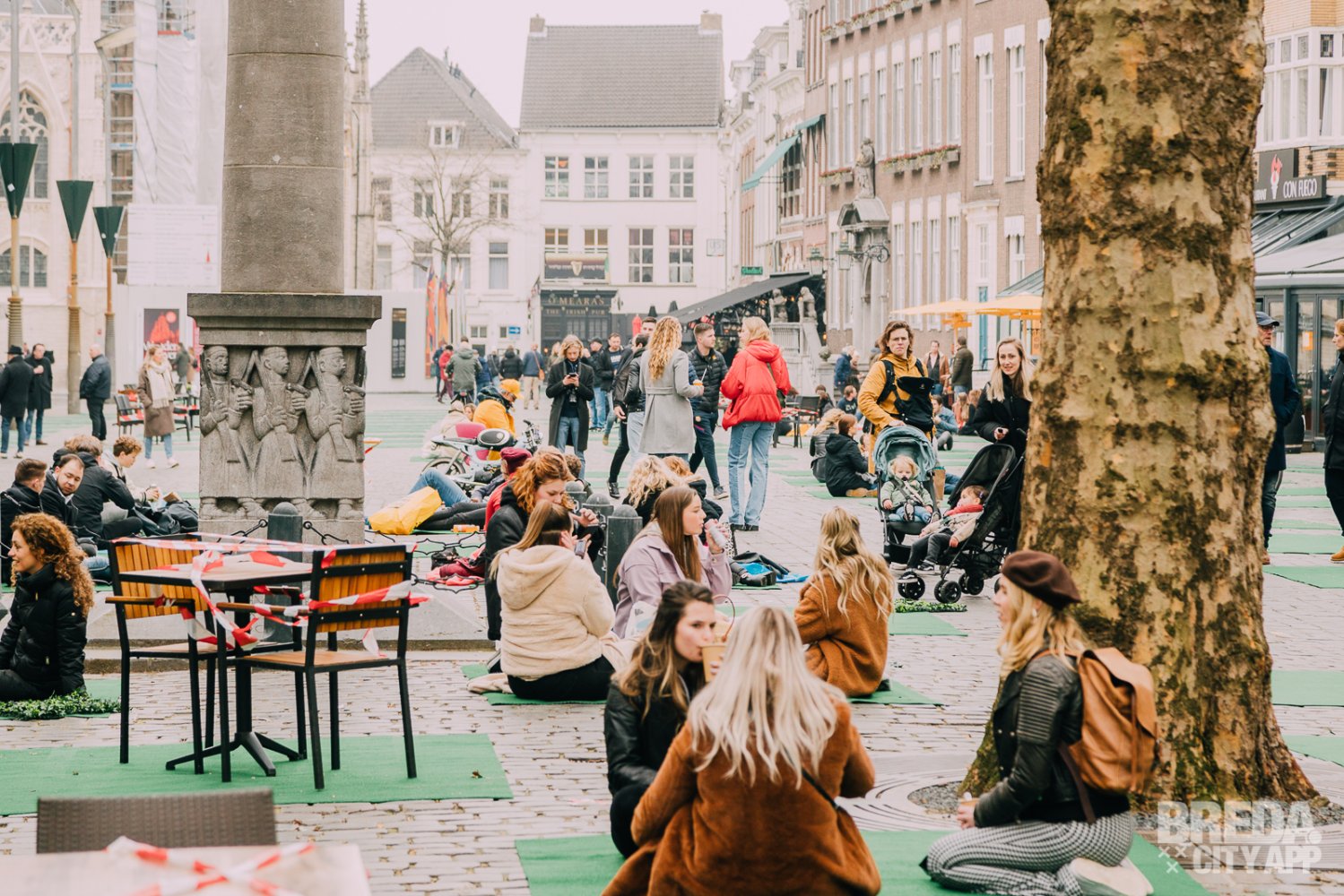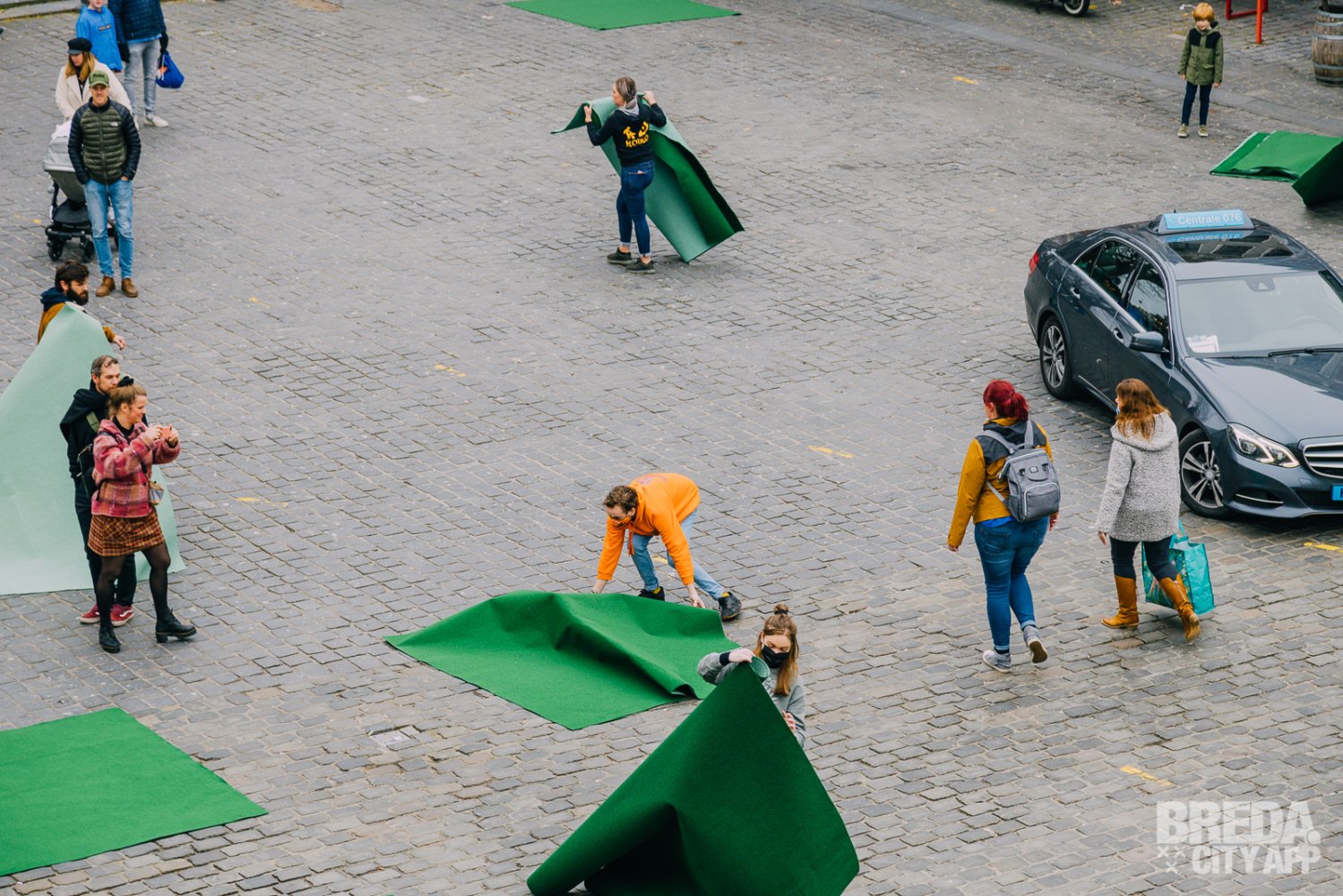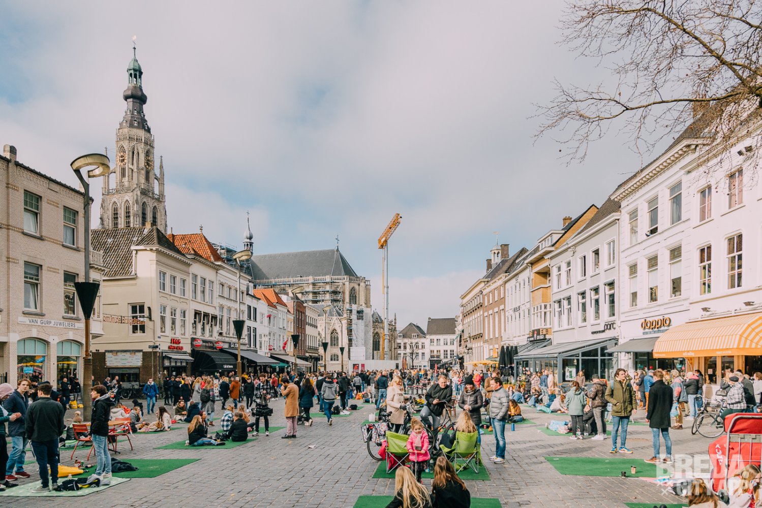 Ruim 2.000 vierkante meter kunstgras veranderden het centrum van Breda vandaag in het grootste stadspark van Nederland. Mensen konden gezellig op o.a. de Grote Markt, Havermarkt, Haven, het Ginneken en de Haagsemarkt gaan picknicken. Deze ludieke protestactie werd gedragen door ruim 60 horeca-ondernemers. Bekijk hier de lifestream, welke ruim een half miljoen mensen bereikte.
