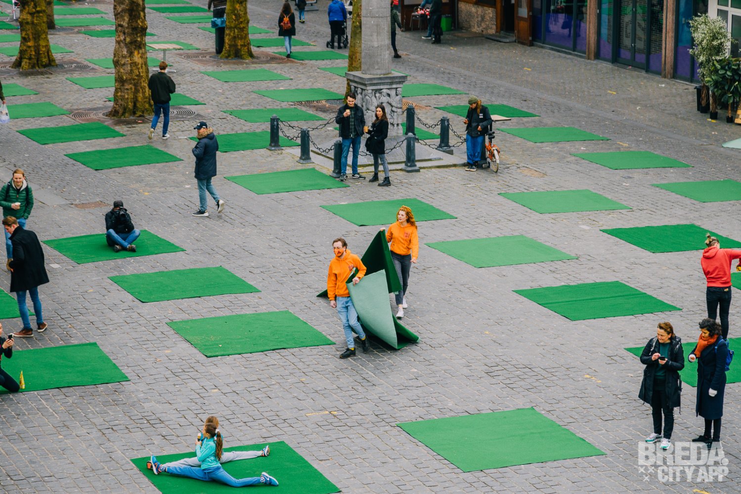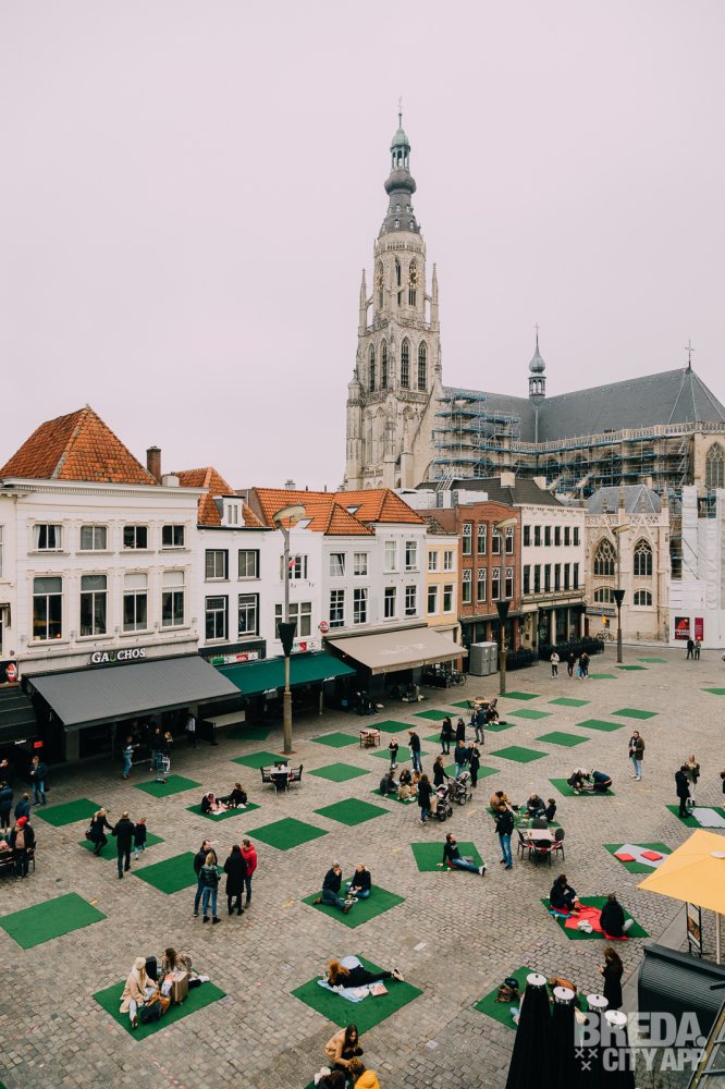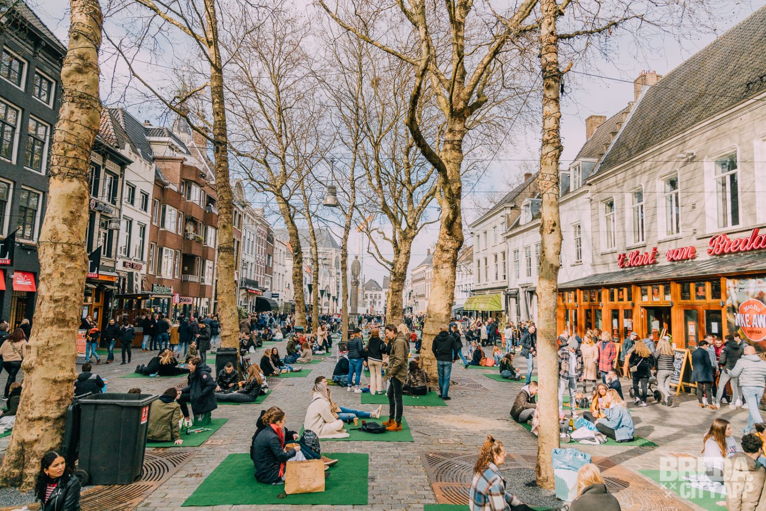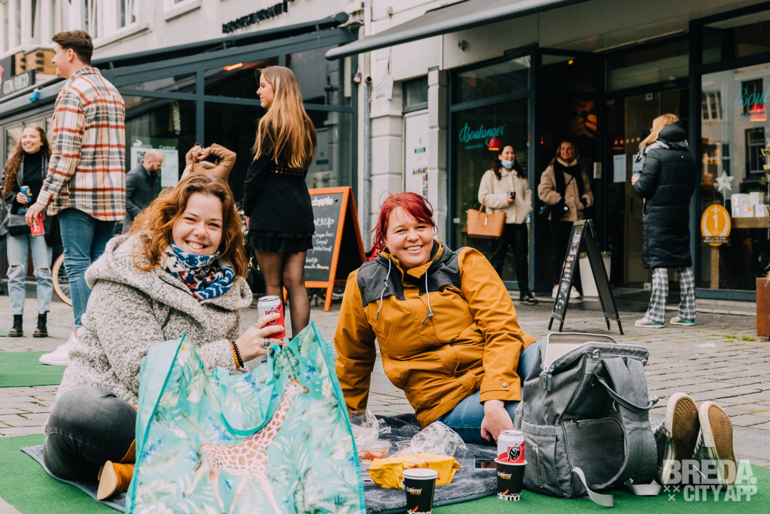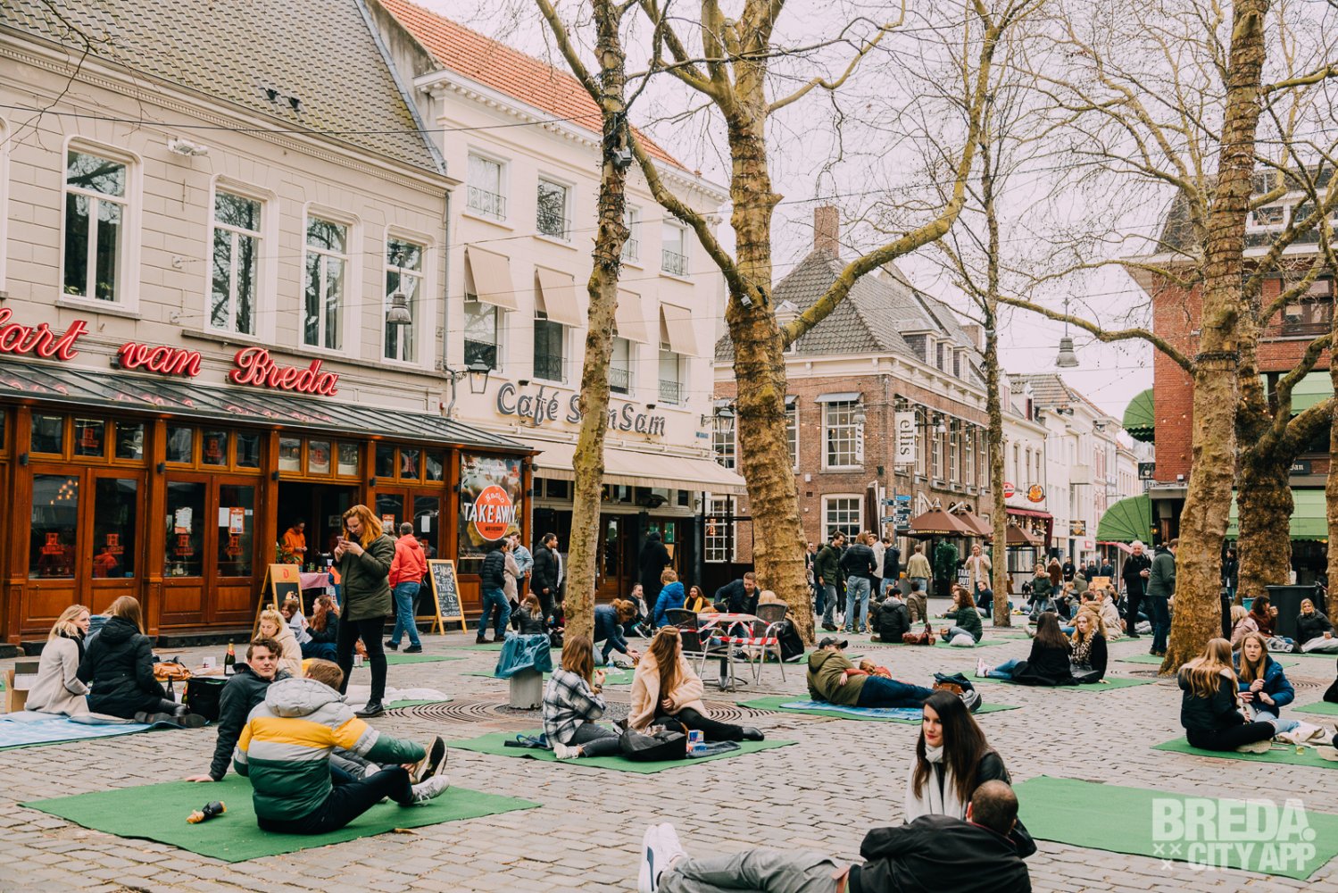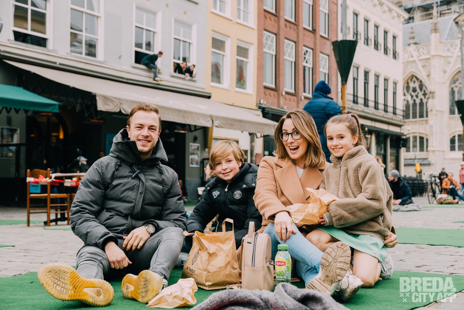 Ruim 2.000 vierkante meter kunstgras veranderden het centrum van Breda vandaag in het grootste stadspark van Nederland. Mensen konden gezellig op o.a. de Grote Markt, Havermarkt, Haven, het Ginneken en de Haagsemarkt gaan picknicken. Deze ludieke protestactie werd gedragen door ruim 60 horeca-ondernemers. Bekijk hier de lifestream, welke ruim een half miljoen mensen bereikte.