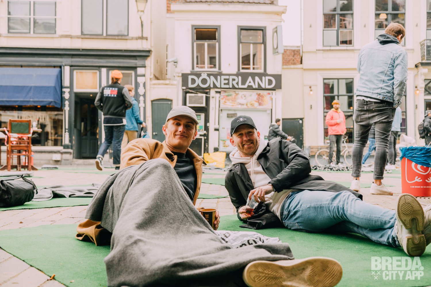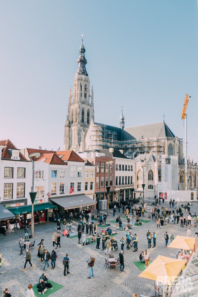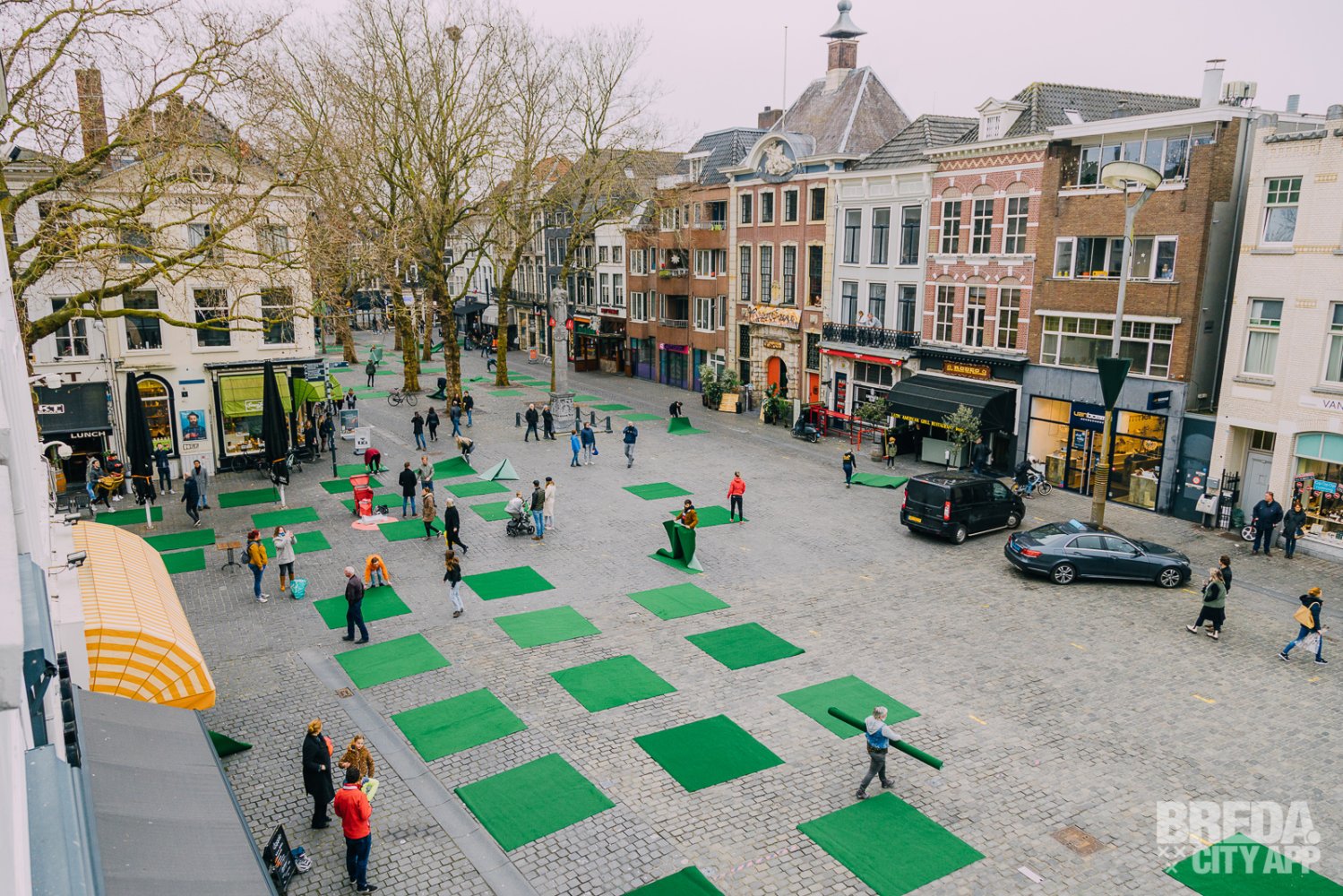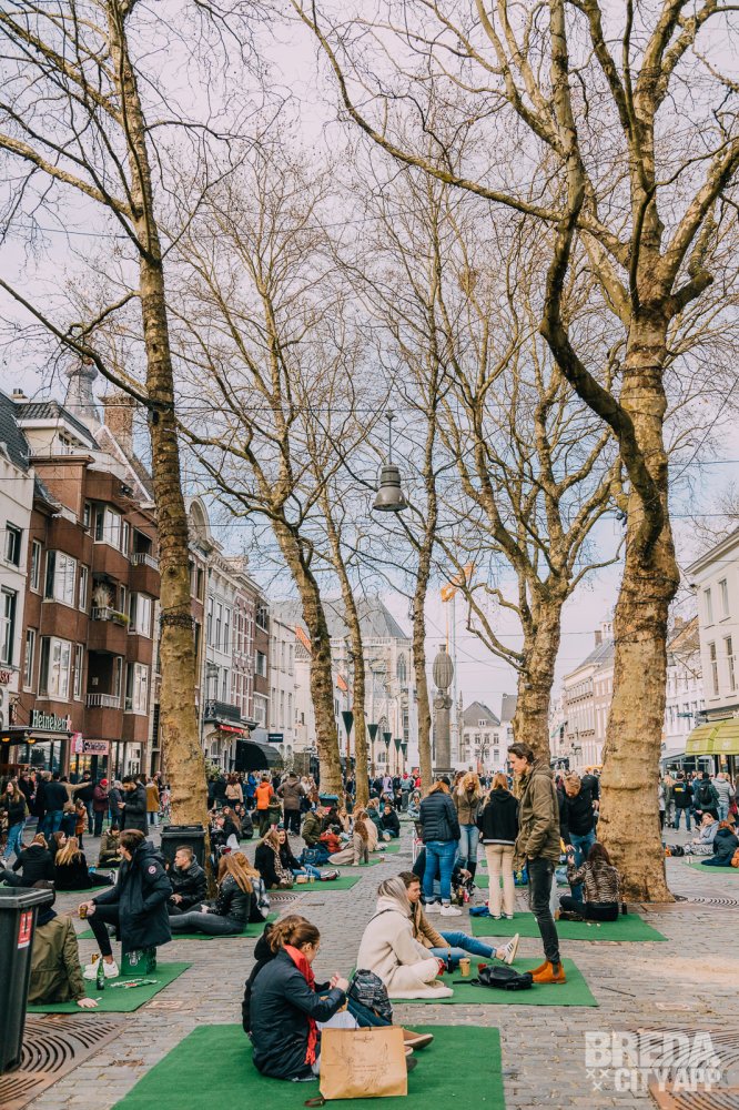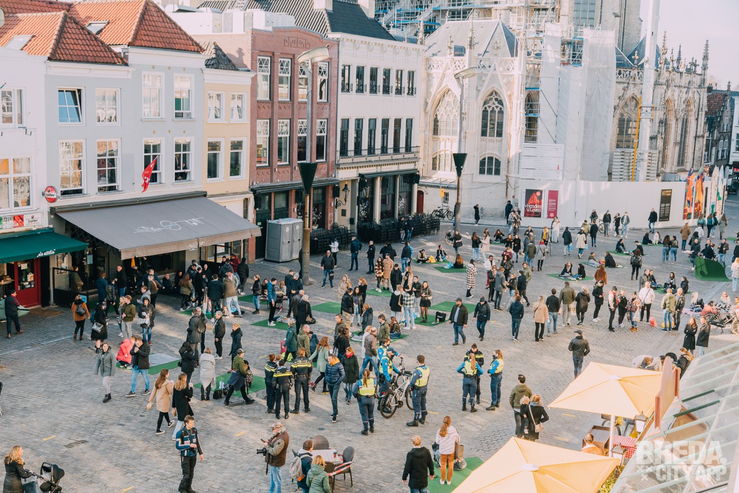 Ruim 2.000 vierkante meter kunstgras veranderden het centrum van Breda vandaag in het grootste stadspark van Nederland. Mensen konden gezellig op o.a. de Grote Markt, Havermarkt, Haven, het Ginneken en de Haagsemarkt gaan picknicken. Deze ludieke protestactie werd gedragen door ruim 60 horeca-ondernemers. Bekijk hier de lifestream, welke ruim een half miljoen mensen bereikte.
