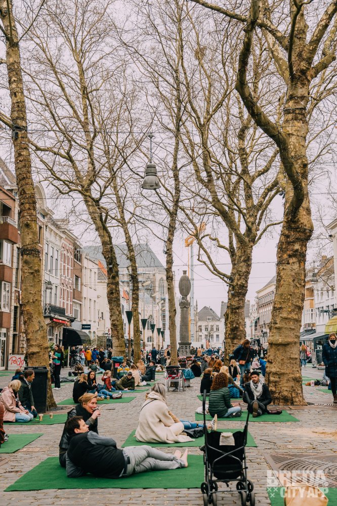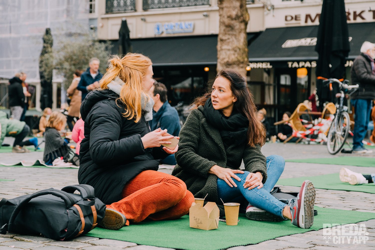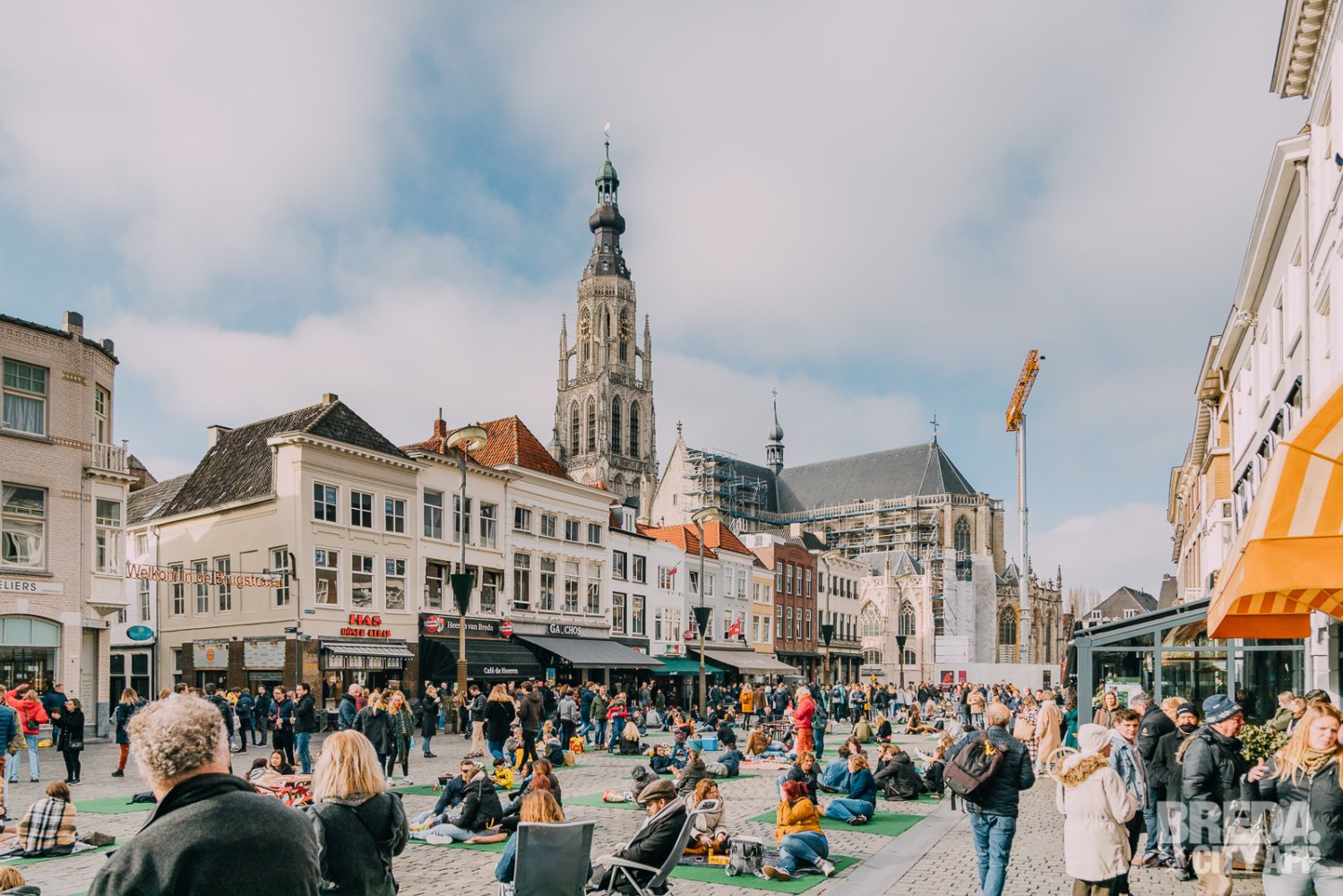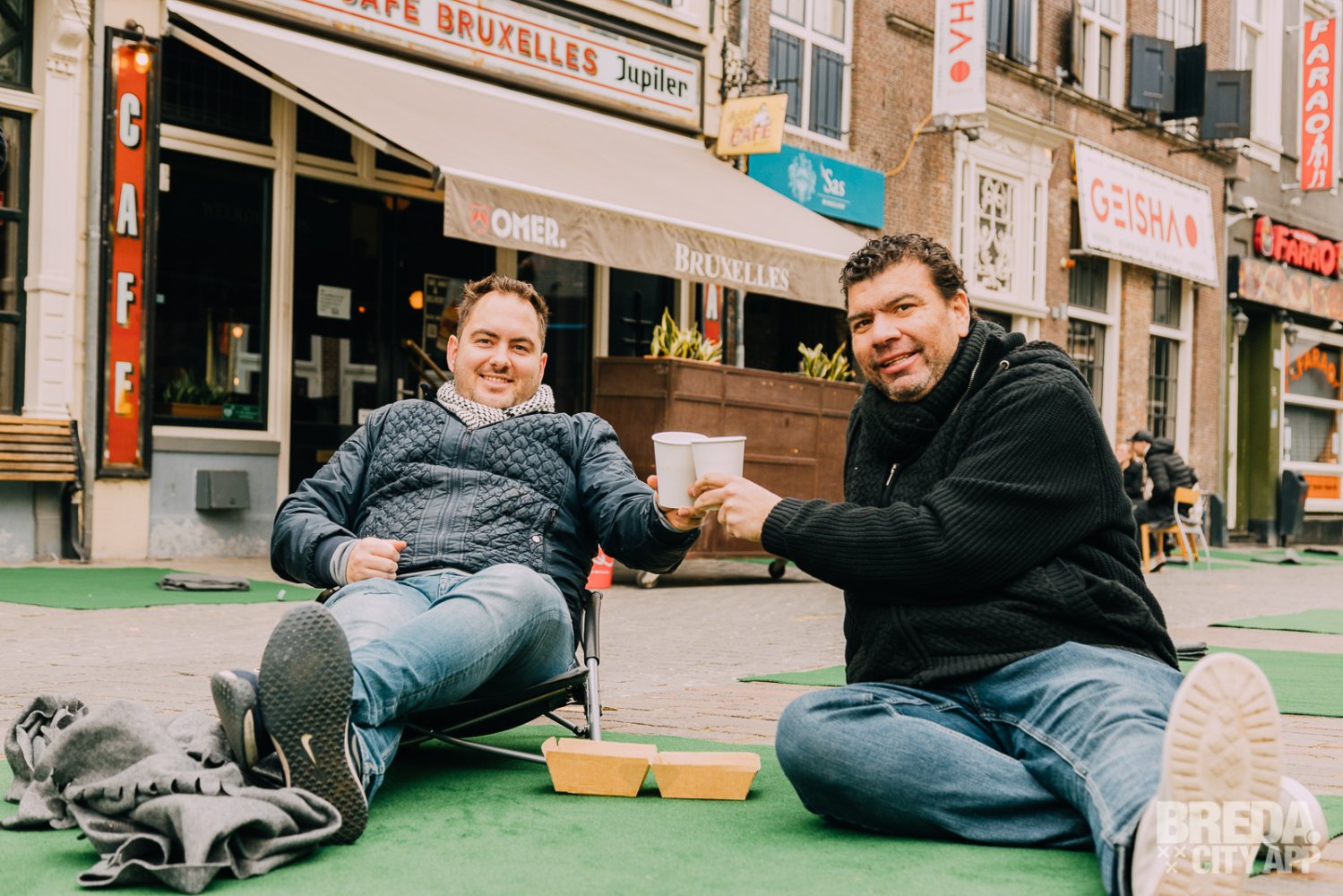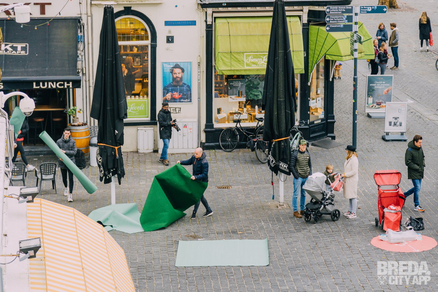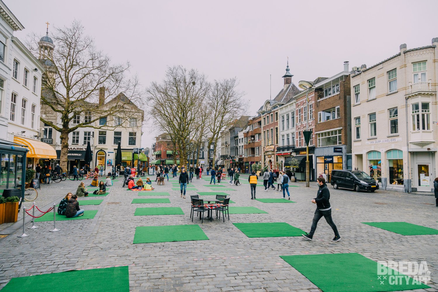 Ruim 2.000 vierkante meter kunstgras veranderden het centrum van Breda vandaag in het grootste stadspark van Nederland. Mensen konden gezellig op o.a. de Grote Markt, Havermarkt, Haven, het Ginneken en de Haagsemarkt gaan picknicken. Deze ludieke protestactie werd gedragen door ruim 60 horeca-ondernemers. Bekijk hier de lifestream, welke ruim een half miljoen mensen bereikte.