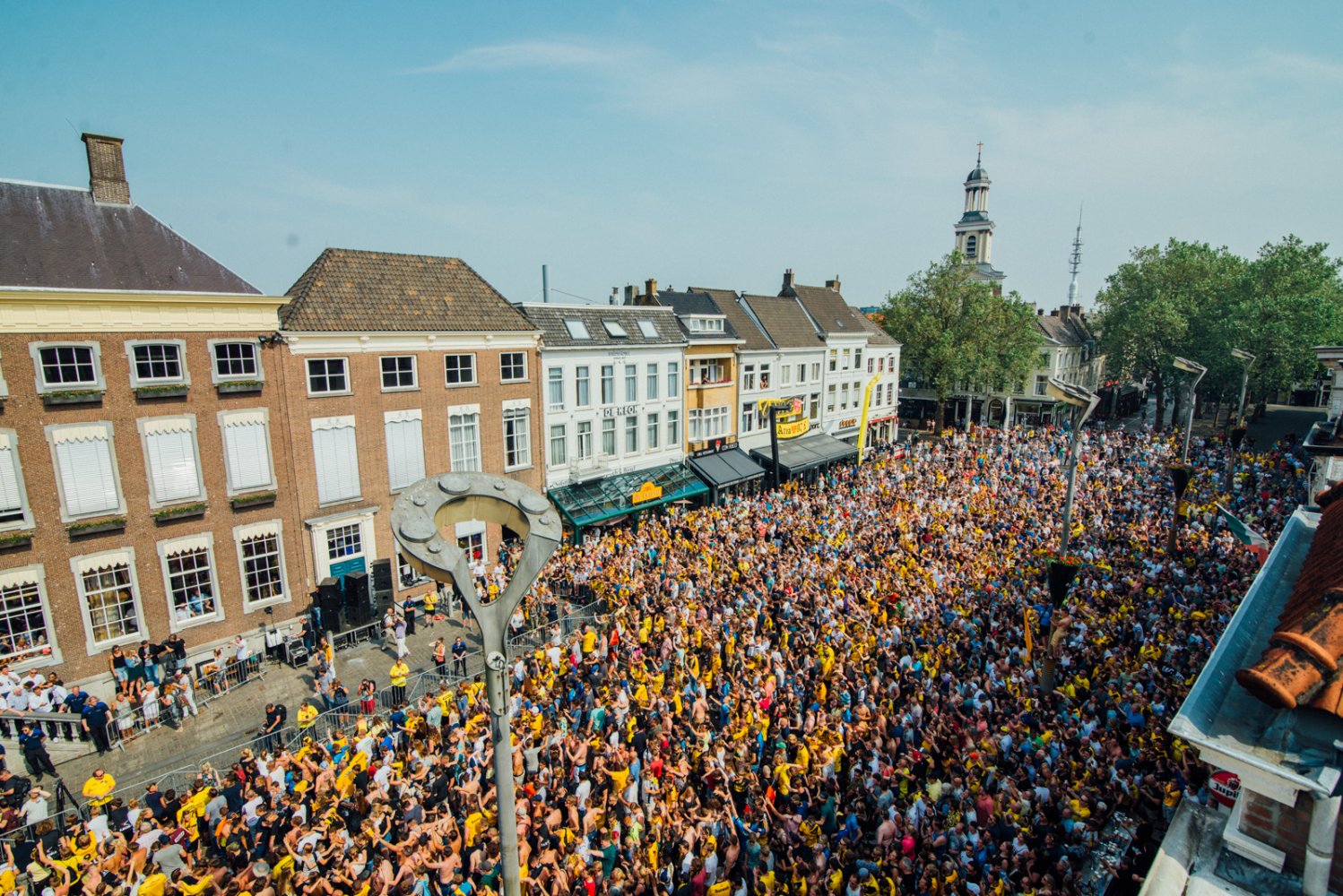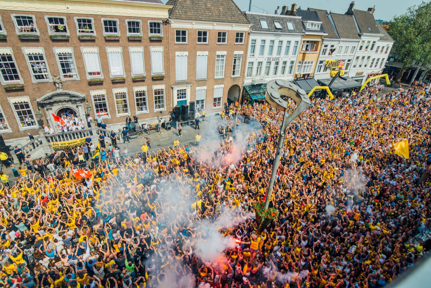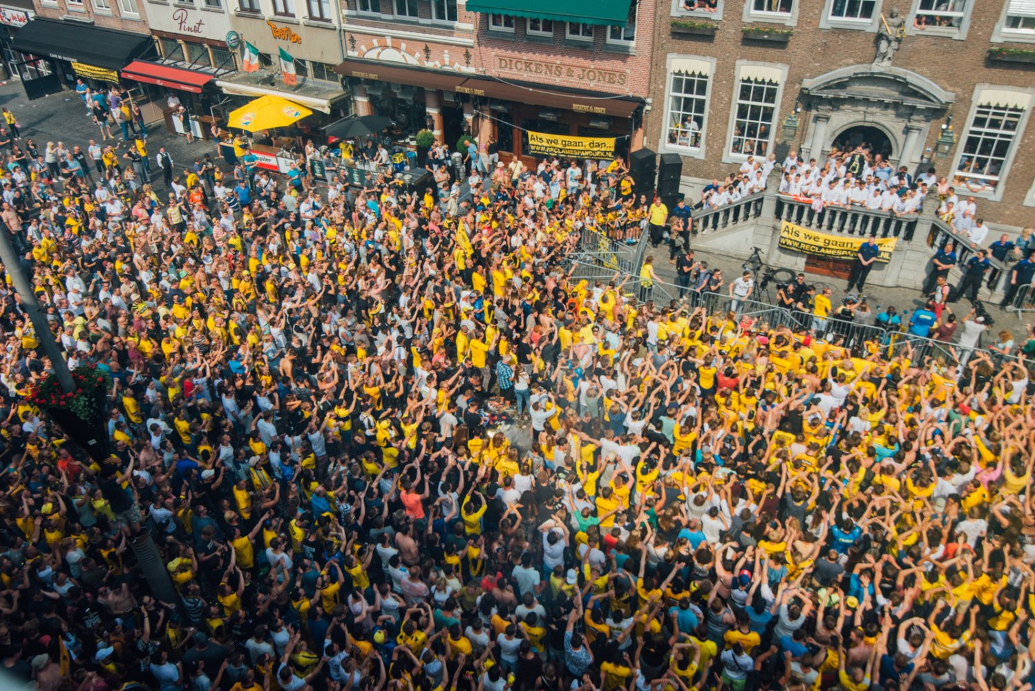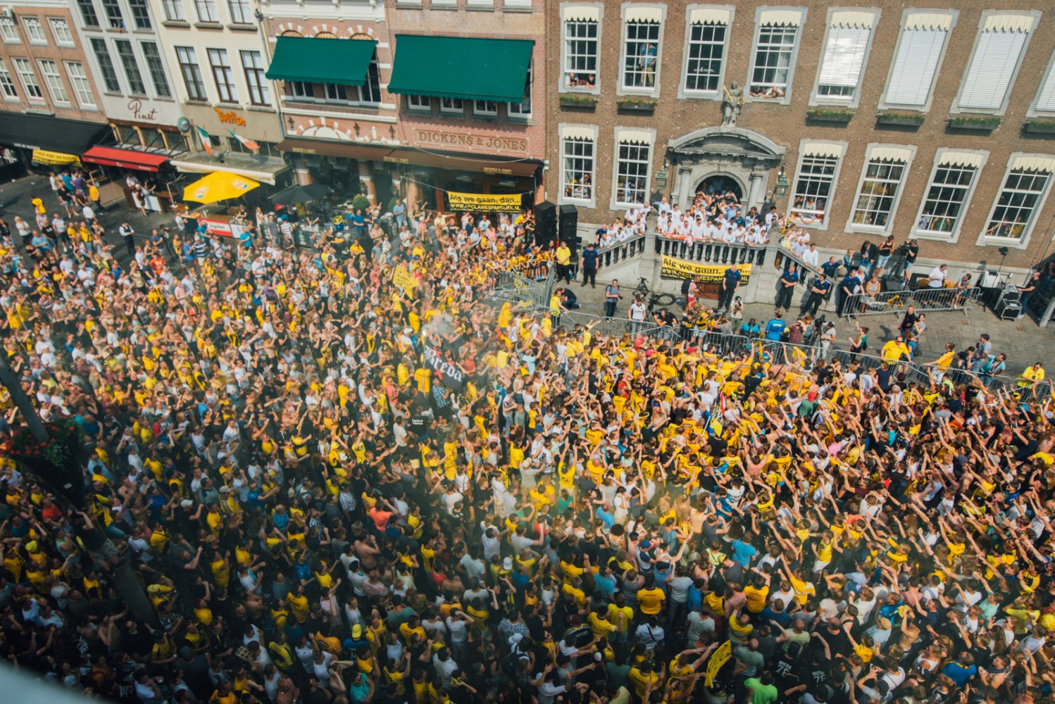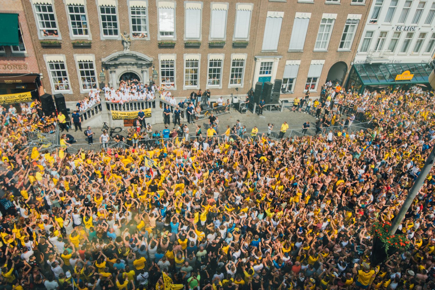 duizenden mensen op de Grote Markt voor de huldiging van NAC