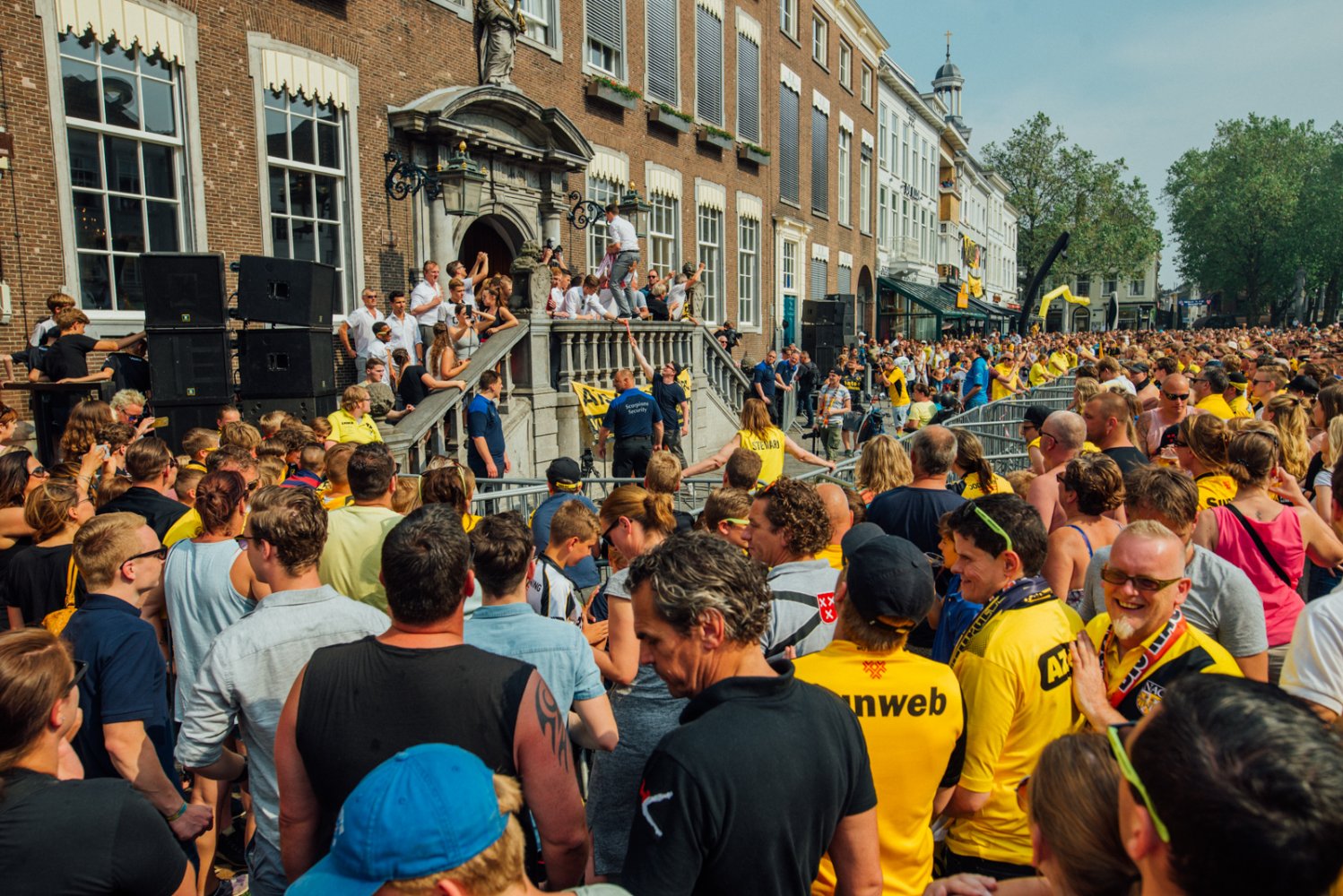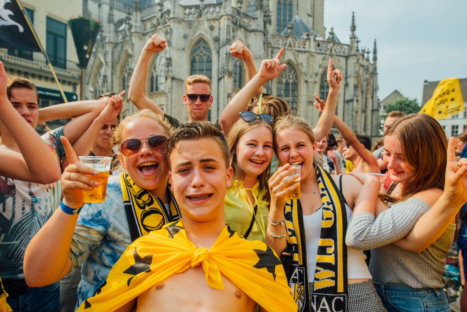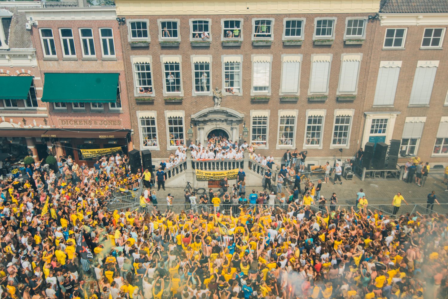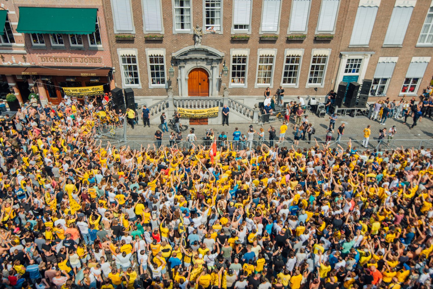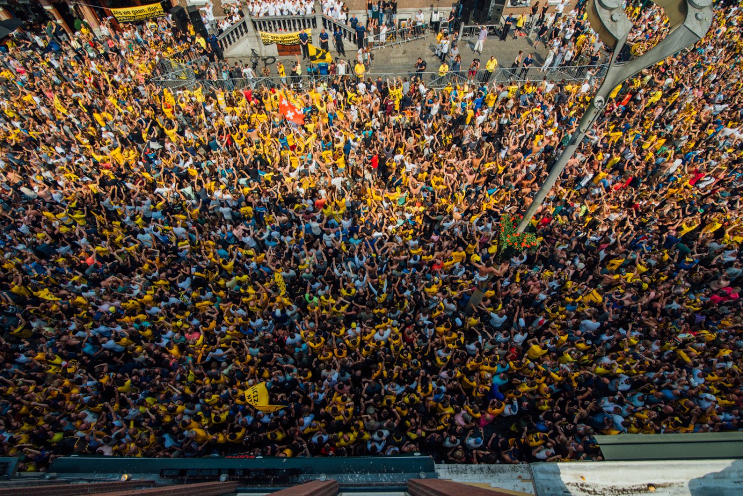 duizenden mensen op de Grote Markt voor de huldiging van NAC