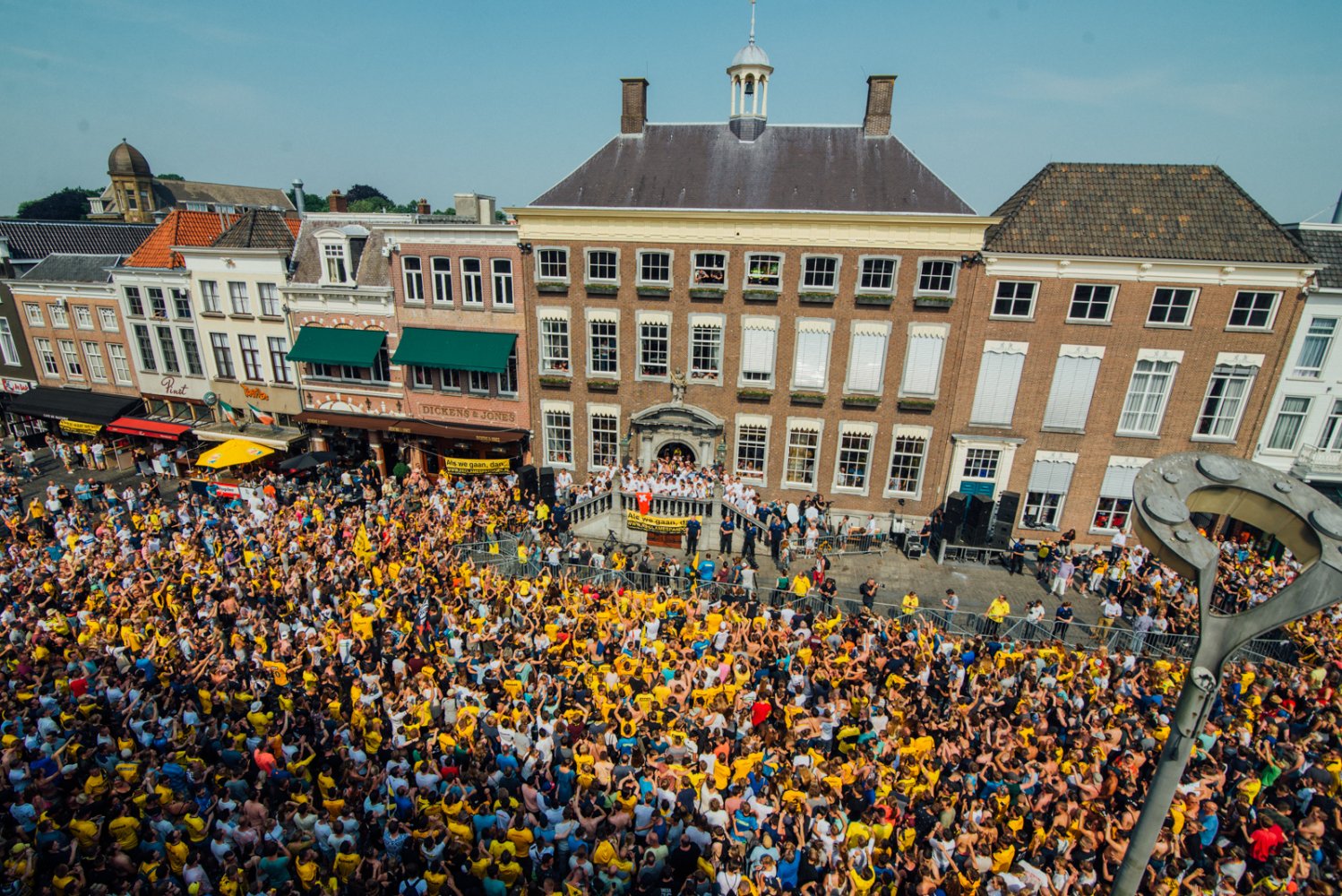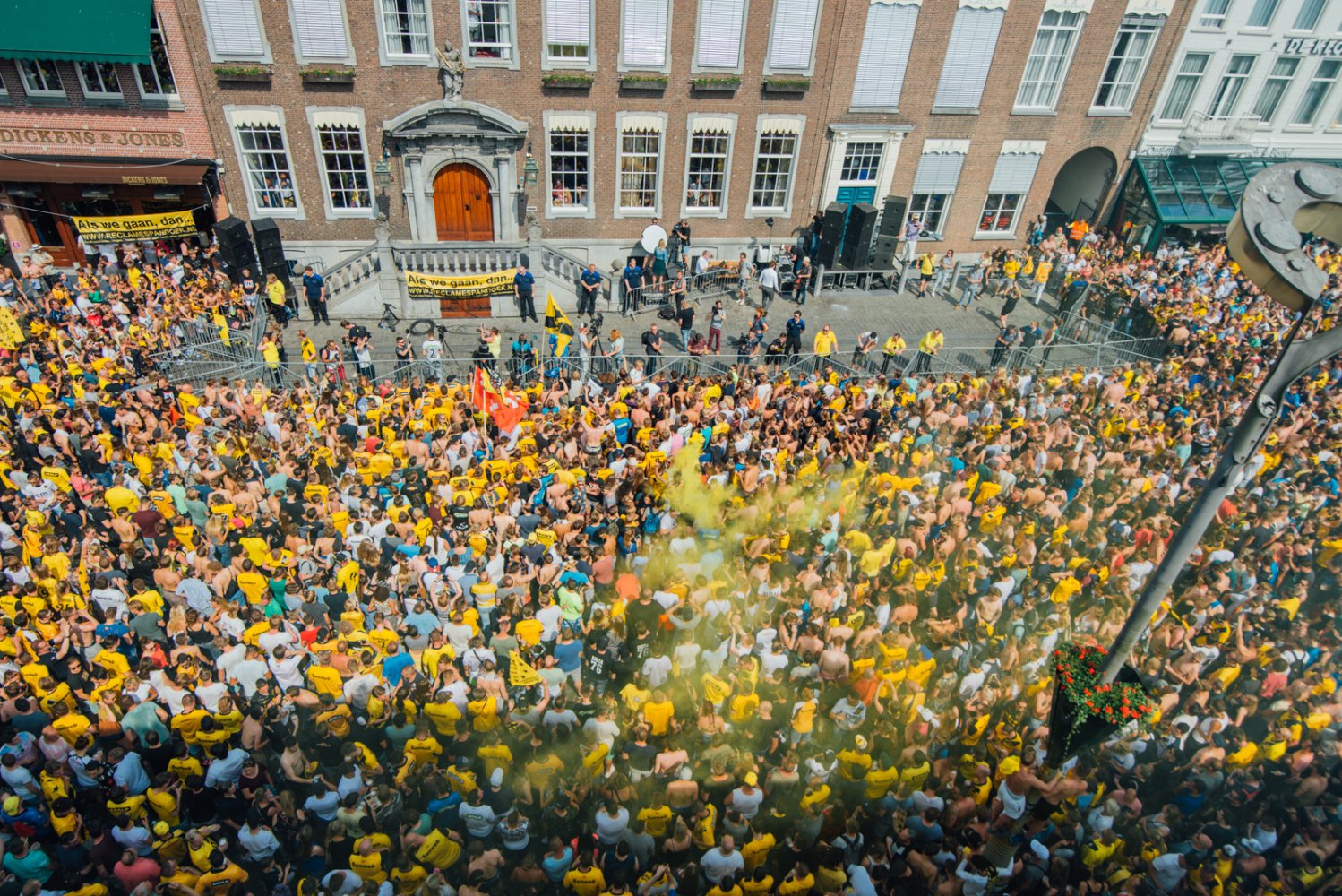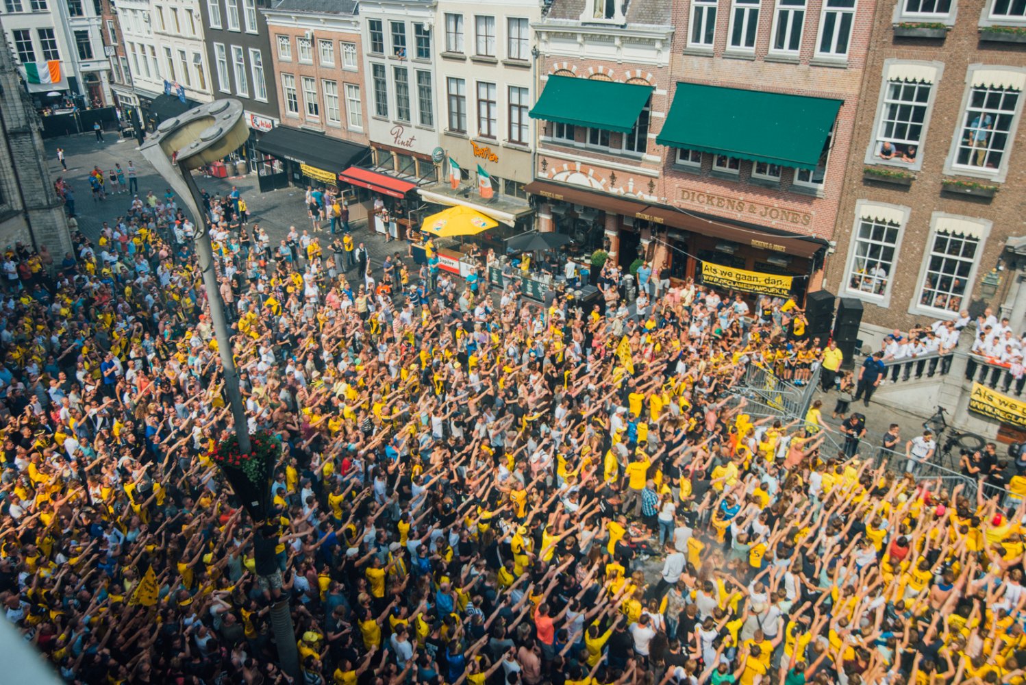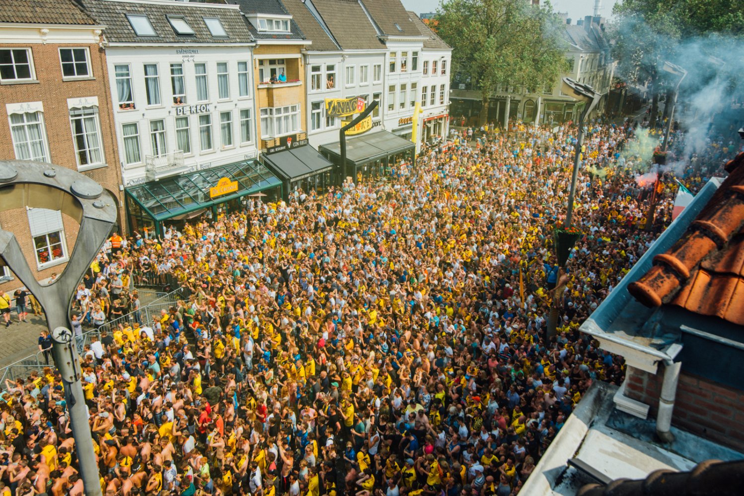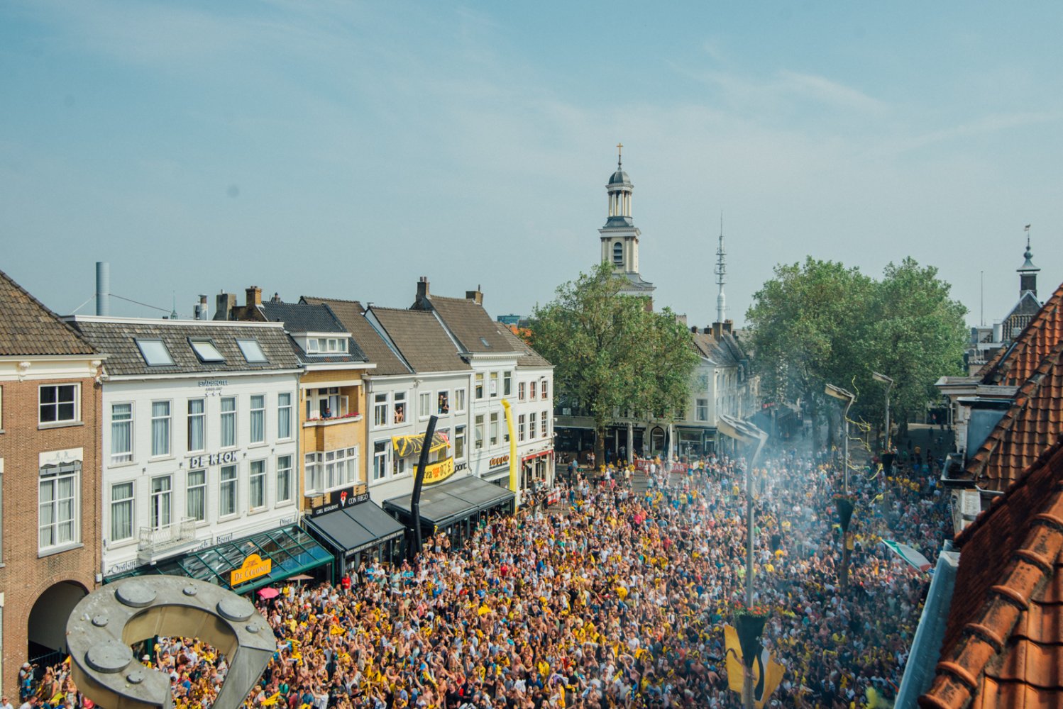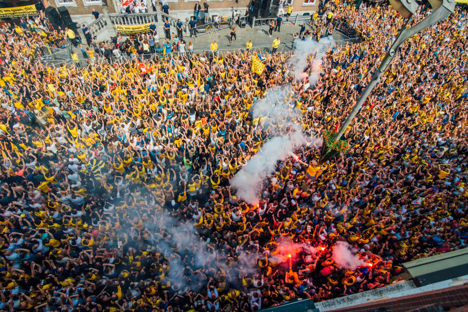 duizenden mensen op de Grote Markt voor de huldiging van NAC