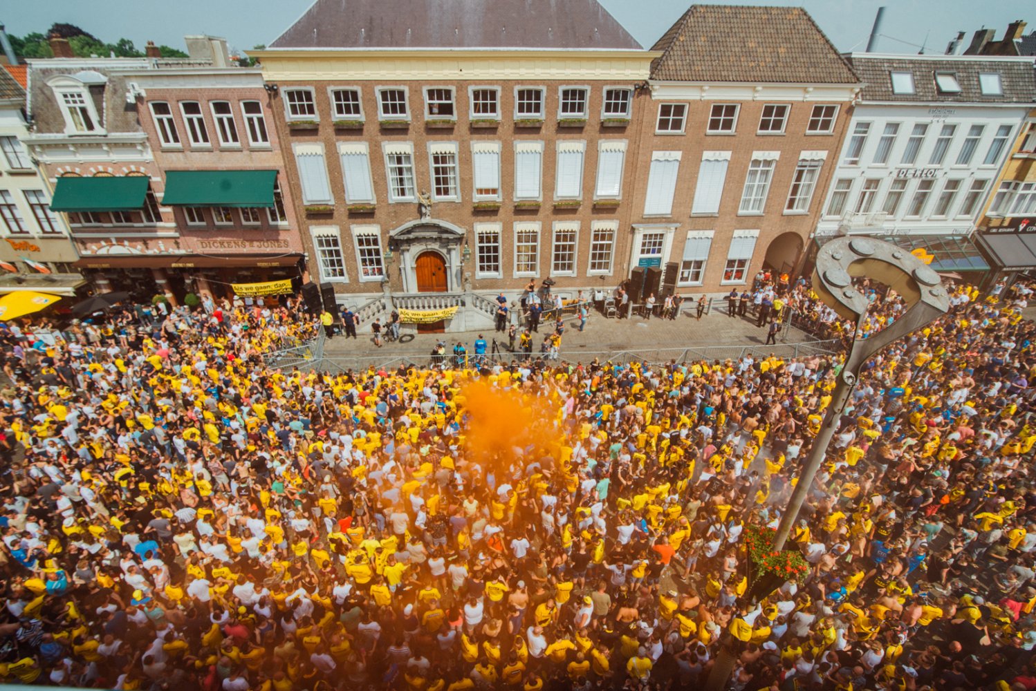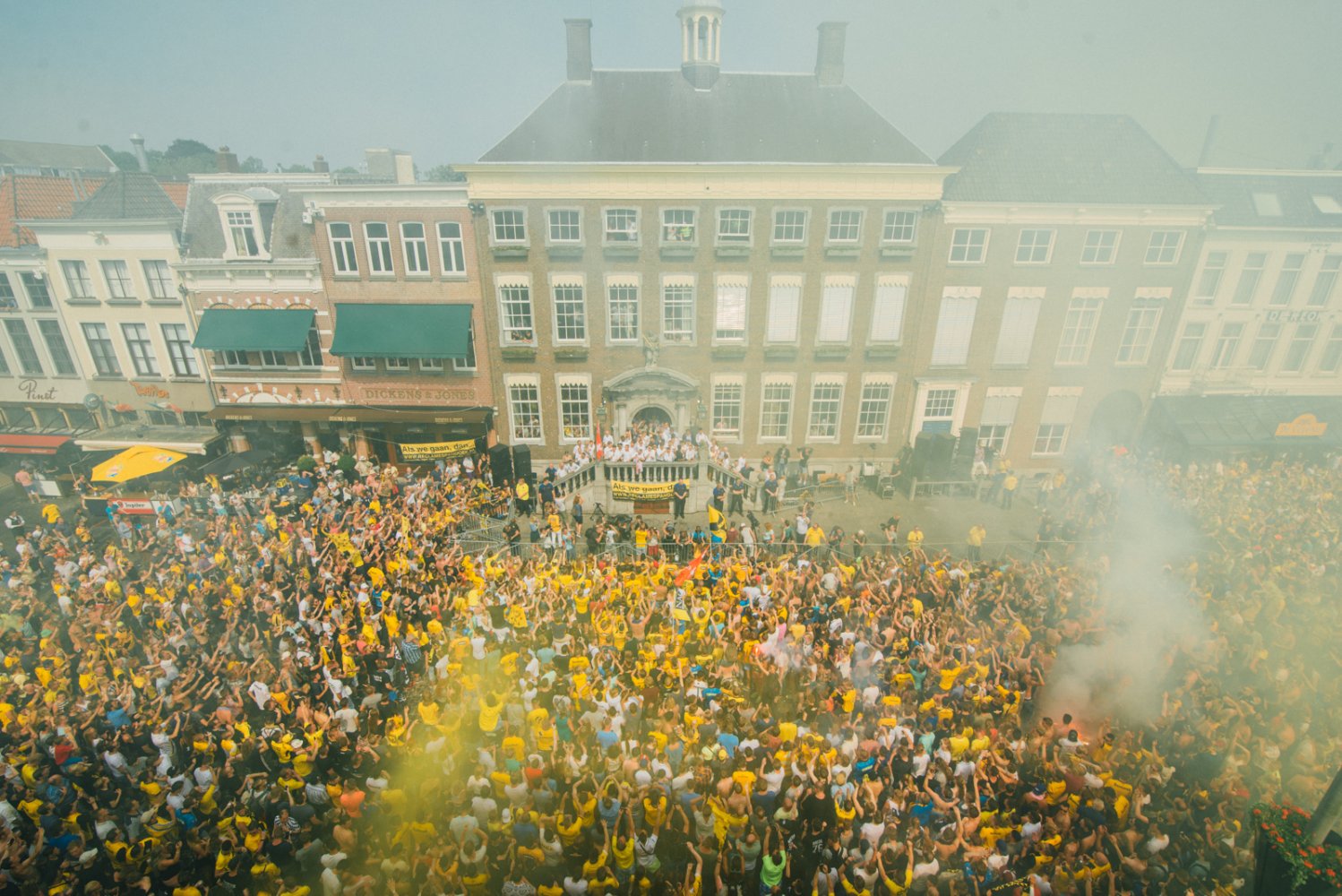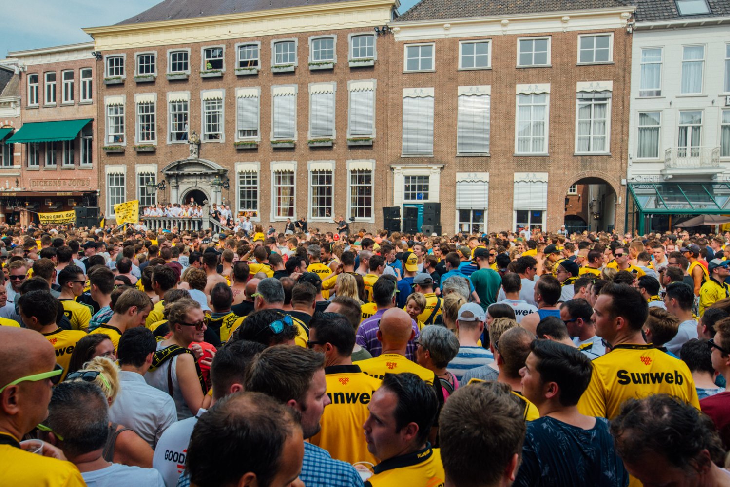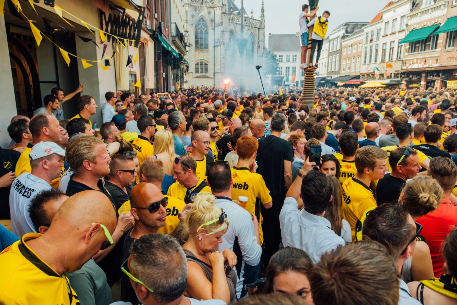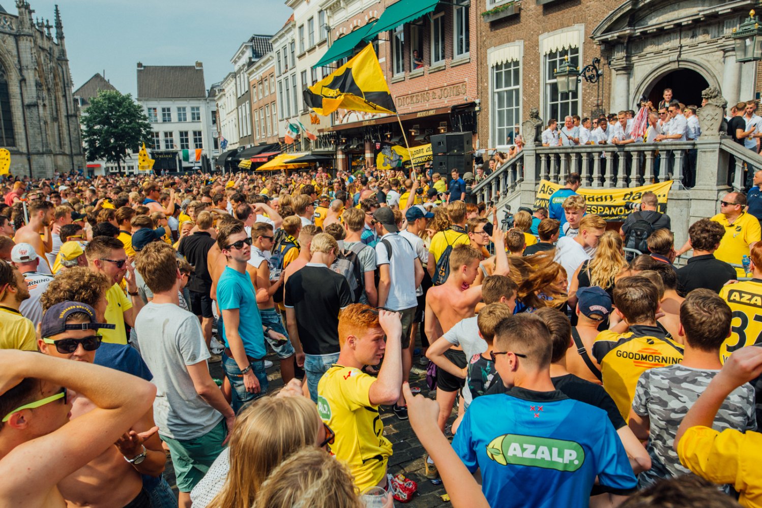 duizenden mensen op de Grote Markt voor de huldiging van NAC