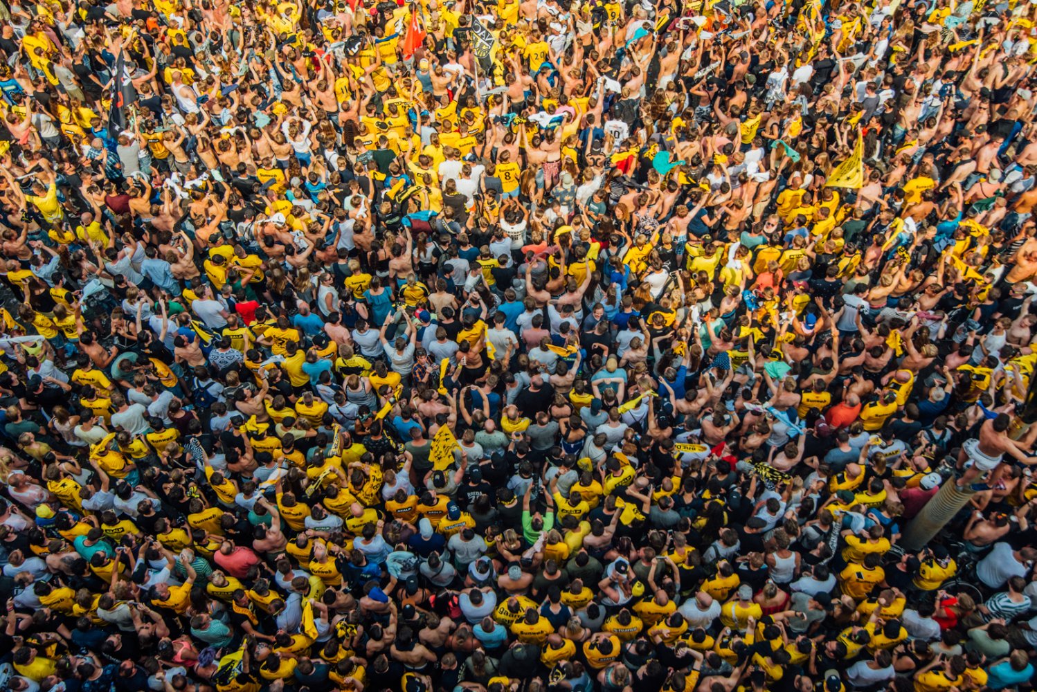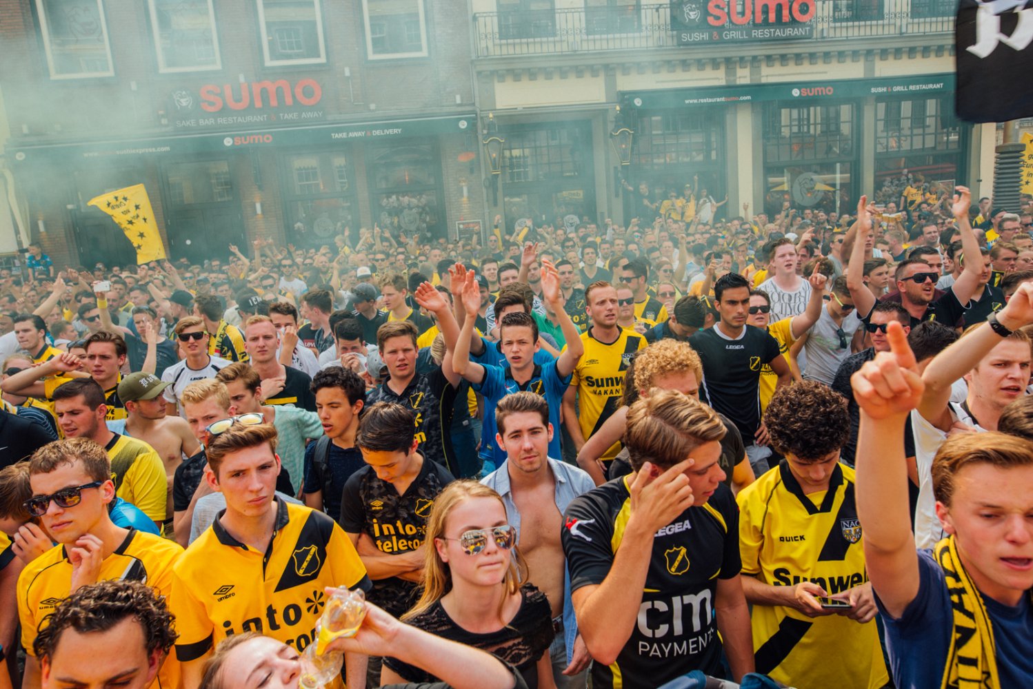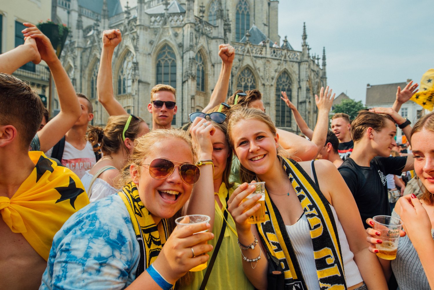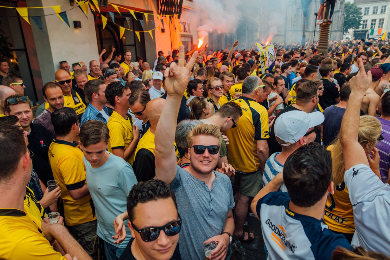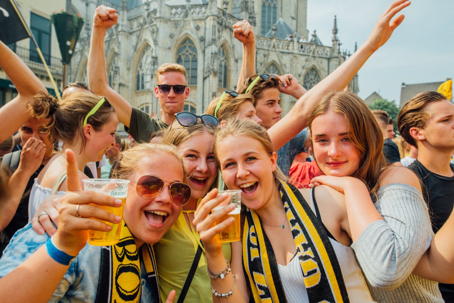 duizenden mensen op de Grote Markt voor de huldiging van NAC