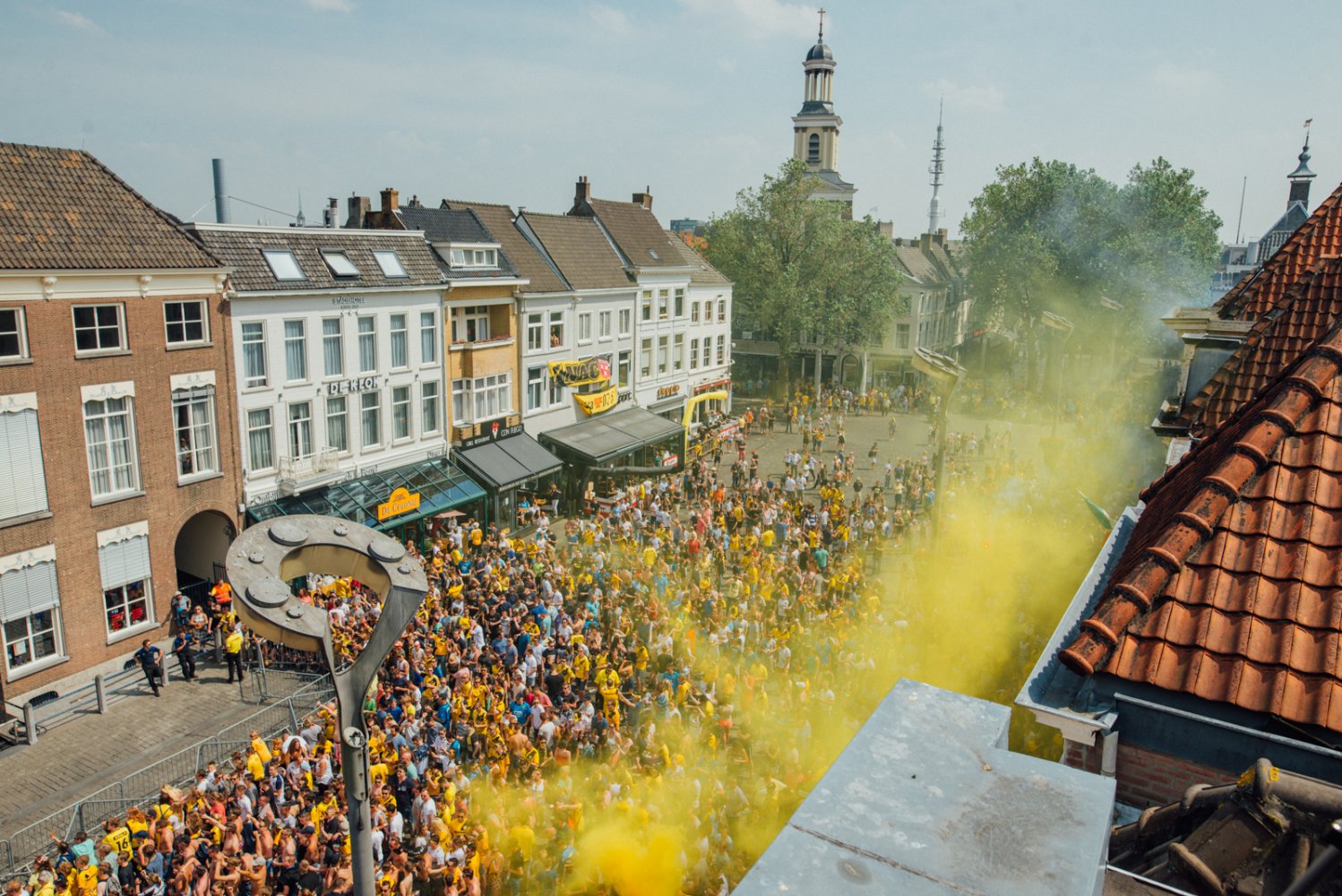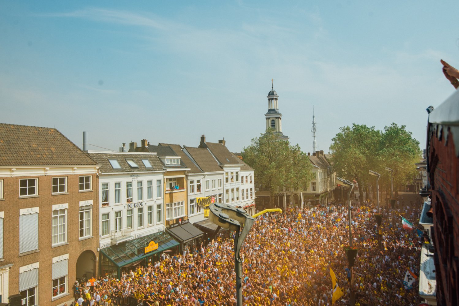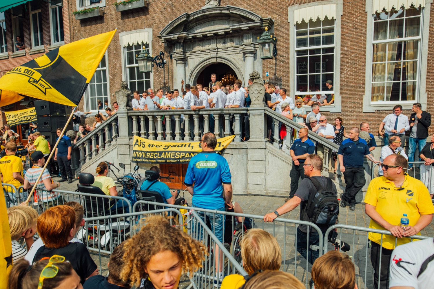 Op de Grote Markt in Breda werden maandagmiddag om 16.00 uur de spelers van NAC Breda gehuldigd. In de hitte stonden rond het middag uur al duizenden supporters klaar om hun helden te ontvangen. Om 4 uur verschenen de spelers en staf op het bordes van het gemeentehuis op de Grote Markt. Stappen & Shoppen was er bij en maakte deze foto's. Kijk snel verder voor een impressie van deze memorabele dag.