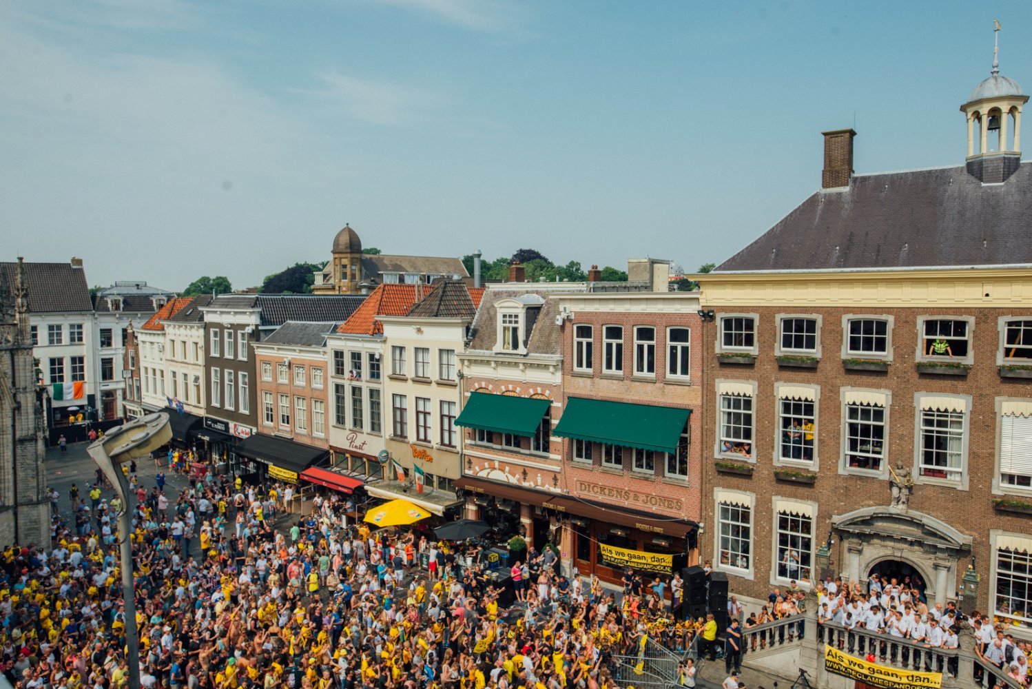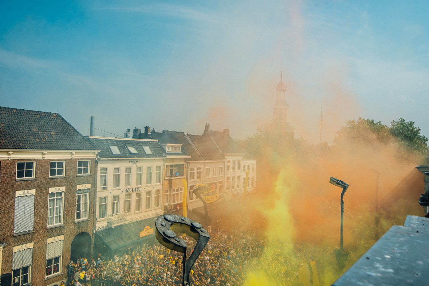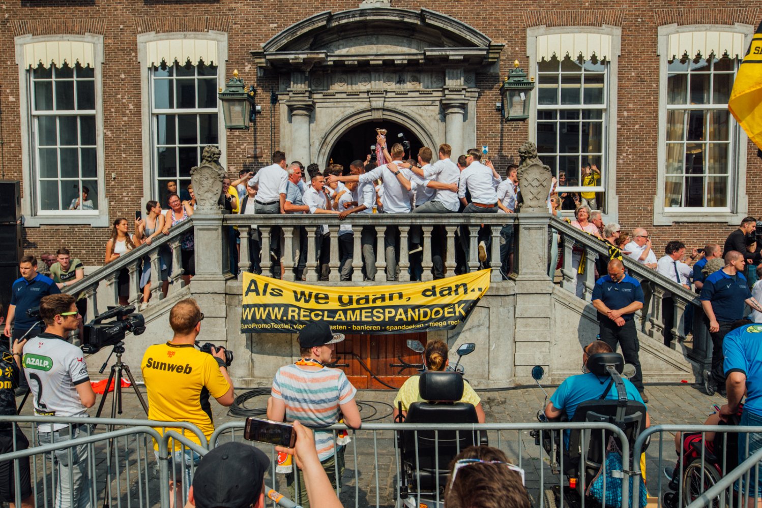 Op de Grote Markt in Breda werden maandagmiddag om 16.00 uur de spelers van NAC Breda gehuldigd. In de hitte stonden rond het middag uur al duizenden supporters klaar om hun helden te ontvangen. Om 4 uur verschenen de spelers en staf op het bordes van het gemeentehuis op de Grote Markt. Stappen & Shoppen was er bij en maakte deze foto's. Kijk snel verder voor een impressie van deze memorabele dag.