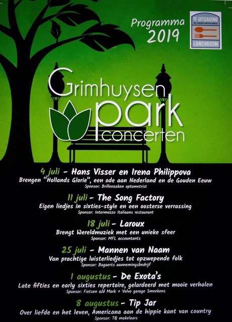 Na het succes van vorig jaar, vinden ook dit jaar de Grimhuysen Park concerten weer plaats in het park bij de Uitdaging. Ben jij van plan om te komen naar een van deze avonden? Bekijk dan snel het programma hieronder!