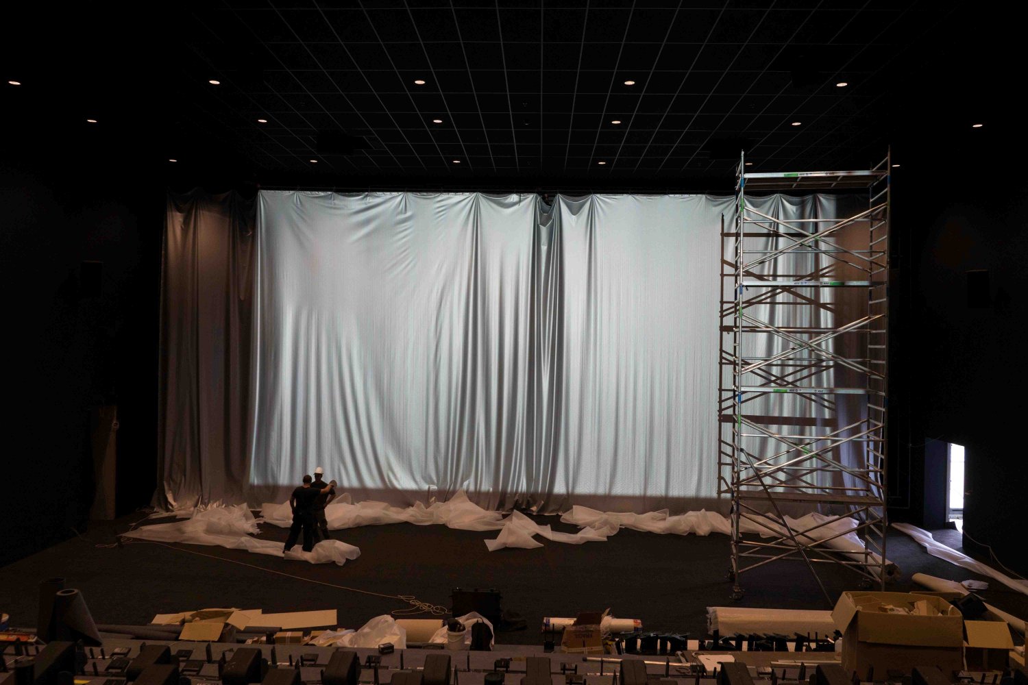 Een indrukwekkend moment in de afbouw van Kinepolis Breda: deze week is het grootste scherm geplaatst. Het gigantische filmdoek hangt in de grootste zaal van de bioscoop, de Kinepolis Laser ULTRA zaal, die hiermee steeds definitievere vorm krijgt.