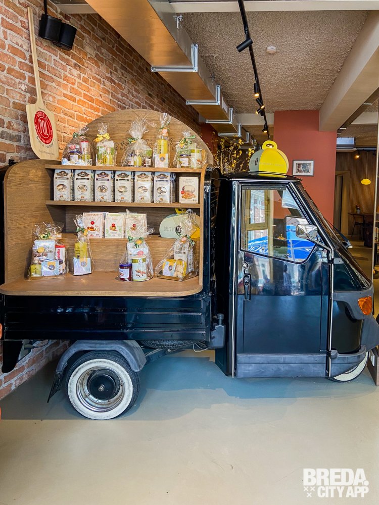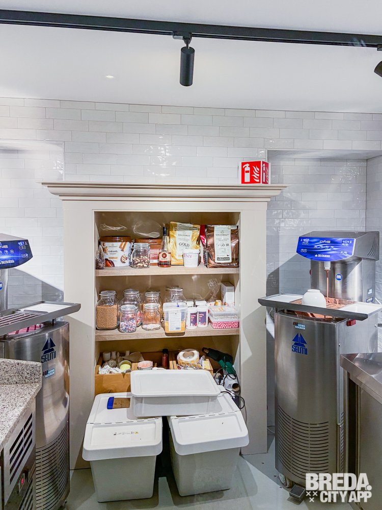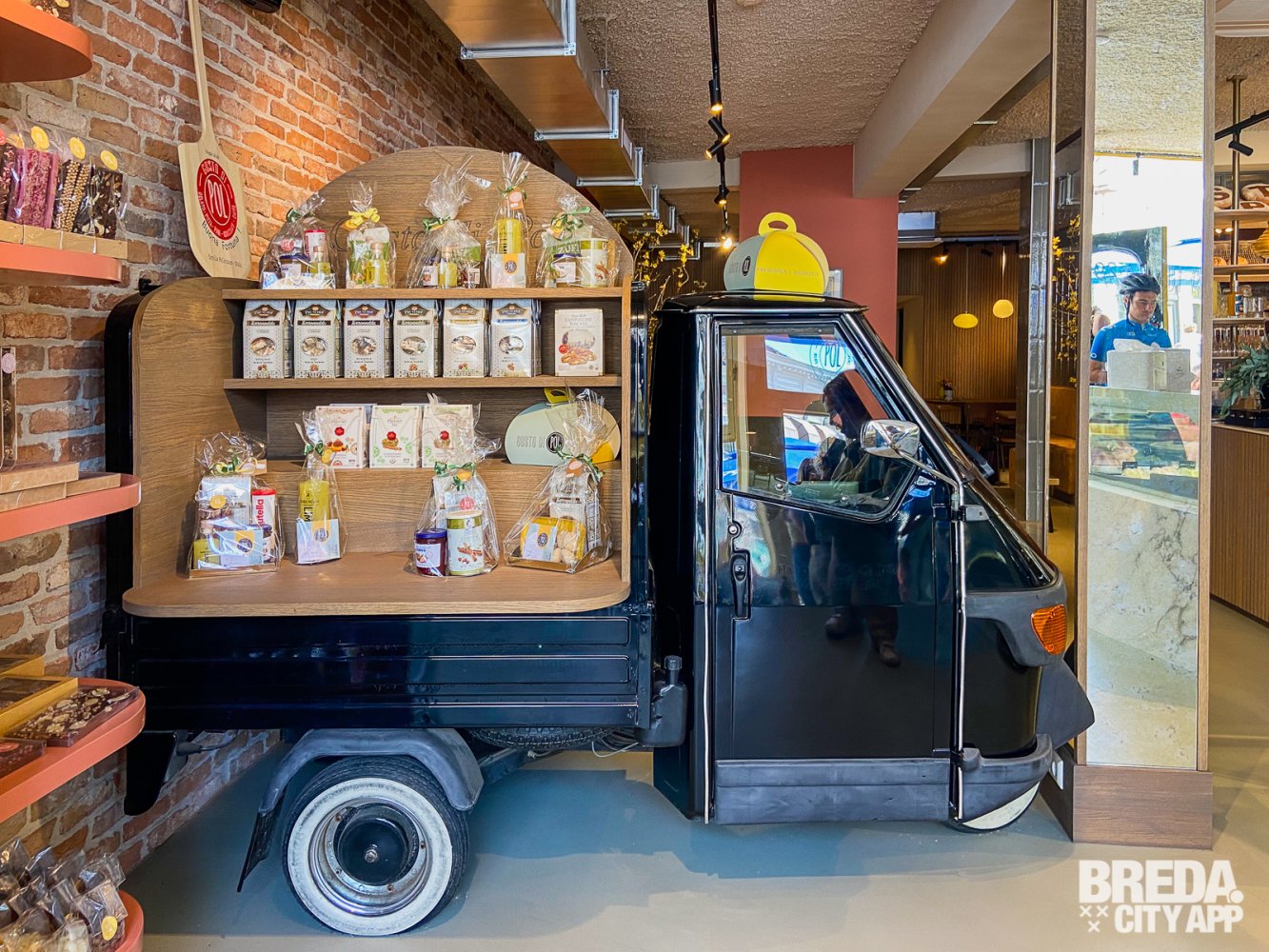 Aan het begin van de zaak zit het ijs, pattiserie en de broden. Daarnaast is een lounge gedeelte voor een kopje koffie en verderop in de zaak gezellige tafels om te lunchen en dineren. Achterin zit de keuken en het chocolade atelier waar je binnen kunt kijken.
