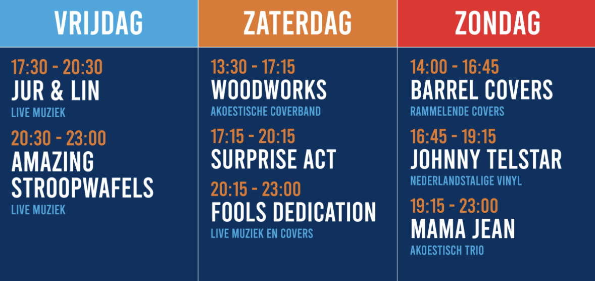 De activiteiten vinden plaats op zaterdag en zondag, zie onderstaand het volledige overzicht.