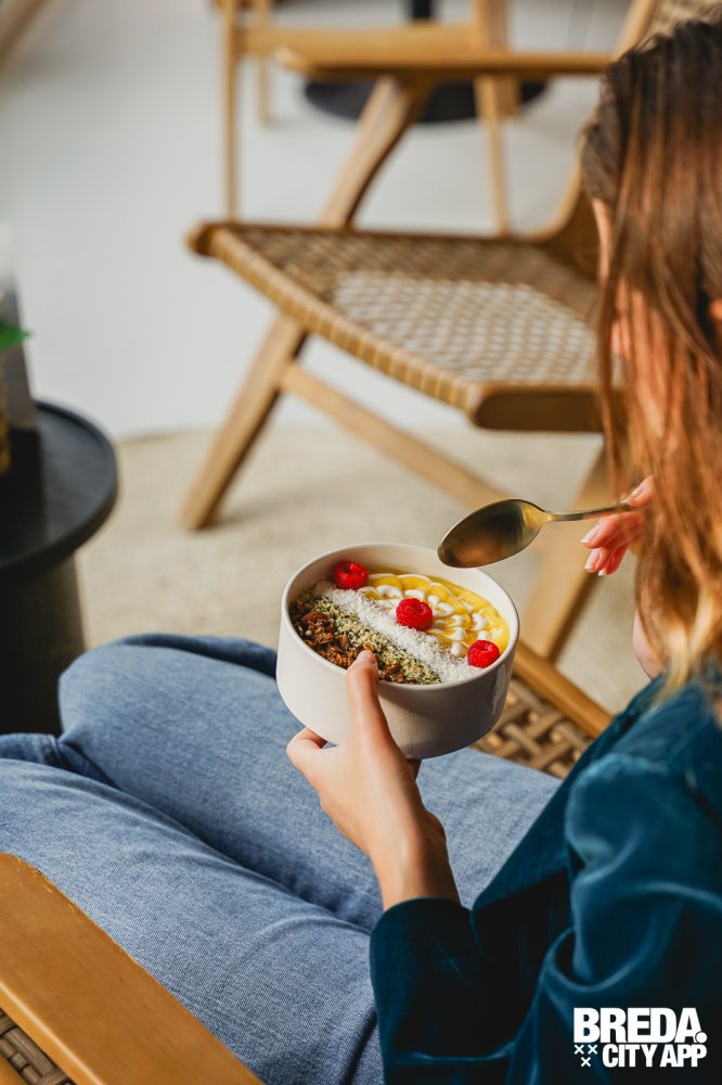 De smoothiebowl kunnen we uiteraard ook niet weerstaan en zorgt voor een echte vitamineboost. Zorg dus dat je met z'n tweeën komt, zodat je van allebei kunt proeven ;). Want deze klassieker is echt 'mango madness': gezond, kleurrijk en heerlijk fris. De mango met de banaan, kokosdrink, hennepzaad, granola, kokosvlokken, frambozen en kokosyoghurt is het een feestje op het mooie bord. Bijna zonde om op te eten! Maar veel te lekker om te laten staan.