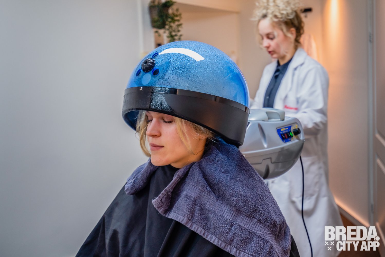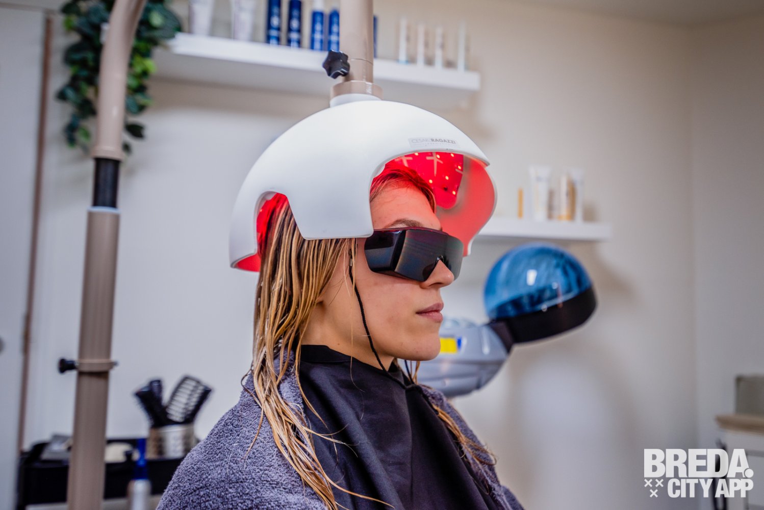Na de reiniging, met de daarbij horende shampoo en een heerlijke hoofdmassage, wordt er gedurende 20 minuten een apparaat gebruikt dat lage niveaus van laserlicht uitzendt om de bloedcirculatie te stimuleren en de haargroei te bevorderen.