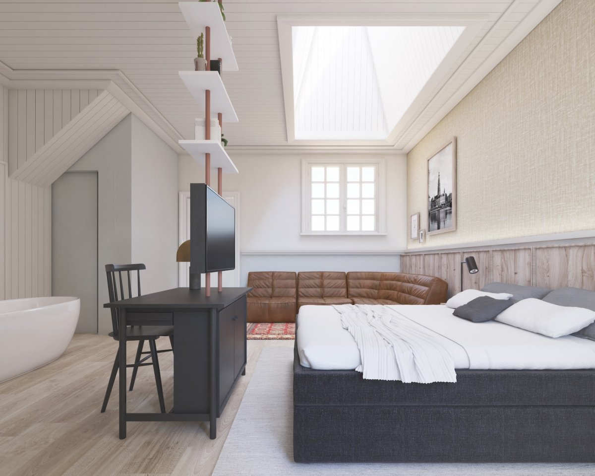 De eyecatcher van het hotel? De deluxe kamers met dakraam! Het grote raam boven de bedden zorgt ervoor dat je in slaap valt met zicht op de sterren. Heel bijzonder en uniek, maar dit is niet het enige opvallende aan de kamers. Bekend vakman Jeroen van Eggermond van Nineyards heeft verschillende op maat gemaakte houten bed boards verzorgd, alsook prachtige inbouwkasten.