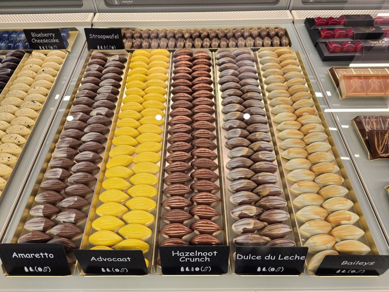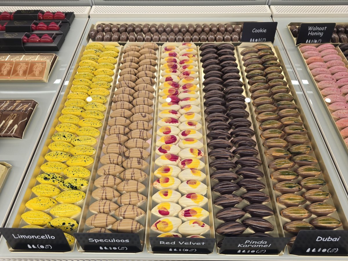 Met inmiddels 25 verschillende smaken is er voor ieder wat wils. Favorieten? Edwin noemt “Appeltaart” en “Limoncello (met Koremans limoncello)”. Kim tipt de “Dubai-bonbon” met pistache en de “Speculoos” bonbon. En het experimenteren gaat door: een recente toevoeging is een combinatie van witte chocolade met golden raspberry (witte framboos) in een lichte “kramel” verwerkt met eiwitschuim.