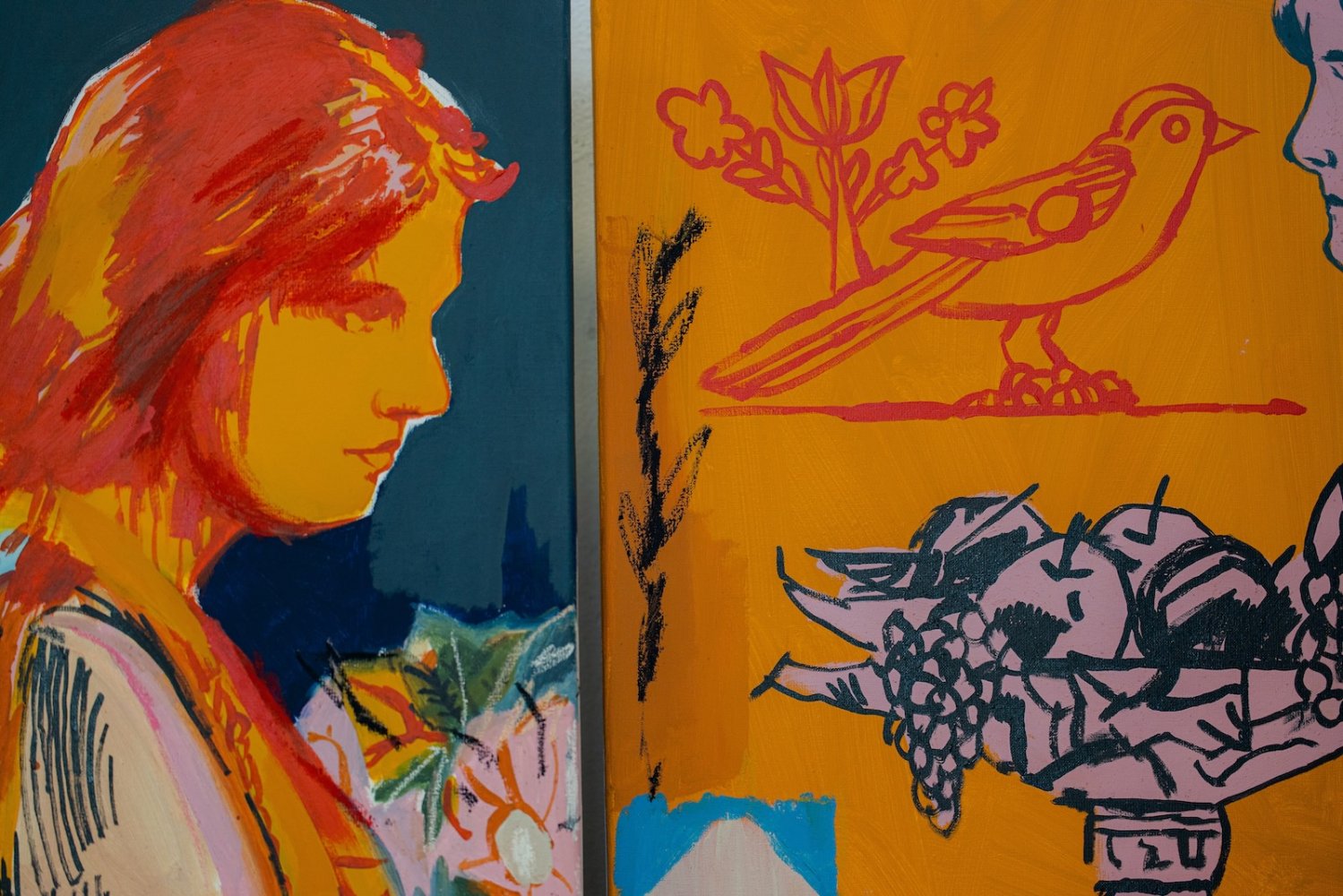 Door oude plaatjes van bijvoorbeeld Kwatta, De Drie Hoefijzers en Hero te gebruiken, legt Rutger in zijn werk een link met de Bredase beeldcultuur. “Van mijn oma kreeg ik verzamelboeken met afbeeldingen van vogels die vroeger bij snoeprolletjes van de Faam zaten. Daar geef ik mijn eigen draai aan”, vertelt Rutger. Zo komt ook het logo van het eerste Chinese restaurant in Breda terug.