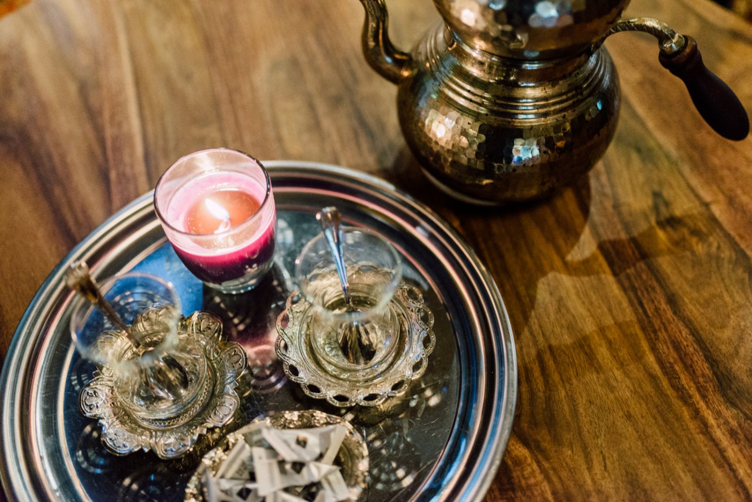 Op het eindresultaat van de verbouwing. Het is fantastisch wat er weg is gezet. Daar zijn we heel blij mee. Zelf waren we erg betrokken bij de verbouwing, elke dag waren we erbij. De inrichting is gedaan door Robin van Scorpio Design. Ibrahim; toen we de zaak overnamen was er sprake van een Oosterse inrichting. Maar op een gegeven moment moet je mee met de tijd en de trends. Het moet tijdloos zijn en tegelijkertijd bij de tijd passen. We wilden niet een Arabische stijl, maar echt Turks. Nu is het uiteindelijk een echte combi van traditioneel en modern. Een strakke en tevens sfeervolle en warme uitstraling.  We zijn er trots op!
