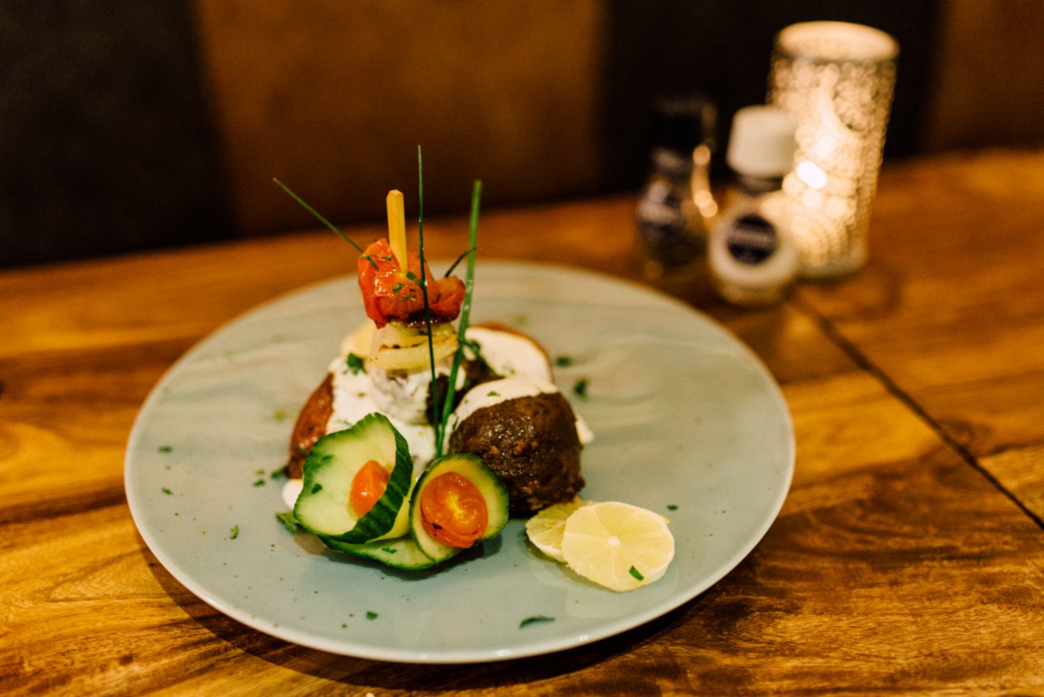 Onze Meze! Daar krijgen we veel complimenten over! Daarnaast hebben we verschillende soorten cheesecake in huis, waar veel mensen voor terug komen en blij van worden! Het lievelingsgerecht uit eigen keuken is volgends Ibrahim; Beyti (wrap met gehakt). En natuurlijk ons eigen broodje met falafel 'broodje Sultan' (zie foto onder) is een aanrader volgens de broers.