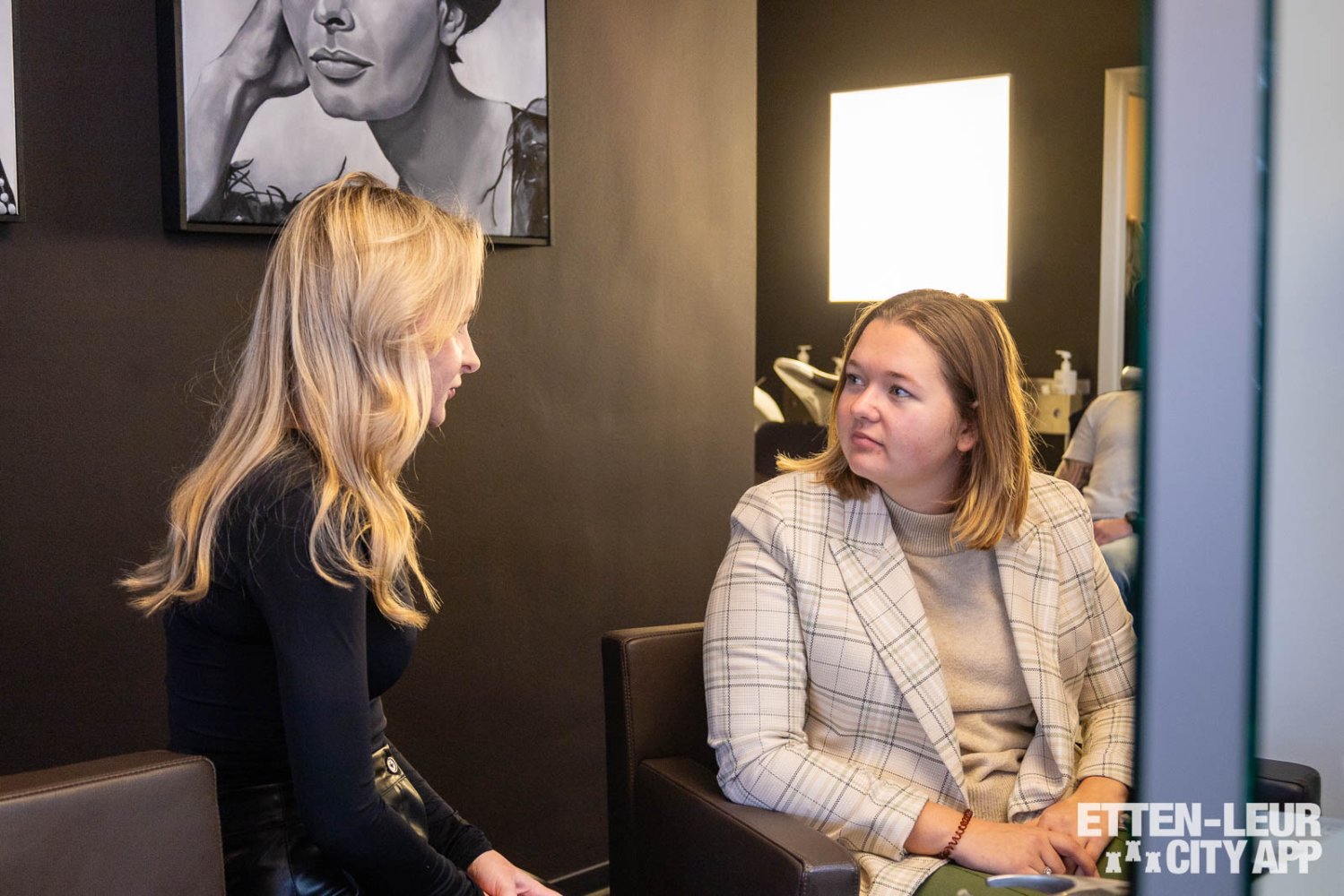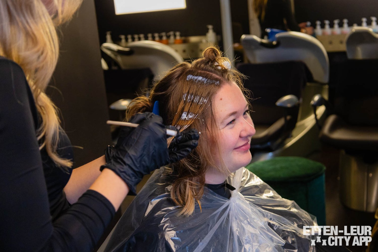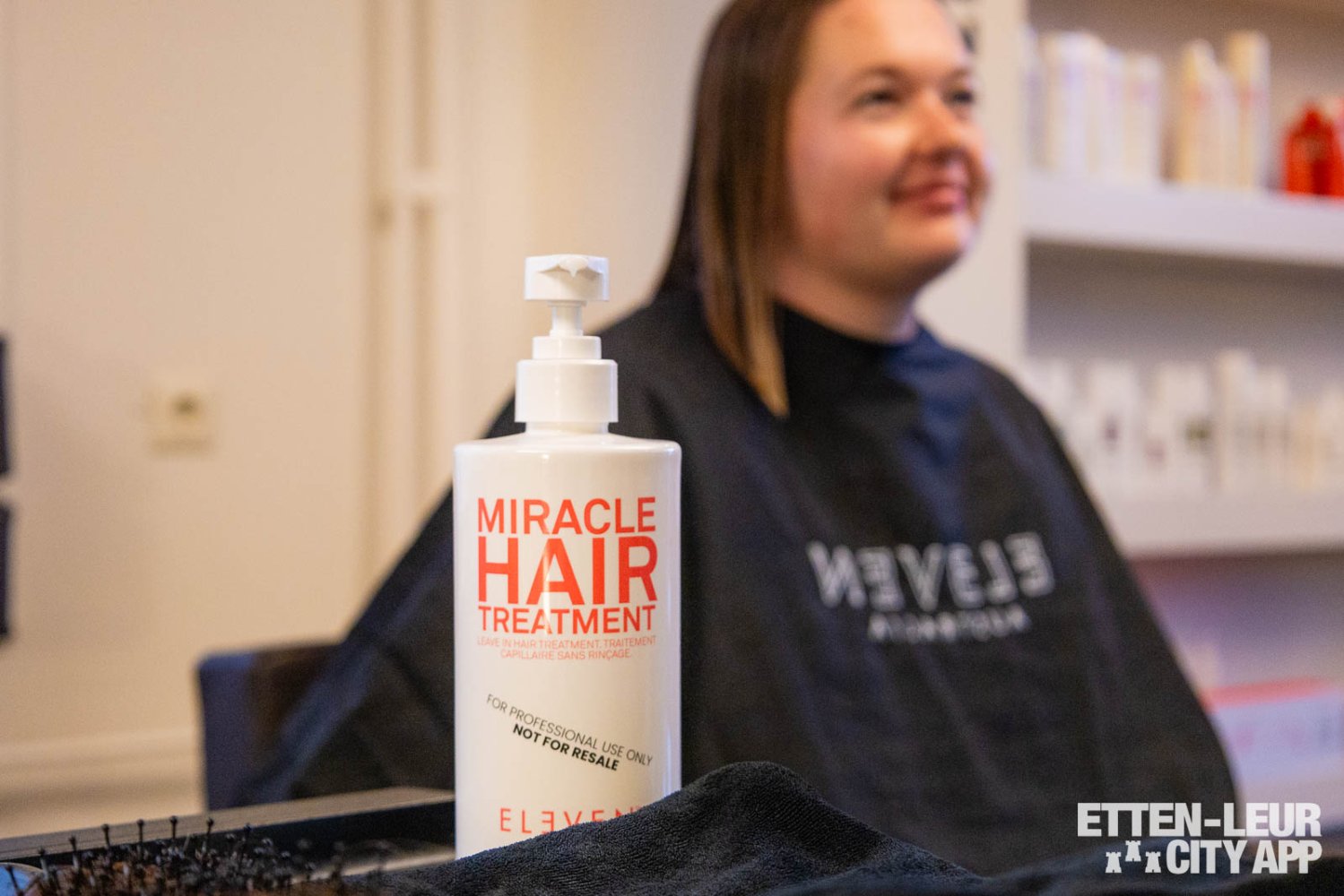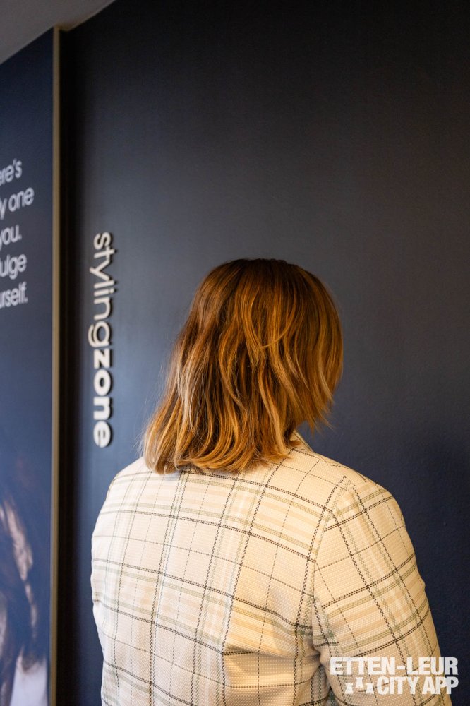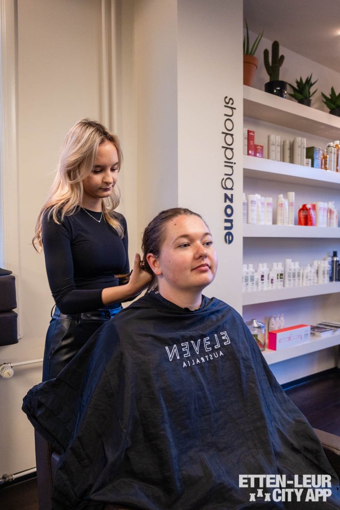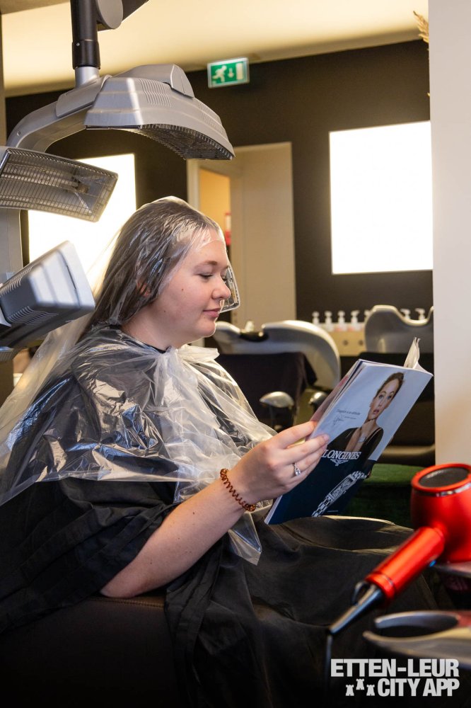 Vervolgens wordt overgegaan naar de relax- en stylingzone, waar het haar wordt behandeld met een treatment voor extra bescherming tijdens het föhnen. Dit professionele product biedt bescherming tegen hoge temperaturen, waardoor het haar optimaal wordt verzorgd.