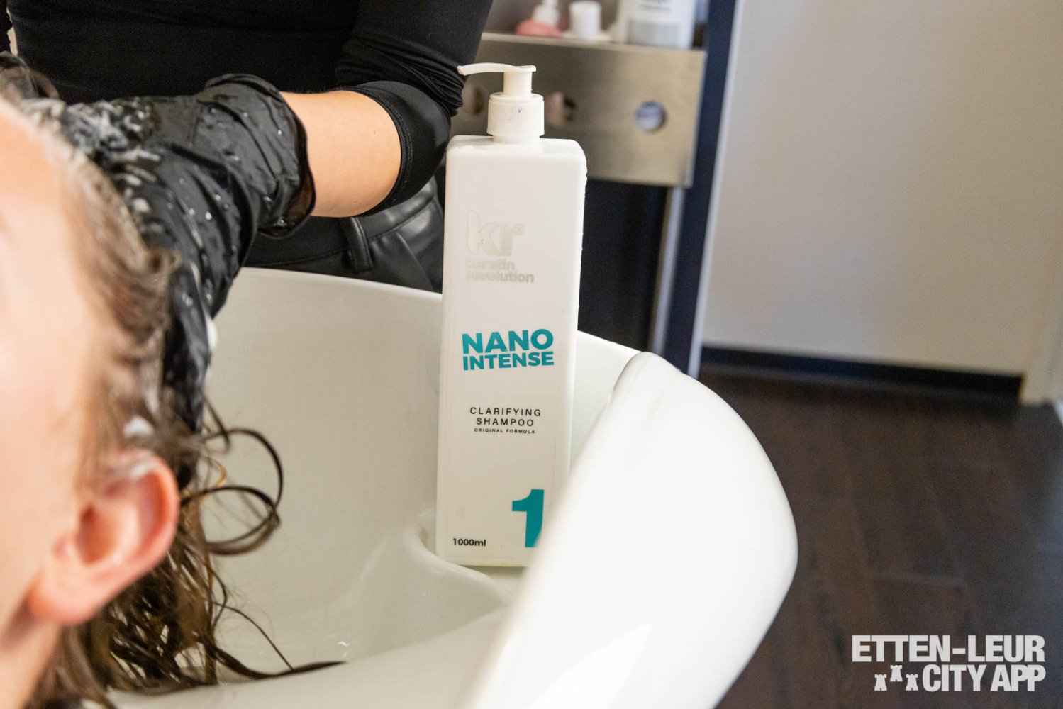 De behandeling begint bij de wastafel, waar op een comfortabele massagestoel plaats wordt genomen. Tijdens het wassen en masseren van het haar is het heerlijk ontspannend. Na twee keer keratine-shampoo voelt het haar wat stug, een teken dat de behandeling zijn werk doet. Na het uitspoelen keren we terug naar de kappersstoel, waar het haar wordt geföhnd. De stylist laat het haar nog een beetje vochtig voor het tweede deel van de keratinebehandeling. De keratine wordt zorgvuldig aangebracht, met aandacht voor de juiste hoeveelheid om vettigheid te voorkomen. Onder een warmtekap wordt een half uur gewacht, we ontvangen een kopje thee en een tijdschrift.