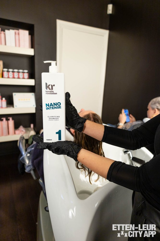 Na het zorgvuldig stylen worden de haren grondig gewassen. Dit proces wordt tweemaal herhaald om ervoor te zorgen dat de keratine volledig uit het haar is verwijderd. Dit wordt als aangenaam ervaren, mede dankzij de comfortabele massagestoel die tijdens het wassen zijn werk doet.